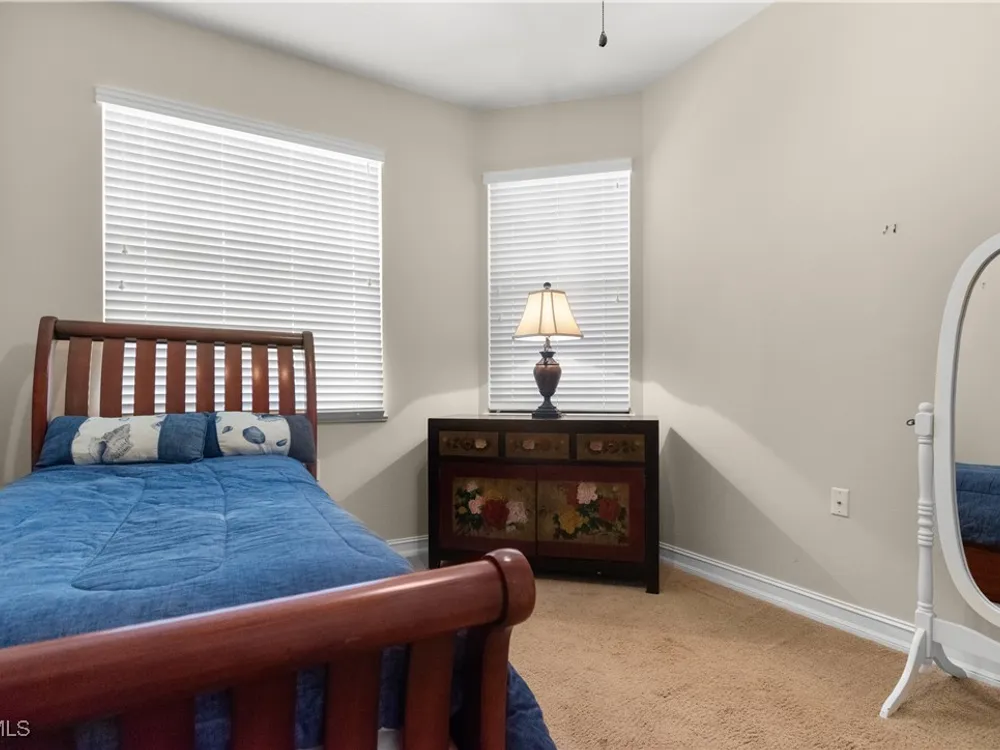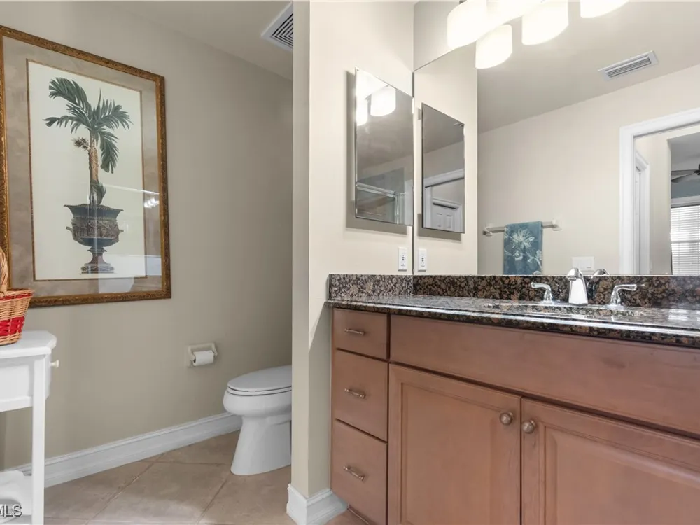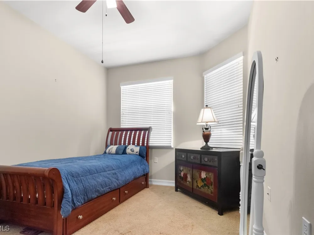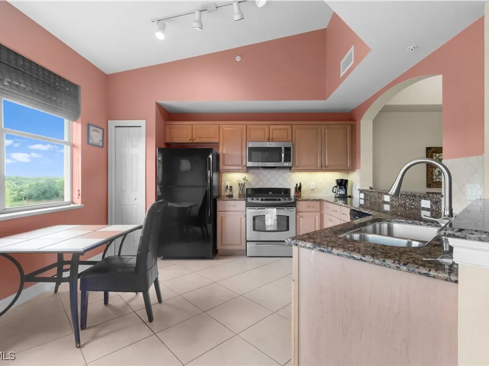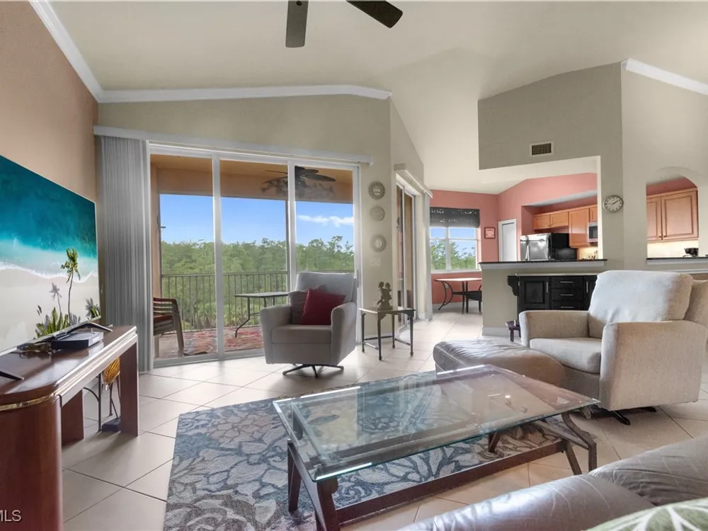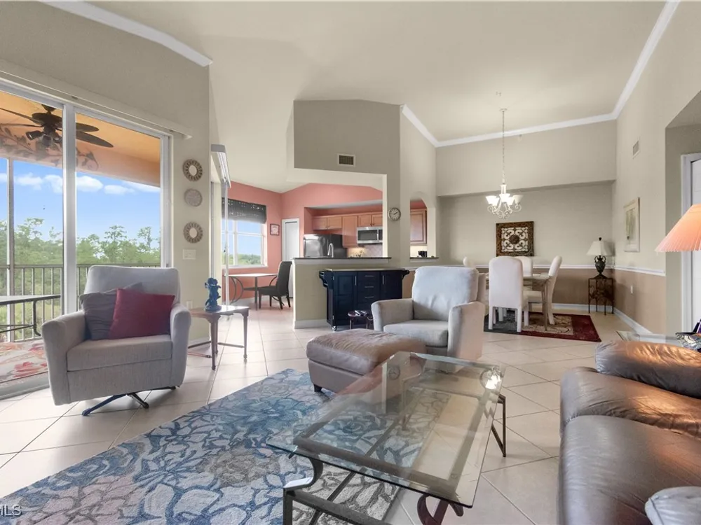 Enjoy maintenance-free living in this top-floor corner condo located in the sought-after 55+ community of Pelican Preserve. Soaring vaulted ceilings and abundant natural light enhance the spacious, open layout, while tranquil views of the water and preserve create the perfect backdrop for morning coffee from your lanai or breakfast nook. The kitchen offers granite countertops, wood cabinetry, under-cabinet lighting, and a pantry for added storage. This unit is being sold turnkey, making it easy to settle in and start enjoying the Florida lifestyle right away. Additional highlights include a 2021 AC, covered parking, a storage closet just down the hall, and a golf cart included with a full-price offer. Pelican Preserve offers an unmatched array of amenities and an active, resort-style lifestyle that truly sets it apart. Residents can enjoy three pools, both indoor and outdoor, along with 12 pickleball courts, 8 Har-Tru tennis courts, bocce ball, a softball field, a concert pavilion, fishing pier, dog parks, and scenic walking and biking trails that wind throughout the community. Stay active at the fitness center or unwind in the yoga studios. When it’s time to relax, catch a movie in the theater, shoot pool in the billiards room, or dive into a new hobby in the woodworking shop, card room, or arts and crafts studio. Grab your morning coffee at the on-site coffee center or enjoy a delicious meal at one of the two on-site restaurants. A golf membership is optional, offering even more ways to stay active and engaged. With year-round events like concerts, farmers markets, and car shows, there’s always something to enjoy. Conveniently located near RSW Airport, shopping, and healthcare, this is your opportunity to live where every day feels like a getaway.