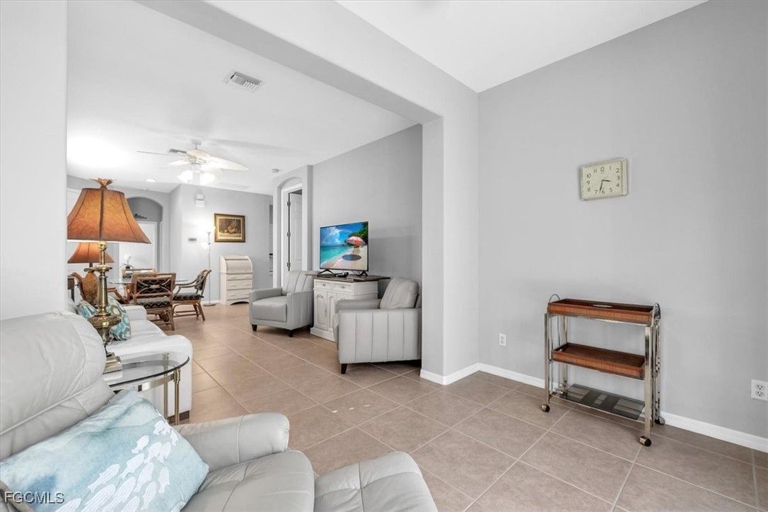 Welcome to this beautiful ASTI model villa in the award-winning 55+ community of Pelican Preserve, where resort-style living meets exceptional comfort. This attached villa lives like a single-family home, offering 2 bedrooms, 2 baths, a versatile home office conveniently located near the laundry room, and a sought-after living room extension that adds valuable space and natural light. This home is thoughtfully maintained, and turnkey furnished, making move-in day effortless. Step inside to discover an open, inviting floor plan enhanced by plantation shutters, upscale finishes, and a seamless flow perfect for both relaxing and entertaining. The kitchen offers a natural gas stove. The charm continues outdoors, where the screened-in lanai opens to a beautifully landscaped backyard surrounded by nature. Whether you’re enjoying quiet mornings or hosting friends, this serene setting provides the perfect backdrop. There is ample room to add a pool, allowing you to customize your own private oasis. The quiet neighborhood setting enhances the peaceful, easy-living lifestyle this villa provides. With a one-level layout and an attached garage, this home offers comfort and convenience. Although classified as a condo, the villa lives like a true single-family home, with exterior painting and roof reserves handled for you—ideal for effortless, maintenance-free living. Beyond the home, Pelican Preserve’s state-of-the-art Town Center delivers an unmatched active lifestyle. Amenities include three resort-style pools, a modern fitness center, tennis, pickleball, bocce, softball, a private movie theater, billiards, card rooms, and extensive hobby spaces featuring a full woodworking shop, sewing, ceramics, painting rooms, and more. Enjoy dining at Destination’s Restaurant or Flip-Flops Poolside Grill, attend live performances at the outdoor amphitheater, or connect with neighbors at the friendly coffee center. Optional private golf memberships are also available for the 27-hole championship course. Pelican Preserve is nationally celebrated for its vibrant lifestyle, outstanding amenities, and engaging social atmosphere. Don’t miss this incredible opportunity to own a gorgeous, clean, turnkey villa in one of Florida’s most desirable 55+ communities. Experience the best of Pelican Preserve—you will love it here.