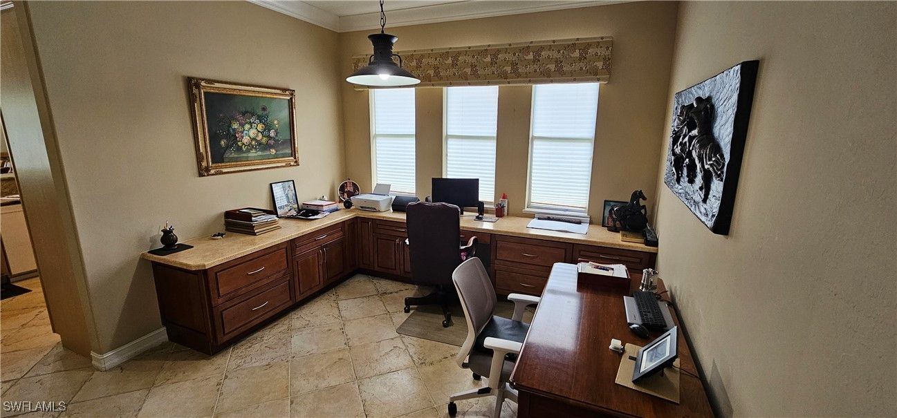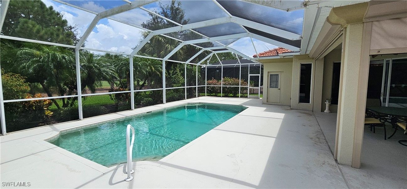 Lowest priced home in the community! Enjoy living the southwest Florida lifestyle in this well-maintained pool home featuring three bedrooms plus a den or office and three and a half baths with approximately 2,200 sq ft under air conditioning. This pool home is located in the highly desirable gated community of Bellagio at Pelican Preserve in south Fort Myers. The home boasts lush tropical landscaping, a Spanish tile roof, an attached two car garage, with large diagonal tile flooring and crown molding throughout all the main living areas. Relax or entertain guests around your gas heated swimming pool with breathtaking views of the 9th-hole all situated around a spacious screened patio and a partially covered lanai ideal to enjoy the outdoors rain or shine. The open kitchen features a natural gas stove, granite counters, wood cabinetry, recessed lighting, and a breakfast bar overlooking the pool and patio area so you don’t miss any of the action. The master bedroom suite features a private entrance to the pool area with wood floors and a private bathroom featuring dual sinks, a deep soaking tub and a separate tiled walk-in shower. The in-home laundry room features plenty of cabinets for storage and a sink for convenience. Pelican Preserve is an active 55 and older community with resort-style amenities and plenty of activities: from pickleball and tennis to lawn bowling, bocce ball, a spa, fitness center, multiple pools, restaurants, picturesque walking trails, dog parks, softball fields, card and craft rooms, woodworking, music, dancing, and more. Ideally located in south Fort Myers close to plenty of shopping, dining, entertainment, the airport and just a short drive to some of Florida's finest beaches. Pets welcome no approval required.