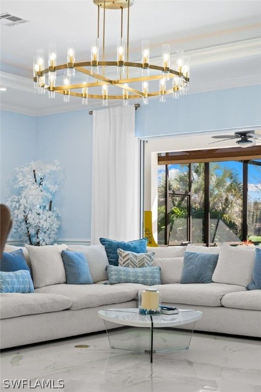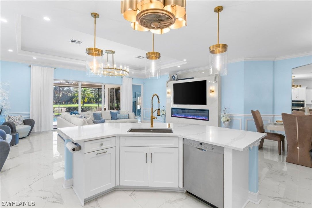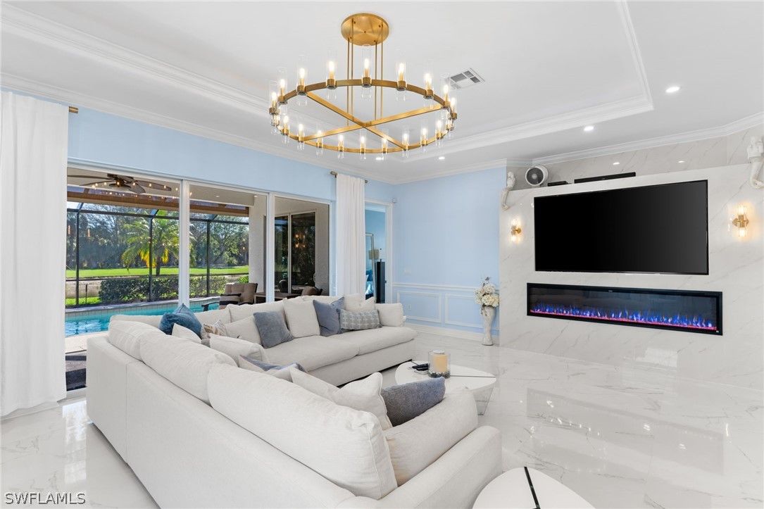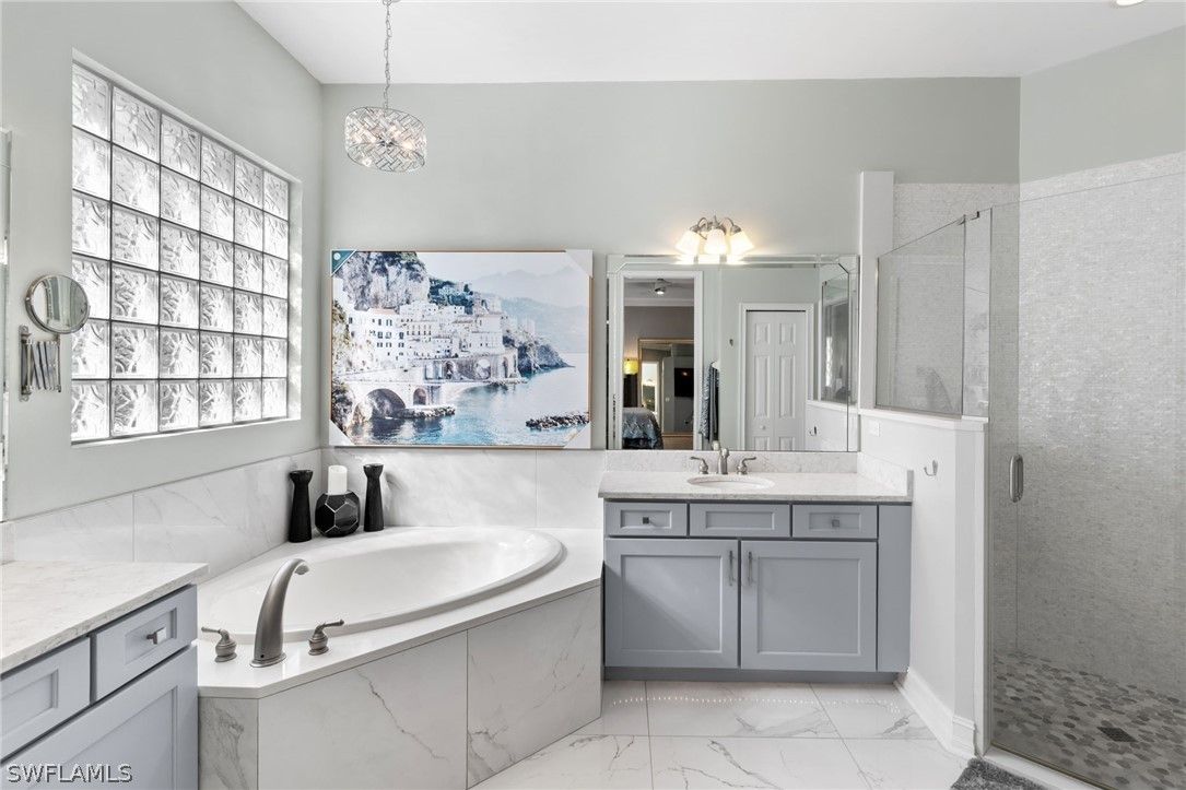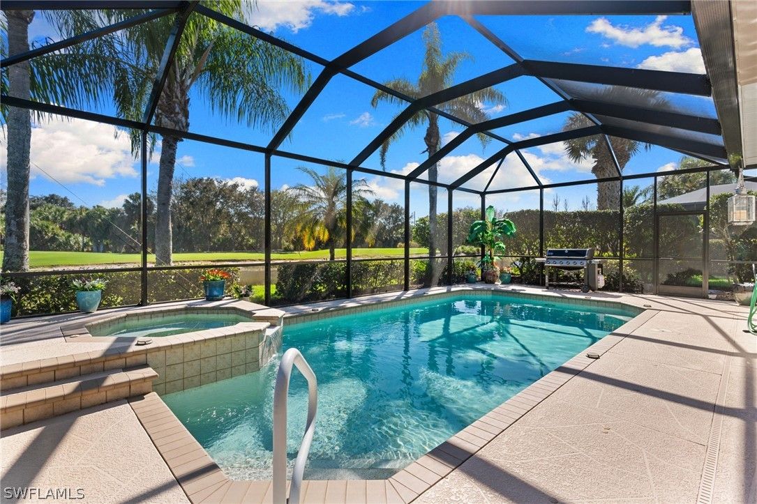 One-of-a-kind offering! This full-golf membership, fully renovated, turnkey home in Heritage Bay Golf & Country Club is ready for you to live your best life in Southwest Florida. The views are everything you hoped for - stunning morning sunrises, stunning fairways, water views, and peaceful preserve - all visible from your private pool & spa. Immaculately maintained and renovated this Foxhall model is like no other. Bathed in gorgeous porcelain tile and custom finishes. Every inch of this home has been reworked and updated to bring relaxing luxury to your tropical oasis. This open floor plan flows - a seamlessly integrated kitchen flows into the indoor/outdoor living spaces. The new kitchen is exactly what you would choose - Shaker white cabinets with gorgeous quartz, all complimented by decadent gold fixtures and finishes. The four full bedrooms remain private and serene — including one with elegant French doors currently serving as a versatile office. The guest suits are beautifully and uniquely decorated sharing a custom bathroom. The primary suit is the ultimate private relaxation space- gorgeous shower, his-and-hers vanities and closets and walks out to your panoramic lanai. Every detail has been thought through and there is nothing for you to do but move in! Recently updated sparkling pool, impact sliders and windows for ultimate peace of mind, all newer appliances—including a brand-new refrigerator and dishwasher—plus fresh A/C and water heater. The 2019 special assessment for amenities renovations is paid in full, so you can move right in and start enjoying the lifestyle. A FULL golf membership is included with purchase, granting immediate access to Heritage Bay's championship 27-hole Lewis-Azinger designed golf course, aqua driving range, and endless resort-style amenities. Dine casually at The Grille Room with its incredible southern views of the 27th green, unwind at the grand clubhouse's elegant event spaces, or soak up the sun at the resort-style pool and heated spa featuring 'The Cabana' poolside bar & grille. Tennis enthusiasts will love the 7 Har-Tru clay courts, pickleball, bocce, and state-of-the-art fitness center, while the vibrant activities calendar ensures a lively social scene year-round. Whether you're passionate about golf, seeking tranquil views, or craving luxurious, active living in a gated paradise, this immaculate Foxhall home offers the perfect blend of elegance and enjoyment—don't miss your chance to call it yours! Schedule a private tour today!