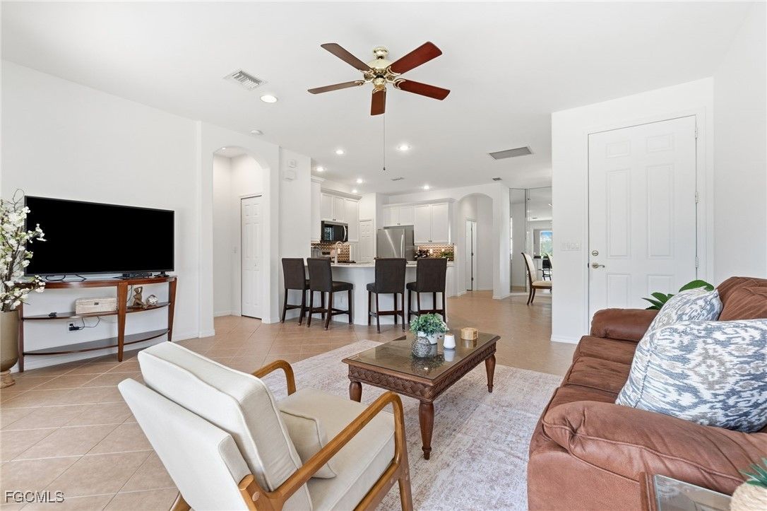 OPPORTUNITY IS BACK AT A SUPER AGGRESSIVE PRICE! This home returned to the market due to a buyer’s home sale contingency not being met—not related to the property itself. Rare chance to own a POOL home in Pelican Preserve in the LOW $300s before the sellers pull it from the market. Take a look at this LOVELY attached villa pool home, with a great open floor plan, several wonderful upgrades and offered at a price that cannot be beat! This two-bedroom, two-bath, two-car garage pool home is light and bright! The kitchen boasts of white cabinetry, light quartz countertops, stylish backsplash, and brand new stainless steel appliances (to inciude the GAS stove that so many Buyers love). Other upgrades throughout the home include: updated light fixtures, wood blinds throughout, light LVP flooring in primary bedroom, upgraded shower glass in both bathrooms ("rainglass" in guest bathroom) and more. NEW ROOF, NEW A/C with a 10-year warranty, and gas water heater. There is a Hometech transferable warranty on A/C and ALL appliances including Washer/Dryer! In this neighborhood, the HOA/Condo Association takes care of more maintenance than in other neighborhoods, allowing residents more care-free living. Walk out the TRIPLE SLIDERS to your spacious lanai with private, salt-water, natural gas heated pool, natural gas grill, lounging area, under-truss seating area and private, tranquil back yard. It is so nice to be able to take a quick dip or do your water exercises on a whim! Pelican Preserve is a state of the art active 55 and better community with a Town Center offering endless amenities, including 3 Pools, Fitness Center, Tennis, Pickleball, Bocce, Softball, “Destination’s Restaurant”, “Flip-Flops Poolside Grill”, Movie Theater, Billiards,Hobby rooms (including a full woodworking shop, sewing, ceramics, painting, etc. rooms) Amphitheater with live music, Card rooms, Coffee Center and many special events. Private golf memberships (27 holes) are available and optional.
