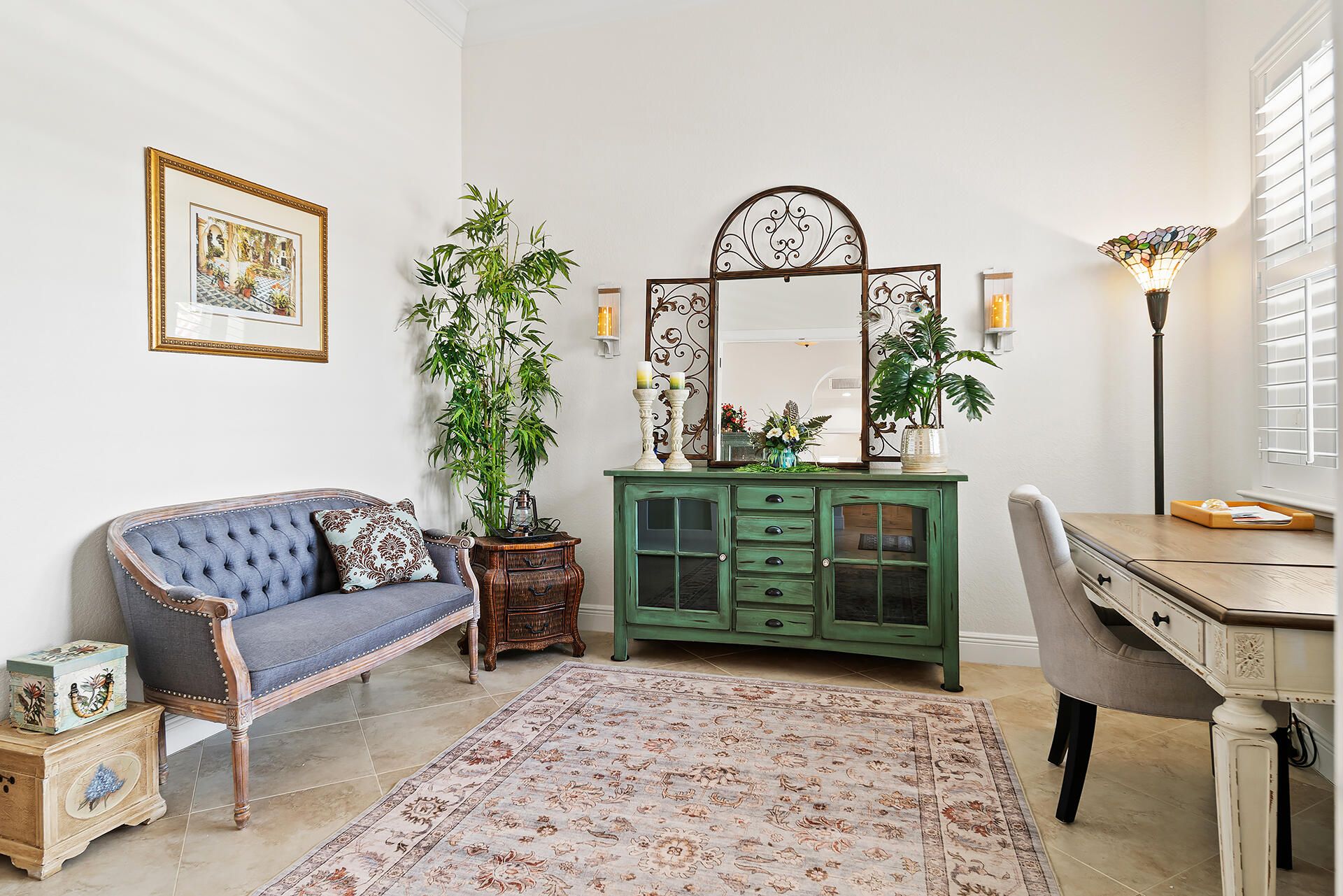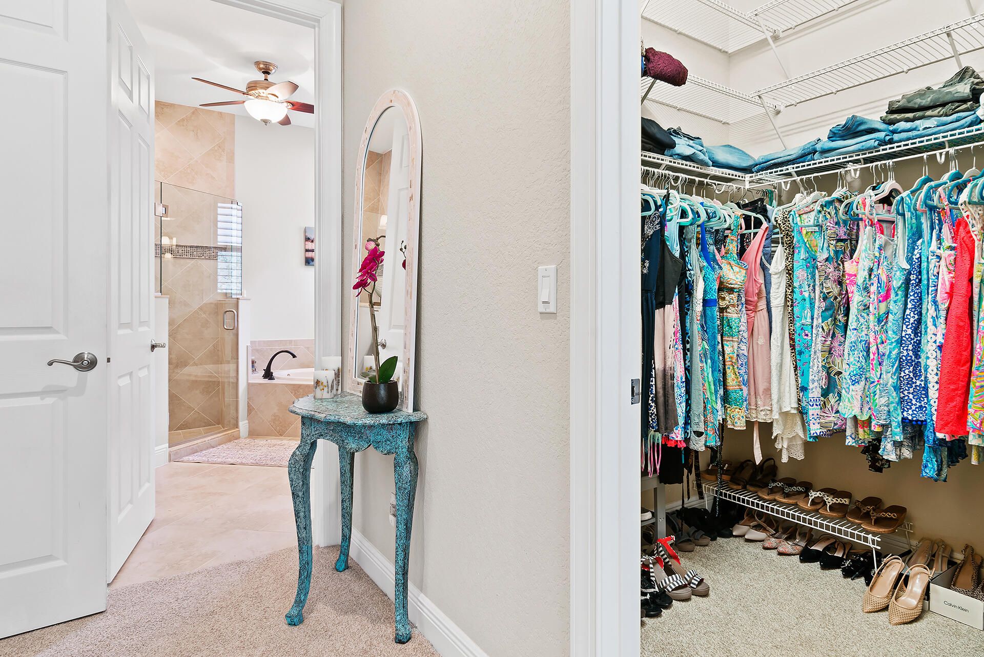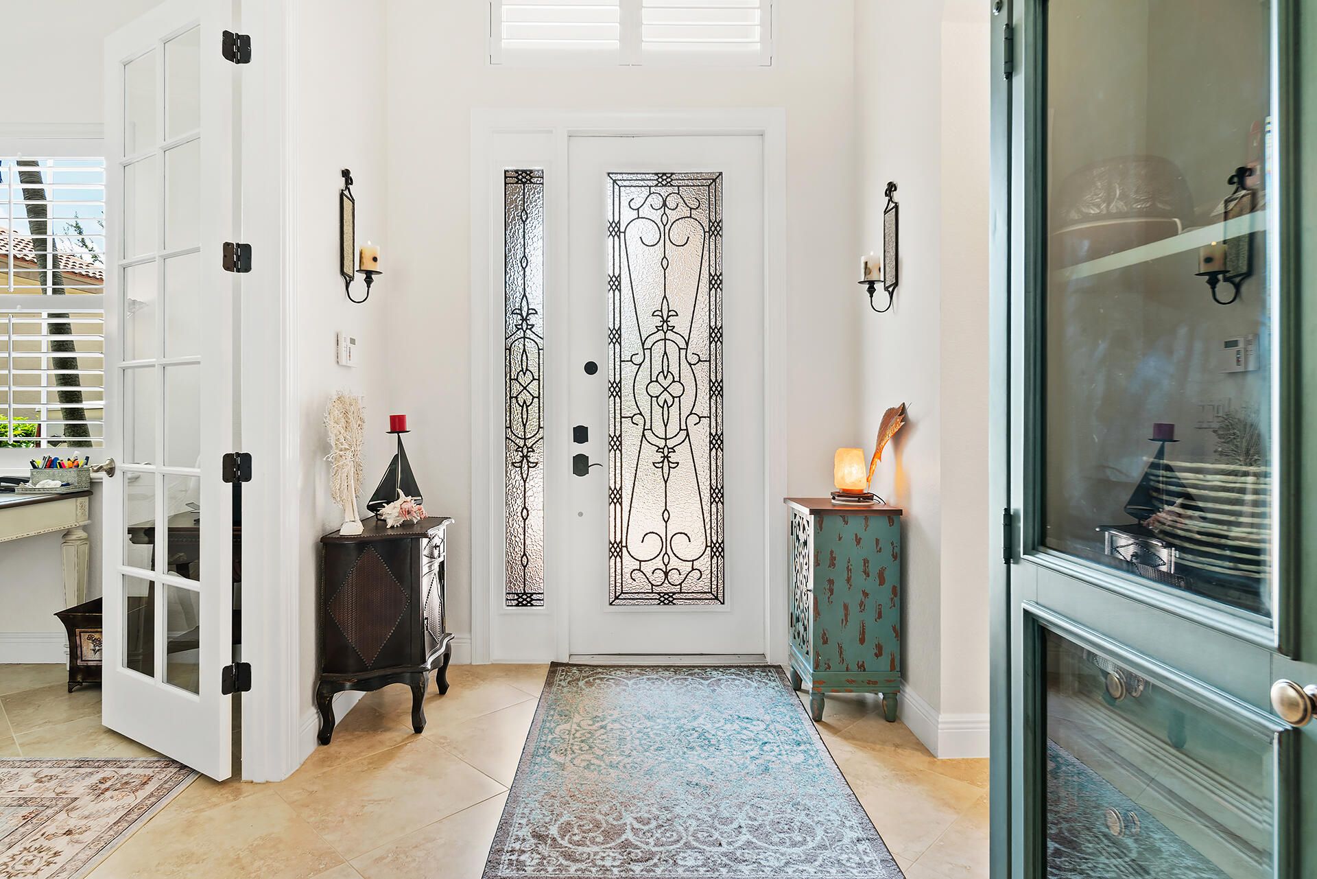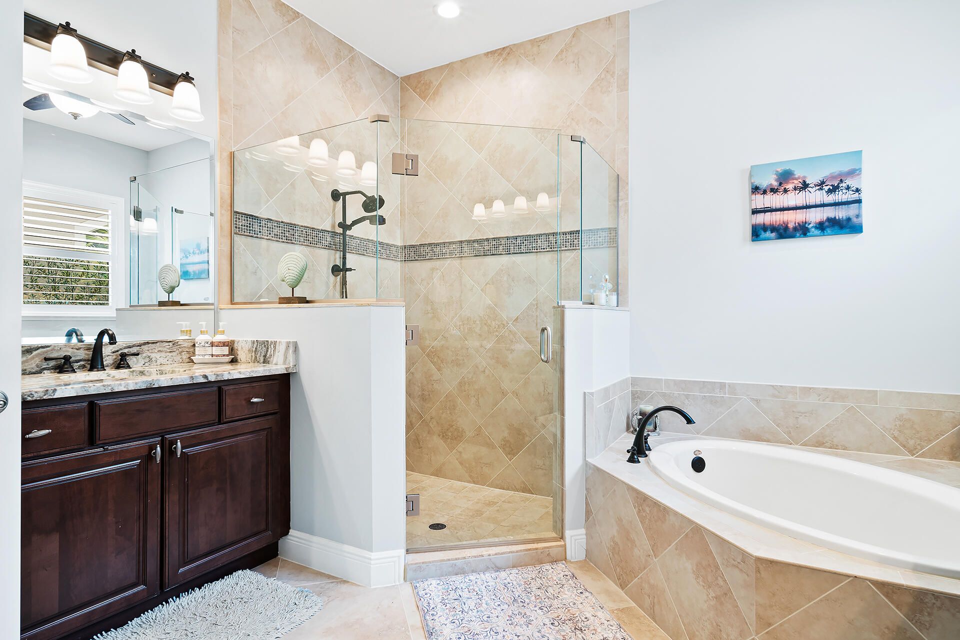 - Entrance Foyer, Pantry, Garden Tub/Roman Tub, Split Bedrooms, High Ceilings, Walk-In Closet(s), Home Office, Family/Dining Room, Eat-in Kitchen, Snack Bar, Impact Glass, Plantation Shutters, Dual Sinks, Separate Shower, Bathtub