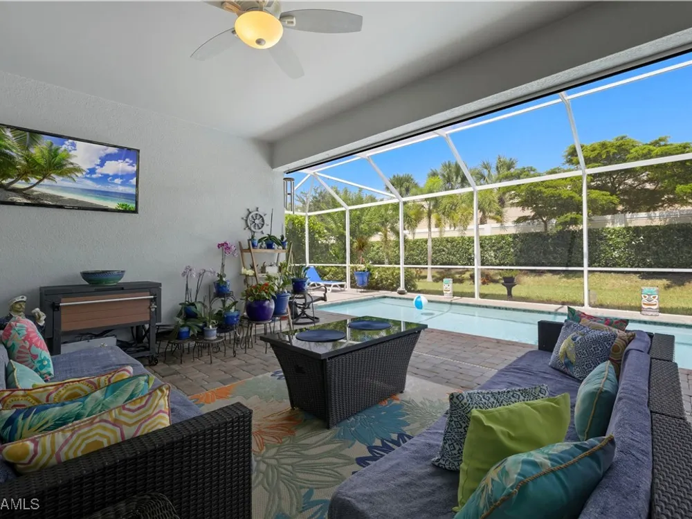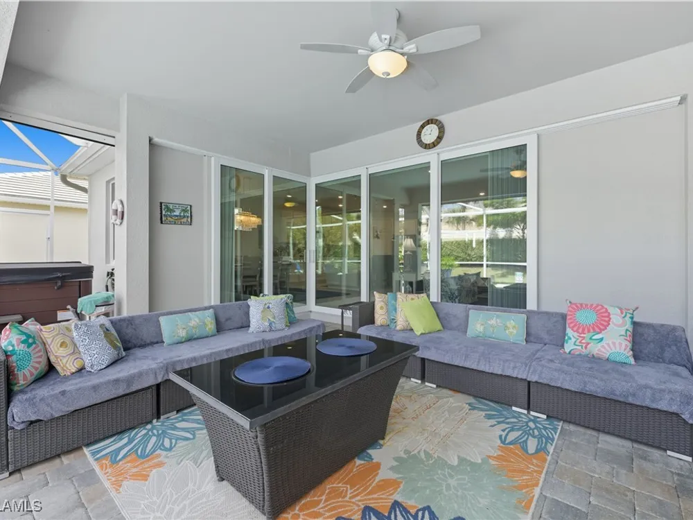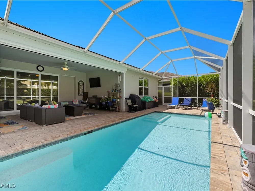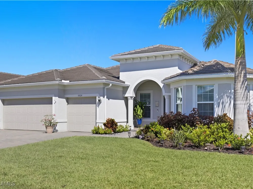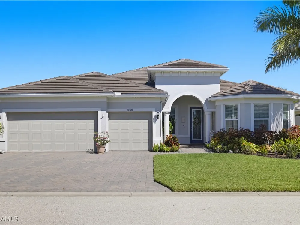 Welcome to 10524 Otter Key Ln in the beautiful Tidewater 55+ Del Web Community. This gorgeous Pinnacle Model home offers 3 bedrooms plus a roomy den-office and 3 full bathrooms. The home comes with a 3 car garage, perfect of a golf cart and is centrally located to Bonita Springs and Naples. This home is nestled within a gated community, offering an array of resort style captivating amenities, including the Amenities Center, Activities Director, Fitness room, Pickleball, Tennis, Bocce, and a Sparkling Community Pool with Lap lanes and Spa, with a convenient Dog Park. the home offers a Screened in extended Lanai, with plenty of room under roof for those rainy days, it has a new Heater Installed November 2024, and above ground Spa that stays with the home. The stainless-steel appliances and NATURAL GAS cooktop and extended Island, makes the kitchen a chef's dream. Including a newer Refrigerator. Additionally, the property includes a large extended Island with Quartz Surfaces throughout, IMPACT WINDOWS, and Zero corner sliders. The Primary suite has a Large Shower and Oversized walk-in closet. The owners recently had a Generator installed with a warranty good through 2031 and Electric hurricane screens on the Lanai ensure peace of mind. NO CDD REQUIRED. Close proximity to Miromar Outlets, Coconut Point Mall, Gulf Coast Center, Hertz Arena, RSW Airport, and SW Florida beaches makes this location unbeatable. Don't miss out on this unique opportunity, make your move!