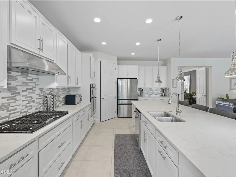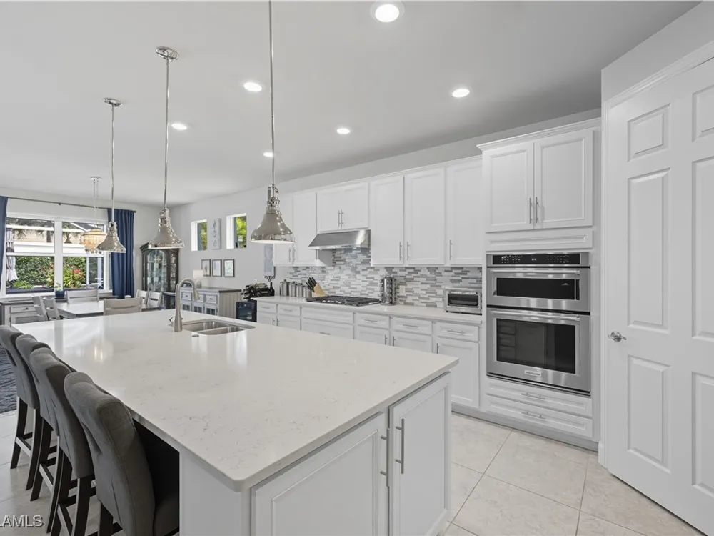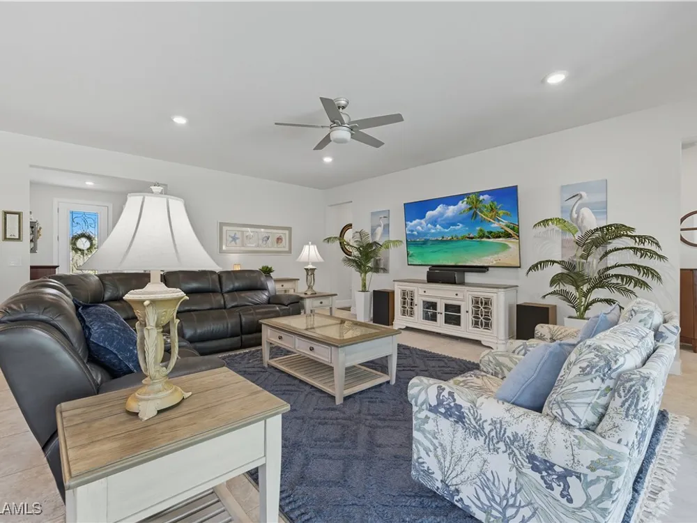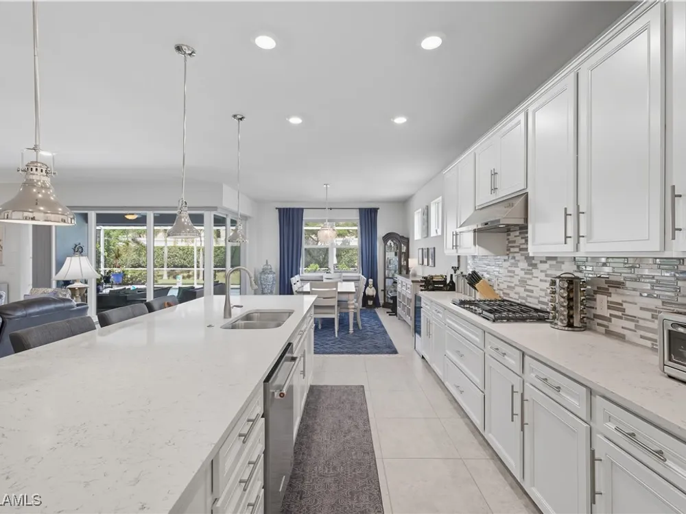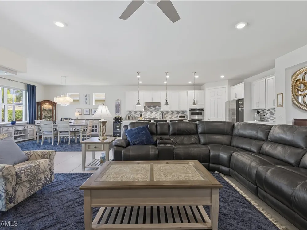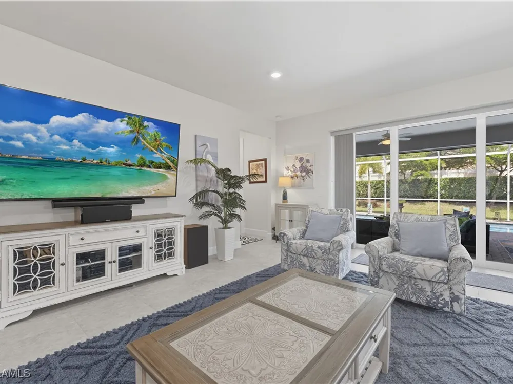 Welcome to 10524 Otter Key Ln in the beautiful Tidewater 55+ Del Web Community. This gorgeous Pinnacle Model home offers 3 bedrooms plus a roomy den-office and 3 full bathrooms. The home comes with a 3 car garage, perfect of a golf cart and is centrally located to Bonita Springs and Naples. This home is nestled within a gated community, offering an array of resort style captivating amenities, including the Amenities Center, Activities Director, Fitness room, Pickleball, Tennis, Bocce, and a Sparkling Community Pool with Lap lanes and Spa, with a convenient Dog Park. the home offers a Screened in extended Lanai, with plenty of room under roof for those rainy days, it has a new Heater Installed November 2024, and above ground Spa that stays with the home. The stainless-steel appliances and NATURAL GAS cooktop and extended Island, makes the kitchen a chef's dream. Including a newer Refrigerator. Additionally, the property includes a large extended Island with Quartz Surfaces throughout, IMPACT WINDOWS, and Zero corner sliders. The Primary suite has a Large Shower and Oversized walk-in closet. The owners recently had a Generator installed with a warranty good through 2031 and Electric hurricane screens on the Lanai ensure peace of mind. NO CDD REQUIRED. Close proximity to Miromar Outlets, Coconut Point Mall, Gulf Coast Center, Hertz Arena, RSW Airport, and SW Florida beaches makes this location unbeatable. Don't miss out on this unique opportunity, make your move!