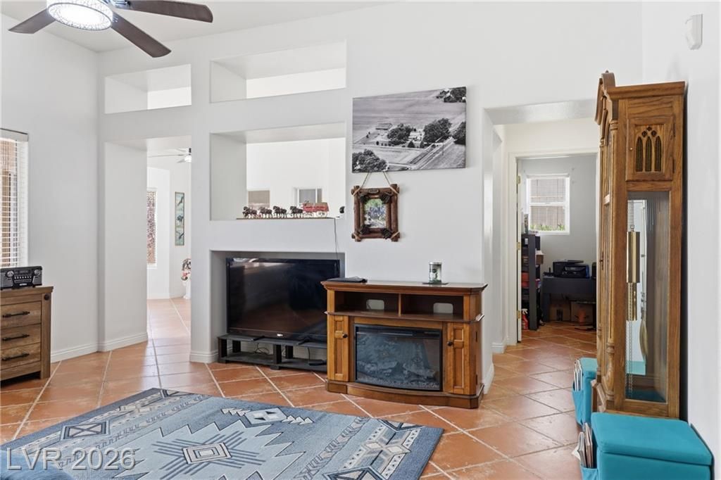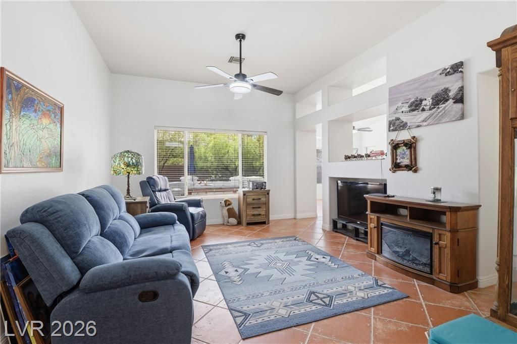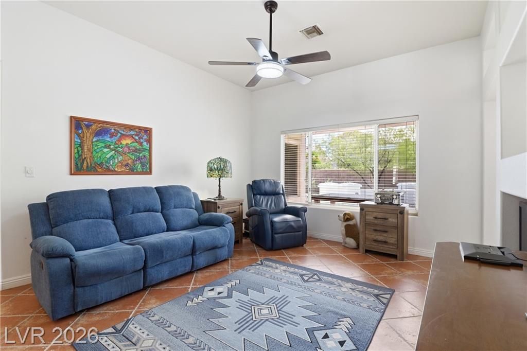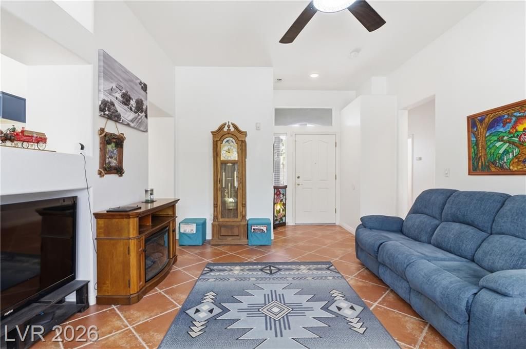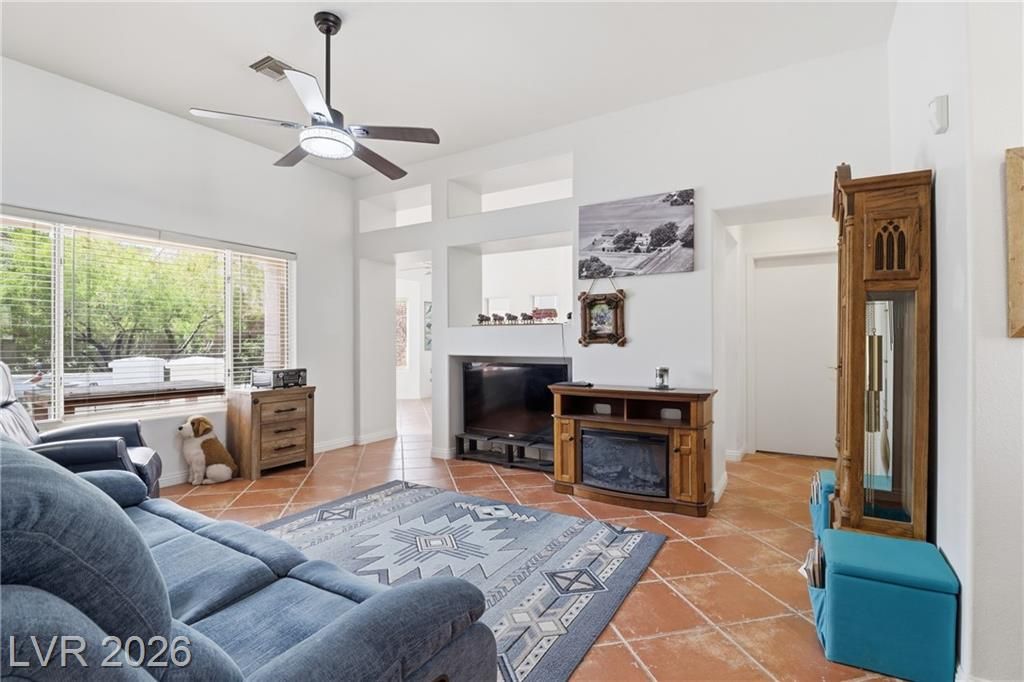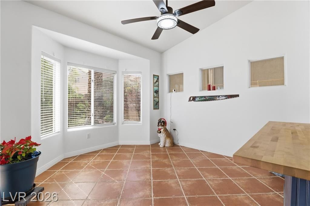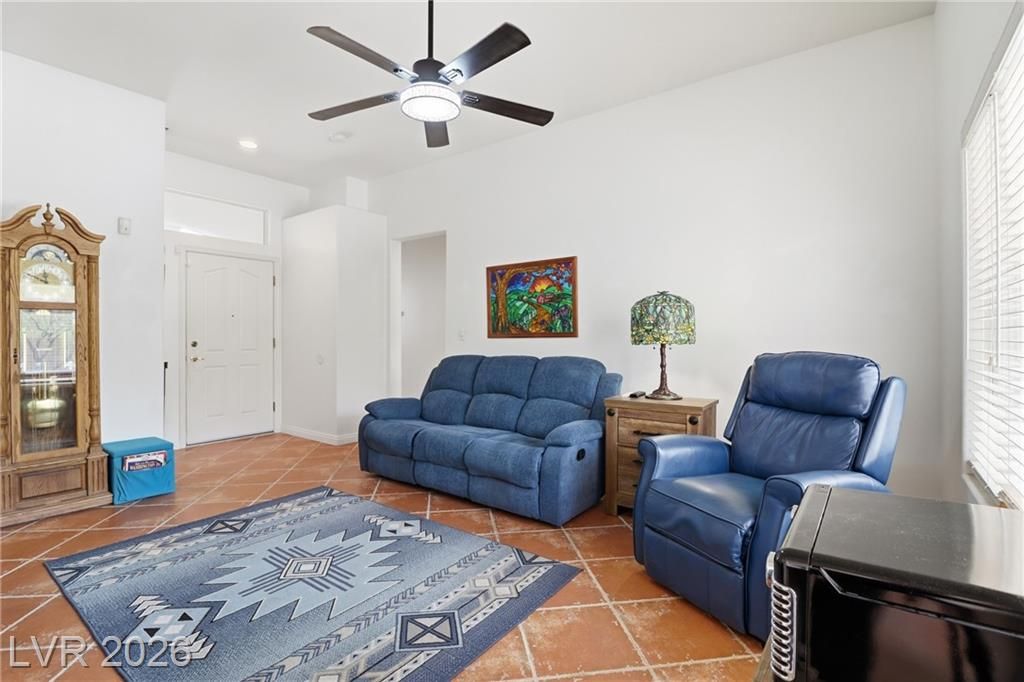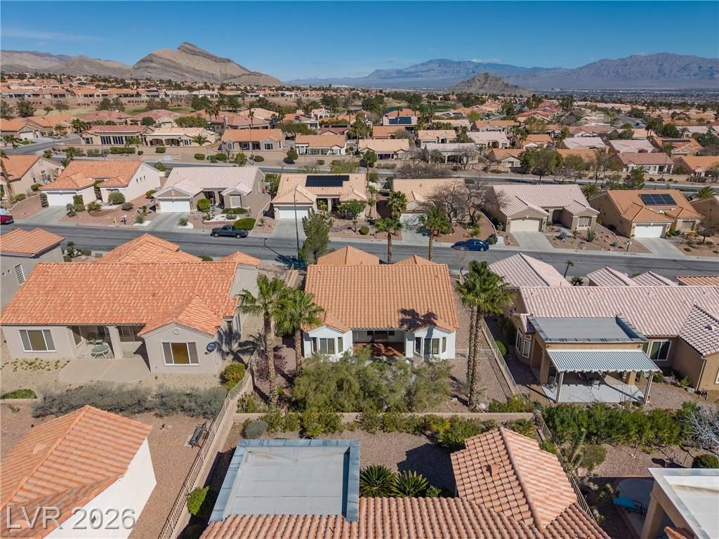 Discover your ideal retirement home in the 55+ community of Sun City Summerlin. This charming single-story gem features 2 bedrooms, 2 bathrooms, a fully fenced backyard, & a 2-car garage with golf cart parking. Inside, abundant natural light, high ceilings, & tile flooring create an open, airy feel. The living & dining areas flow seamlessly & open to the backyard through sliding doors—perfect for everyday living. The kitchen offers a breakfast bar, a casual dining area, built-in appliances, & plenty of cabinetry. The master suite features a bay window, a walk-in closet, & a private bath with a walk-in shower. A spacious secondary bedroom & a small flex room off the kitchen is ideal for an office or craft space. Step outside to a peaceful, Zen-inspired backyard with a covered patio & low-maintenance desert landscaping—perfect for relaxing. Enjoy Sun City Summerlin’s outstanding amenities, including a pool, golf course, clubhouse, tennis courts, and more designed for an active lifestyle.