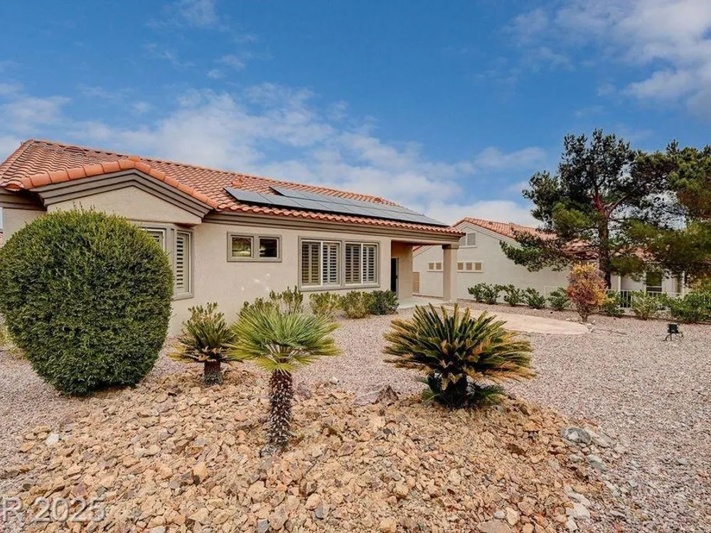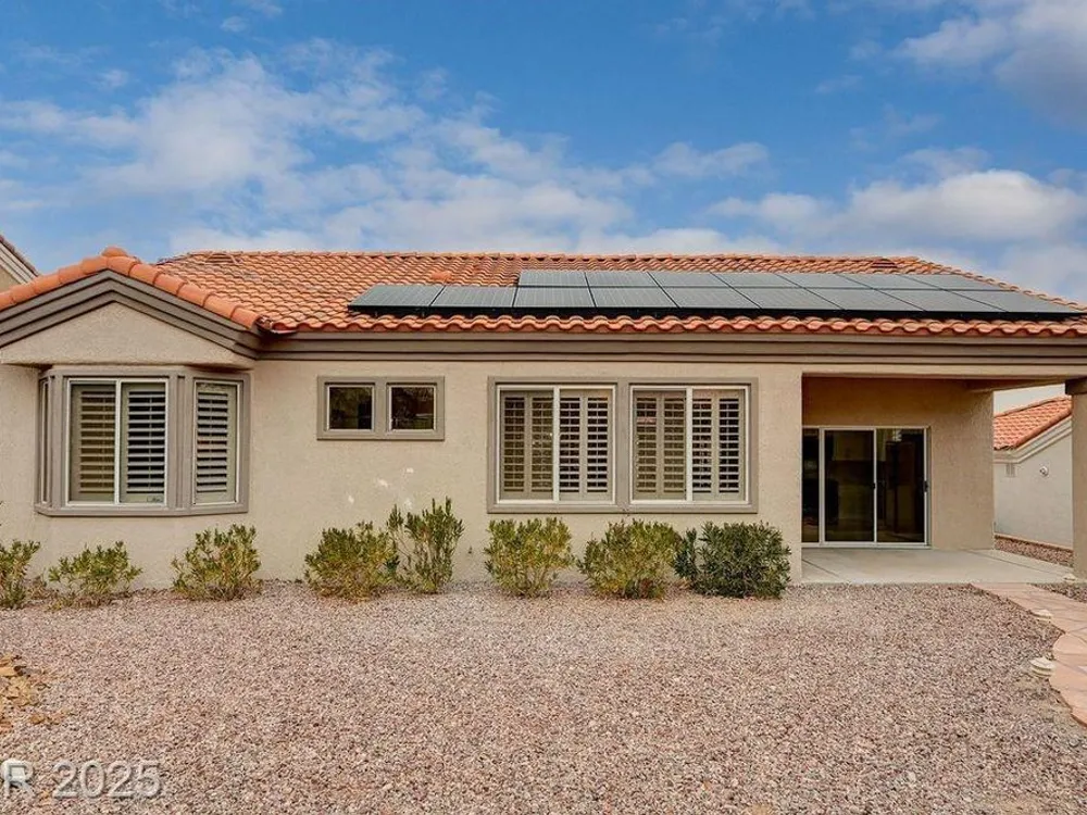 This stunning home has a Fully Paid Off Solar System saving $$ (avg cost $24.46 a month per NV Energy) and increasing the homes value in the age restricted 55+ Sun City Summerlin community! This completely remodeled home features new QUARTZITE counter tops throughout, plantation shutters, new custom cabinets, new stainless steel appliances, custom master bathroom with dual vanities, new exterior/interior paint, laminate flooring with 5 inch baseboards, new plumbing and lighting fixtures, epoxy garage floor and a covered back patio! Sun City Summerlin has again won best Premier 55+ community in the state of Nevada and #3 in the US with 3 golf courses, 2 restaurants,4 club houses, many amenities including 4 indoor/outdoor pools, gyms, tennis and pickle ball courts, racquetball court, baseball park, miniature golf, roaming security patrols, social clubs and activities galore!! The nearby Downtown Summerlin shops, Las Vegas Aviators ball park, restaurants and events are within minutes!