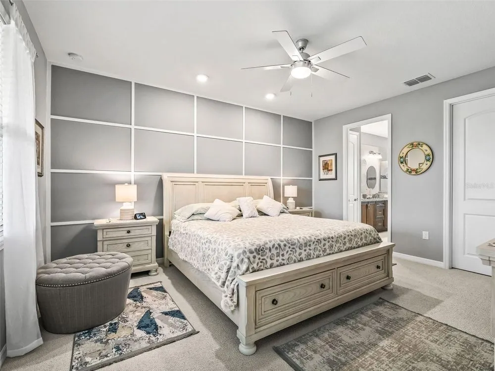 - Built-in Features, Ceiling Fan(s), Coffered Ceiling(s), Crown Molding, Eat-in Kitchen, High Ceilings, Open Floorplan, In-Wall Pest Control, Smart Home, Solid Surface Counters, Split Bedrooms, Thermostat, Vaulted Ceiling(s), Walk-In Closet(s), Window Treatments