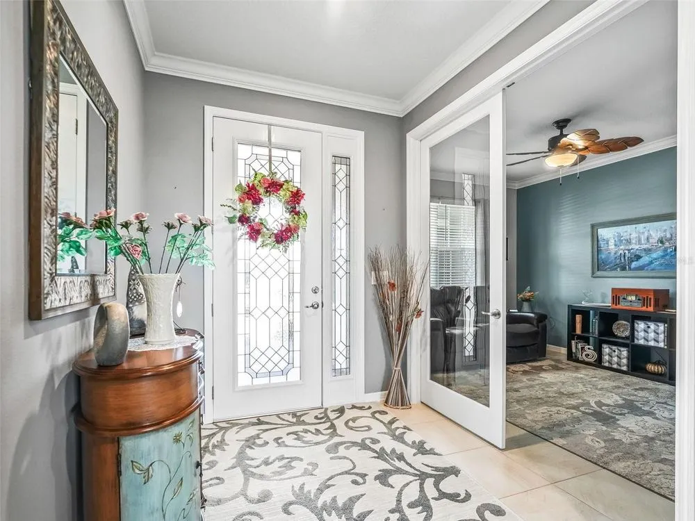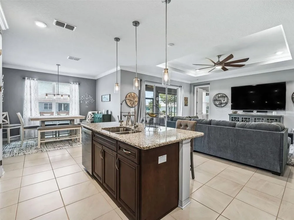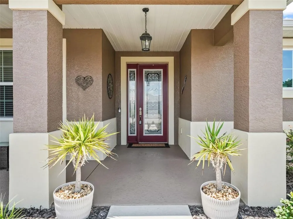 PRICE IMPROVEMENT ON THIS Immaculate 2 Bedroom, 2 Bath Livingston Model Home with lots of Upgrades throughout and you will also notice this house is meticulously clean– Avalon 7 is in (On Top of the World!) 55 PLUS GATED COMMUNITY. Welcome to your dream home in the sought-after 55+ community of On Top of the World, Avalon 7! This beautifully upgraded Livingston model offers 2 spacious bedrooms, 2 bathrooms, and a flex room with French doors, perfect as an office, den, or guest room. This bonus room being used at a den at the moment and will greet you as you enter through the foyer in front of the house, split concept keeping it separate from the other rooms for added privacy. Step inside to find tall ceilings, including a coffered vaulted ceiling in the living room with a large, modern ceiling fan. Tile floors flow with tile throughout, with carpet only in the bedrooms for added comfort. The open-concept living and dining area boasts bright natural light and serene backyard views. The chef’s kitchen is outfitted with granite countertops, stainless steel appliances, a pantry, and a cozy dining nook. Retreat to the spacious primary suite, featuring a custom designer accent wall, large walk-in closet, and a luxurious en-suite bath with dual granite sinks, oversized tiled walk-in shower with grab bars, and a linen closet. The guest bedroom is light and airy, also with backyard views, and the guest bath is tastefully finished with granite and tile. Enjoy year-round relaxation in the nearly 27-foot-long screened lanai under the main roofline—perfect for entertaining or soaking in the Florida sunshine. Additional highlights include: Oversized 2-car garage with room for a golf cart, epoxy flooring, and extra storage Smart home features Ceiling fans in every room Water softener and purifier, dual system Laundry room with gas/electric dryer options and utility sink Monthly HOA Fees Include: 24/7 gated security at all 3 entrances Exterior lawn care included with lease fee. Roof maintenance, roof replaced every 20 years, check with management for any updates. Trash pickup included in your taxes, you are able to take your trash daily to the community assigned stations. Basic internet included with lease fee. Access to 3 community pools (including indoor heated pool) 2 fitness centers Tennis, pickleball, softball, archery, bocce ball, billiards, and more Veterans Park, dog park, RC flying field, drone and car tracks On-site restaurant Golf cart access to nearby shopping centers This home is move-in ready and like new (un-furnished) offering low-maintenance living with world-class amenities. Don’t miss your chance to live the Florida lifestyle in one of the most active and vibrant communities in the state! Schedule your private in person or tour today!