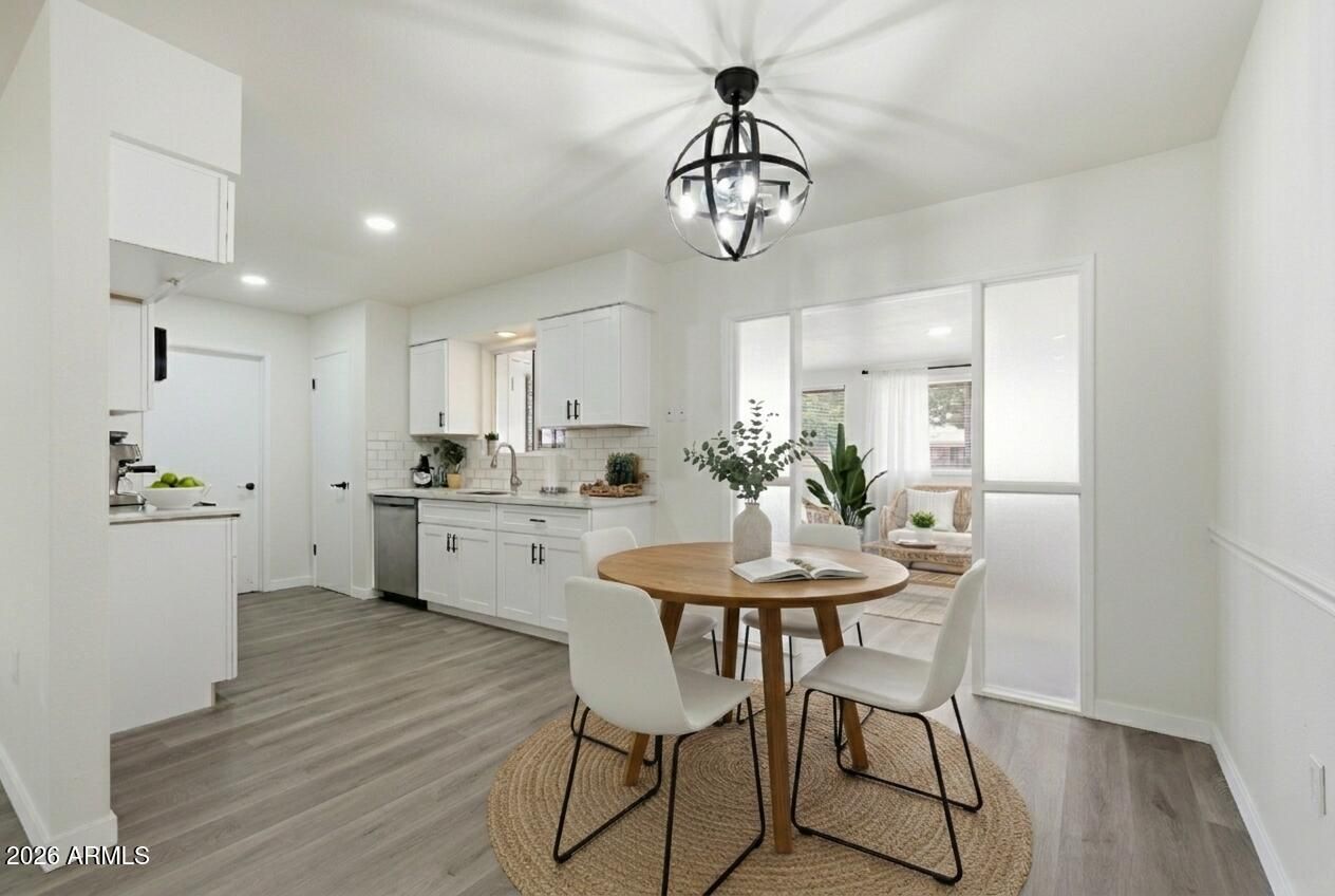 Enjoy true ''lock-and-leave'' living in the heart of Sun City--one of Arizona's most sought-after active adult communities. This beautifully remodeled 2-bedroom, 1.5-bath Gemini home offers effortless, low-maintenance living with HOA-maintained grounds, giving you the freedom to travel and enjoy everything Sun City has to offer. Inside, you'll find a bright, move-in-ready space featuring luxury vinyl plank flooring, fresh paint, smooth ceilings, updated electrical, & a stylish kitchen with new appliances & a spacious pantry. Indoor laundry adds everyday ease. Start your mornings in the Arizona Room & unwind on your covered patio overlooking lush green space. Just a short walk to Sundial Recreation Center and Sun City Lakes West Golf Course, you'll enjoy golf, pools, fitness, clubs, & more.