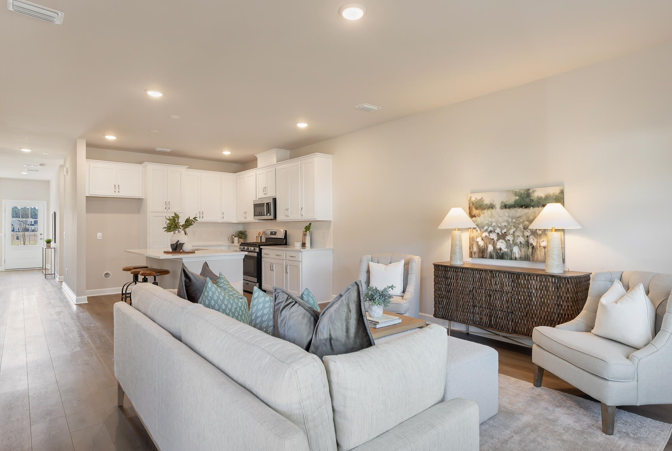 Welcome to 1053 Dusk Drive, a beautifully appointed one story villa located in Hammock Walk, at Nexton. This thoughtfully designed home features the timeless interior collection and offers a bright and open layout ideal for comfortable everyday living. As you enter the home, a secondary bedroom is positioned at the front, complete with a walk in closet and convenient access to a full bathroom, providing a private and welcoming space for guests or a home office.The kitchen is both stylish and functional, showcasing elegant white 42 inch cabinetry, a gas range, quartz countertops, and a designer backsplash that anchors the space. The kitchen flows seamlessly into the main living area, where luxury vinyl plank flooring runs throughout, creating a cohesive and low maintenance living environment. The primary bedroom is tucked toward the back of the home and features additional windows that fill the space with natural light. This serene retreat includes a spacious walk in closet, a linen closet, and a beautifully appointed primary bathroom. Step outside to the extended covered back patio, where you can enjoy the current wooded view, an added bonus of this end unit homesite that provides additional privacy. This home offers true low maintenance living, with the HOA covering the majority of exterior maintenance, along with the added peace of mind of a builder warranty. Hammock Walk is Nexton's active adult enclave, designed for connection, convenience, and an elevated lifestyle. Residents enjoy walking trails, pickleball courts, a dog park and a pond/pavillion area. Nexton offers an unmatched lifestyle with miles of trails, parks, community gathering spaces, shopping, dining, healthcare, and easy access to everything the Lowcountry has to offer. Just minutes from historic Summerville and a short drive to Charleston, beaches, and major employers, this home delivers comfort, convenience, and community in one exceptional setting. If you are seeking a beautiful, turn-key villa with refined finishes, privacy, and access to one of the most sought after master planned communities in the region, 1053 Dusk Drive is an opportunity not to be missed.