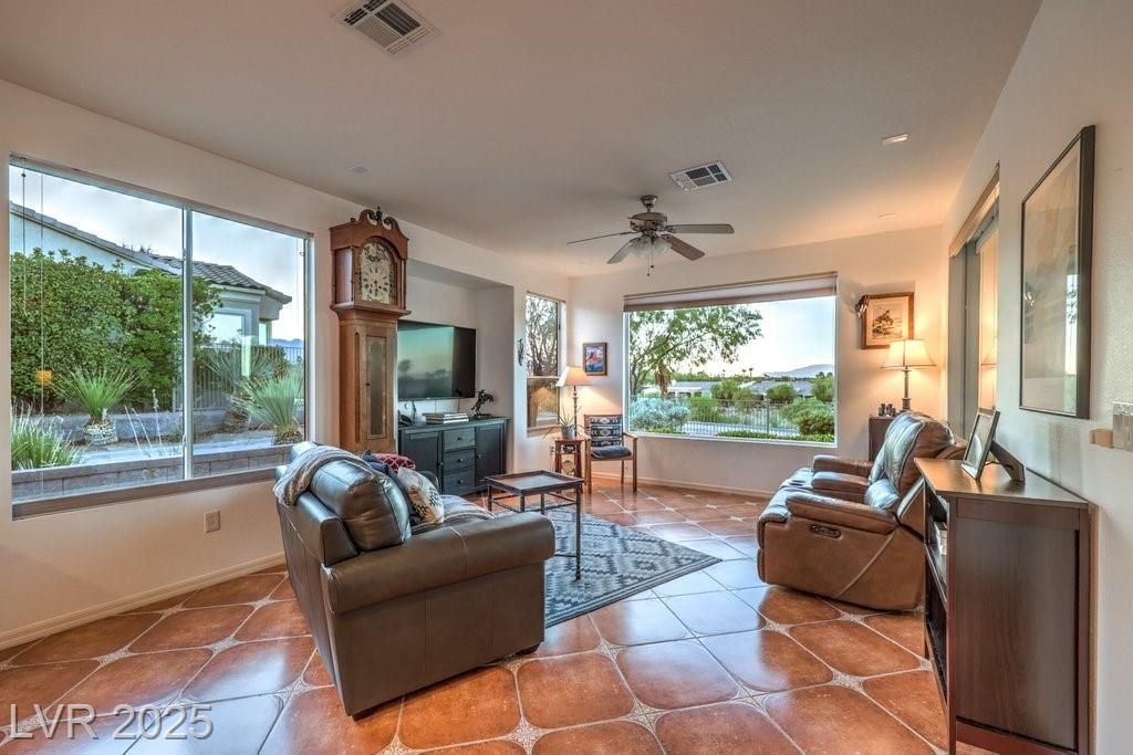 SPECTACULAR GOLF COURSE HOME*This is the home you've been waiting for! Almost 2200 square feet ofliving space on the 16th tee of the Siena course*floor plan offers open concept living/dining rooms plusfamily room off of kitchen, spacious primary bedroom and updated spa style bath, guest room and den, 2baths and a 3 car garage. Unparalleled backdrop featuring golf course, mountain, city and strip views.Every part of this beautiful home has been lovingly cared for. This home has it all--Graciously sized livingroom has built in bookshelves*Primary bath offers updated shower with mud set tile and modern tub plusseparate vanities. Primary bedroom features huge windows overlooking the fairway and has lots of closetspace. Interior amenities include laundry room w/cabinets, ceiling fans & more. Top it all off with a fulllength covered patio that offers a respite from the heat while still enjoying the fairway, mountain and stripviews. WOW! WOW! WOW!