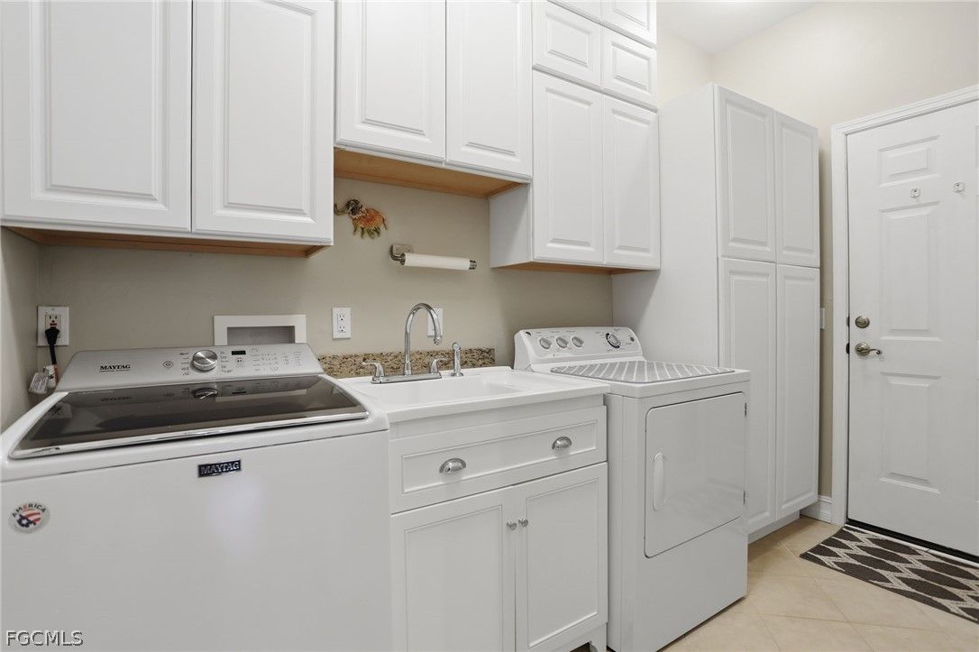 Welcome to this beautifully updated attached villa in the highly sought-after Verona neighborhood of Pelican Preserve, one of Southwest Florida’s premier active adult communities. Perfectly positioned to capture serene, long lake views, this residence offers a peaceful setting where you can enjoy breathtaking sunrises and tranquil waterfront living right from your own backyard. Step inside to discover a light-filled, open-concept floor plan designed for both comfort and style. The kitchen has been thoughtfully upgraded with elegant granite countertops, modern cabinetry, and ample storage, making it ideal for both everyday living and entertaining. The spacious living and dining areas flow seamlessly, creating an inviting atmosphere that complements the home’s scenic surroundings. Large windows and sliding glass doors bring in abundant natural light while framing the picturesque lake views. The primary suite offers a relaxing retreat with generous space, while the additional bedroom and flexible living areas provide versatility for guests, a home office, or hobbies. Whether you're enjoying your morning coffee on the lanai or hosting friends for sunset cocktails, this villa embodies the best of Florida living. Pelican Preserve is a nationally recognized, award-winning 55+ community known for its unmatched lifestyle and resort-style amenities. Residents enjoy access to a private golf club, resort and lap pools, state-of-the-art fitness center, tennis and pickleball courts, and miles of walking and biking trails. The community also features a vibrant town center with dining options, social clubs, arts and crafts studios, and a full calendar of activities designed to foster connection and an active lifestyle. Ideally located close to shopping, dining, entertainment, and Southwest Florida’s beautiful beaches, this villa offers the perfect combination of luxury, convenience, and community. Experience the ultimate in low-maintenance living in one of Fort Myers’ most desirable neighborhoods.