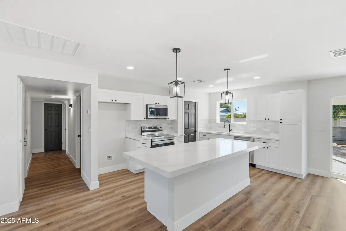 Completely transformed and unlike anything else in the area, this fully remodeled 3 bedroom, 2 bath home stands in a class of its own. The brand new kitchen features on trend white cabinetry, quartz countertops, a striking backsplash, and stainless steel appliances. Both bathrooms have been remodeled from top to bottom with high-end finishes. Upgraded lighting and plumbing fixtures enhance the home throughout, along with fresh interior paint, new wood-style plank flooring, new windows and window coverings. Additional highlights include a newer roof and A/C, owned solar panels, interior laundry room, bonus storage room ideal for a pantry, one-car garage, and a large covered patio. Truly one-of-a-kind—there is nothing comparable on the market.