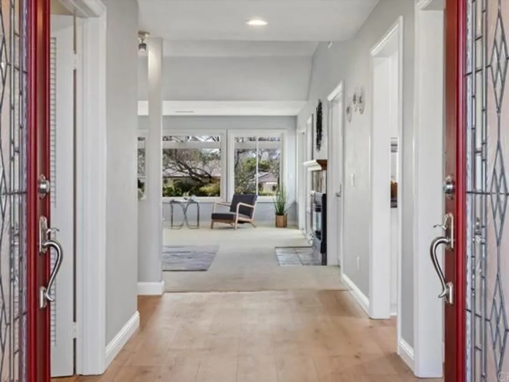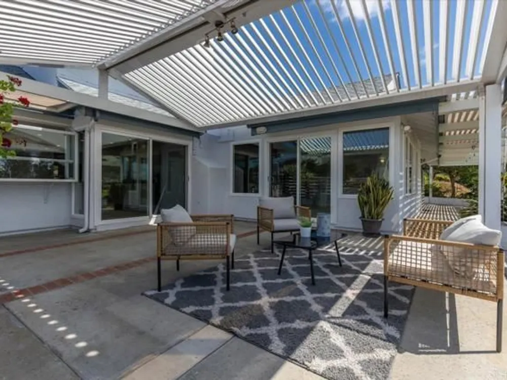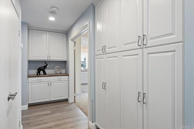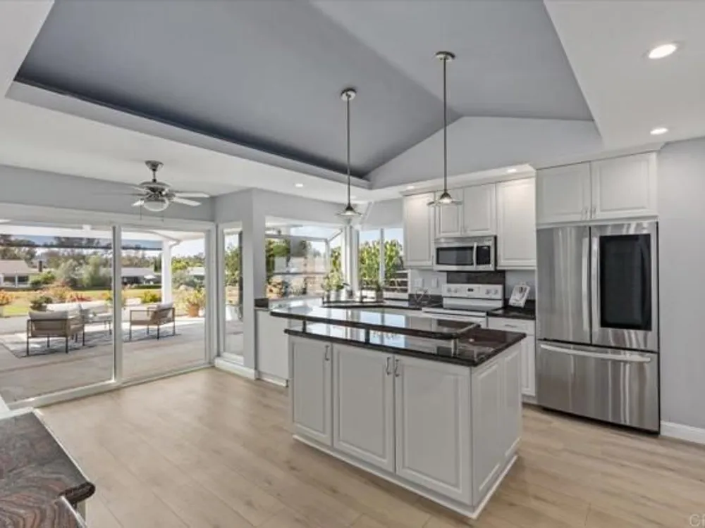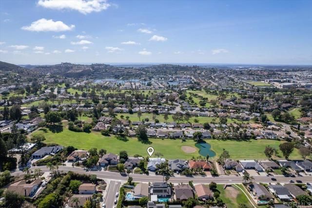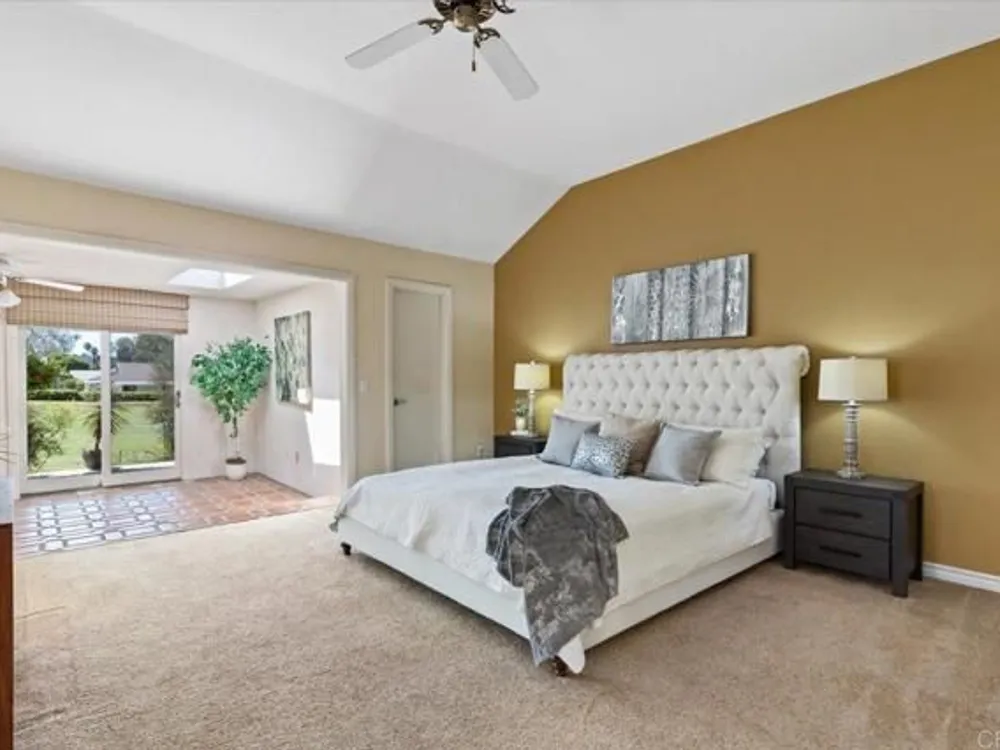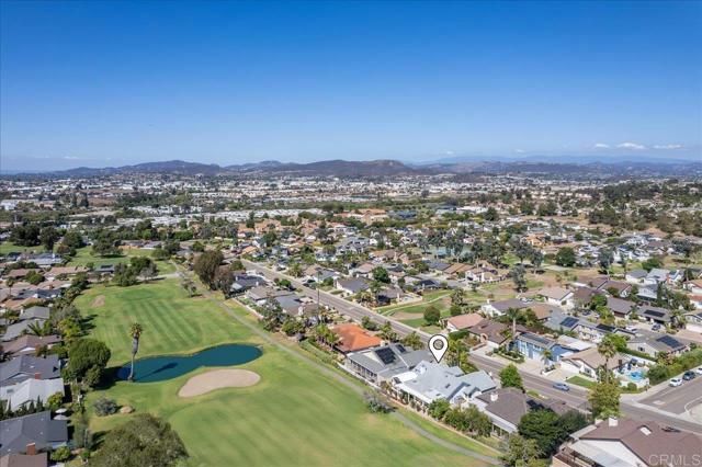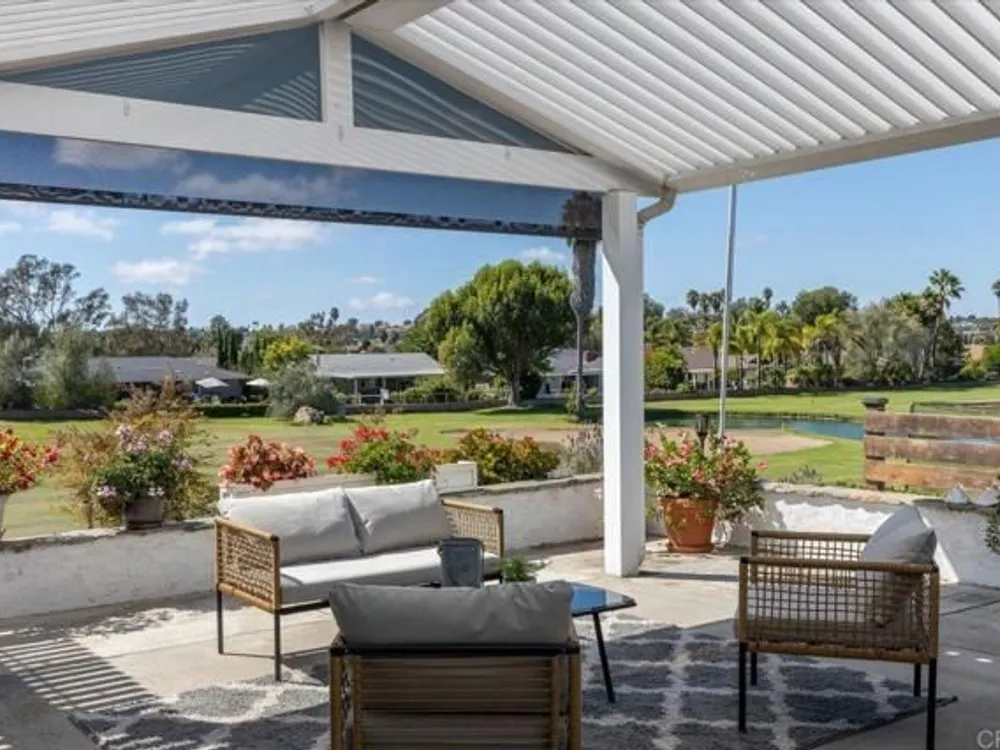 Lake San Marcos luxury views abound in this light and bright, window-lined golf course home on the 14th fairway of the Links at Lakehouse championship course. Soak up the sprawling vista of a blanket of green surrounding a majestic olive tree and peaceful pond just beyond. Enter in to the wide open living room under vaulted ceilings (and under a new roof!), enjoy a gas fireplace and the simple elegance of the upgraded luxury vinyl plank flooring and the natural flow of this well-planned layout. The remodeled kitchen has new cabinets, large gathering island with storage and bar seating, extra-large pantry, dining nook, Bosch dishwasher, new LG refrigerator, wine fridge and raised ceilings. Wander out to the huge wrap-around patio off the kitchen and under the tall, automated patio cover and experience those beloved breezes so coveted by those who live here at the lake. Sunset sits-and-sips out here are dreamy and are just a taste of the joy-filled days you will delight in among all the Lake San Marcos resort activities. Back inside, a large dining room beckons you for meals and memory-making while gazing through the bay window at the beautifully landscaped, yet low maintenance and private, front yard. The primary bedroom is large with a spacious ensuite bathroom, two walk-in closets and a bonus room/office/sunroom adjacent to the primary. A large, 2-car+golf cart garage with wonderful workbench and several tall storage closets lining the walls, plus pull-down attic storage, will woo the hobbyist and win over the future homeowner who loves optimal storage and organization for all their treasures! There is no HOA fee here, despite the resort life you'll be living! You can, however, choose to opt in, for a low annual fee, to the lake & lodge benefits of two pools, pickleball & tennis courts, boat rentals, discounts at the hotel, and more!