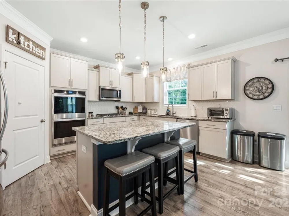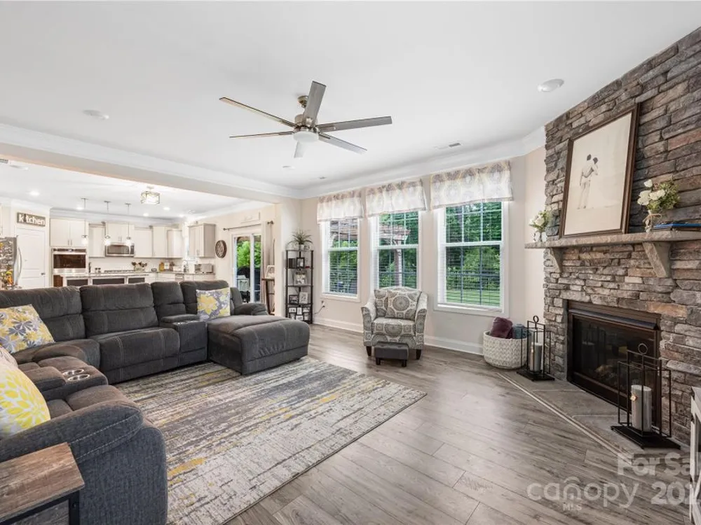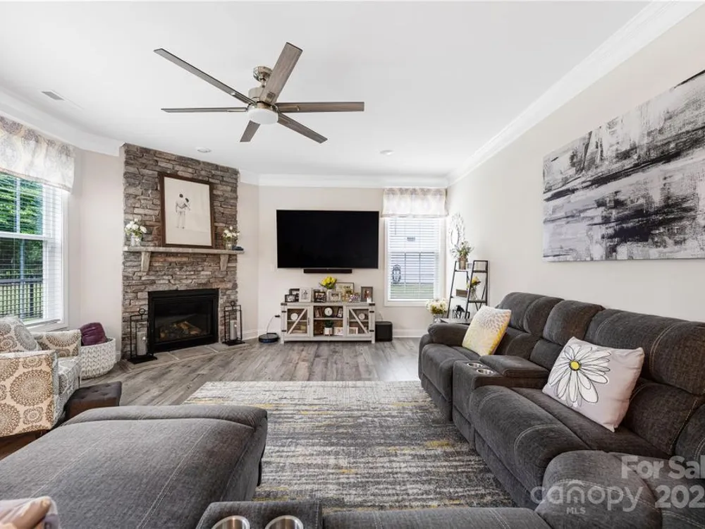This stunning 5 bedroom, 4 full bathroom home offers space, style, and functionality for modern living. It features a main-level bedroom and a dedicated office/flex space—perfect for guests, remote work, or sitting area. It boast 3668 square feet of living space. The heart of the home is a gourmet kitchen with granite countertops throughout, double oven and gas stove top. Ceiling fans are installed in nearly every room for year-round comfort. The expansive bonus room provides endless possibilities: media room, playroom, or 6th bedroom. Upstairs, the luxurious primary suite includes a sitting lounge, a spa-like ensuite bath, and 2 walk-in closets. Additional highlights include a 3-car garage, energy-efficient waterless hot water tank, and a fully fenced backyard that backs up to tranquil woods for extra privacy. Located in The Farm at Ingleside community with access to a community pool, gym, and clubhouse. Minutes from shopping, Lake Norman, Birkdale, and Mountain Island. MOTIVATED SELLER.
