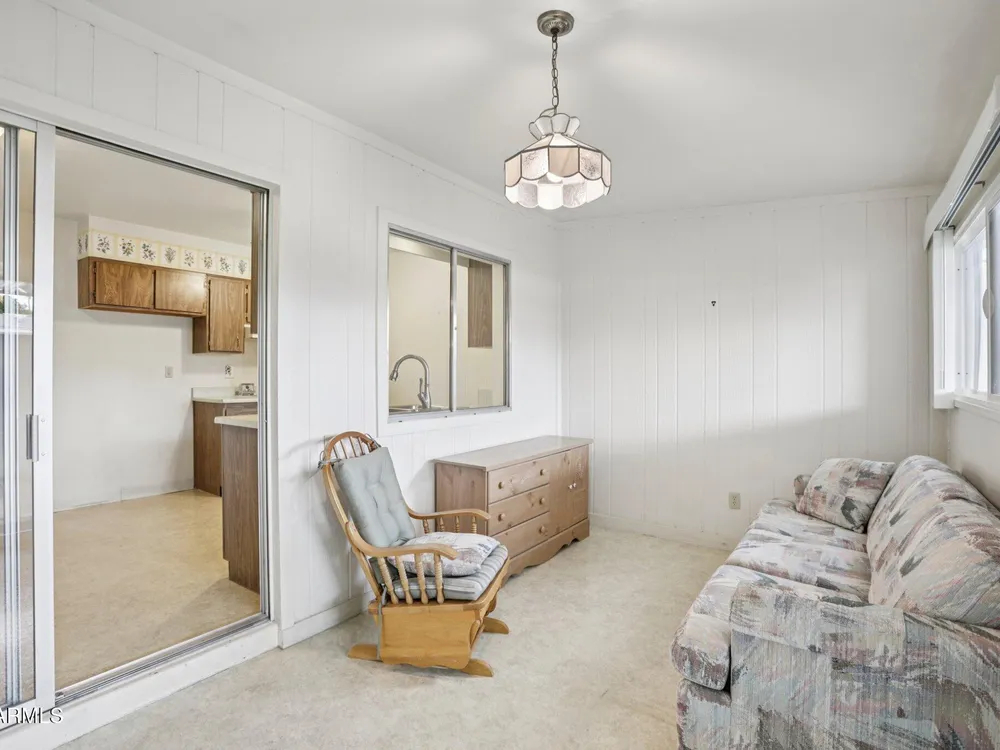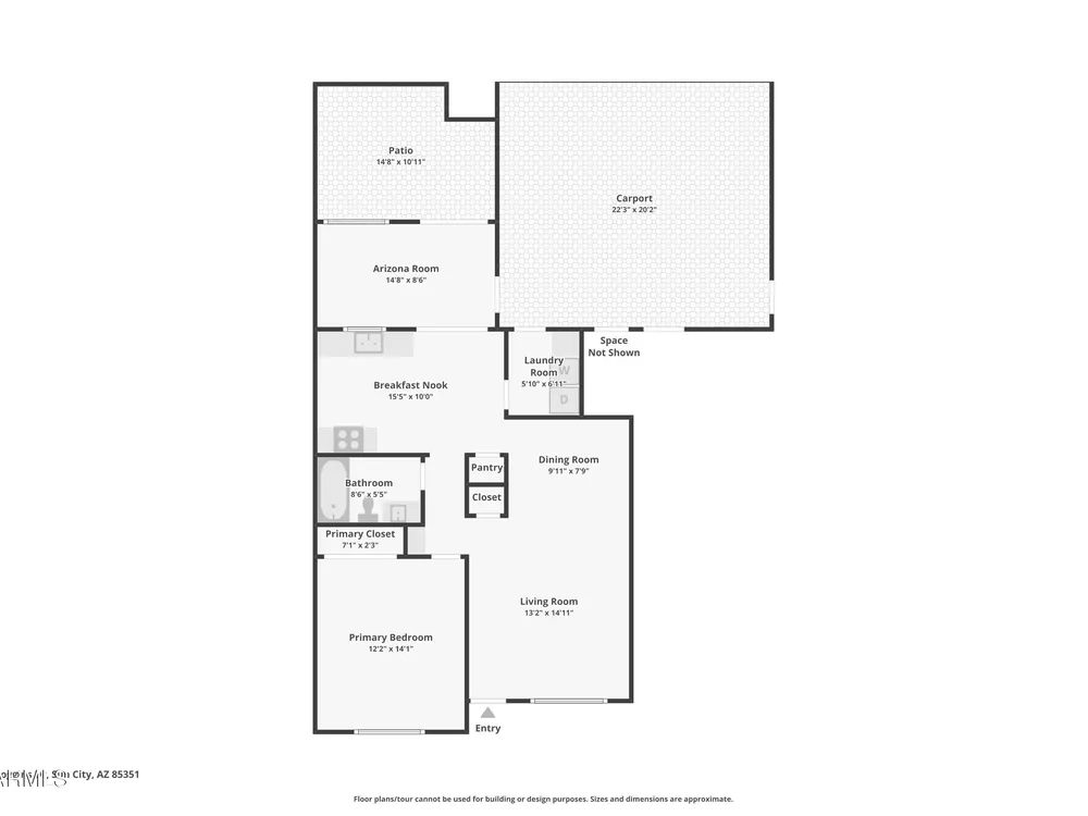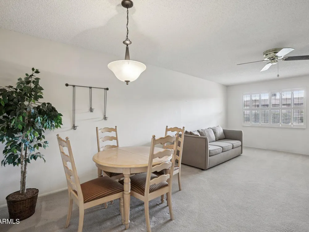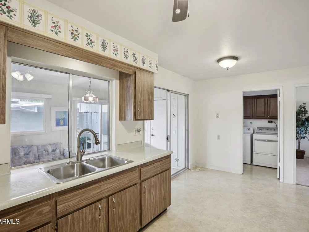This beautifully extended one-bedroom, one-bathroom home offers additional living space, making it an ideal choice for comfortable living in the heart of Sun City, Arizona. Located in a sought-after 55+ adult community, this home features a cozy breakfast nook off the kitchen, perfect for your morning coffee. Enjoy the benefits of indoor laundry and ample storage space, making organization a breeze. The home includes a one-car carport, ensuring convenience and protection for your vehicle. Step outside to a peaceful open courtyard, surrounded by stunning landscaping that creates a serene environment. Whether you're looking to downsize or simply enjoy the lifestyle that Sun City offers, this home is a fantastic opportunity. Priced to sell-Don't miss out!