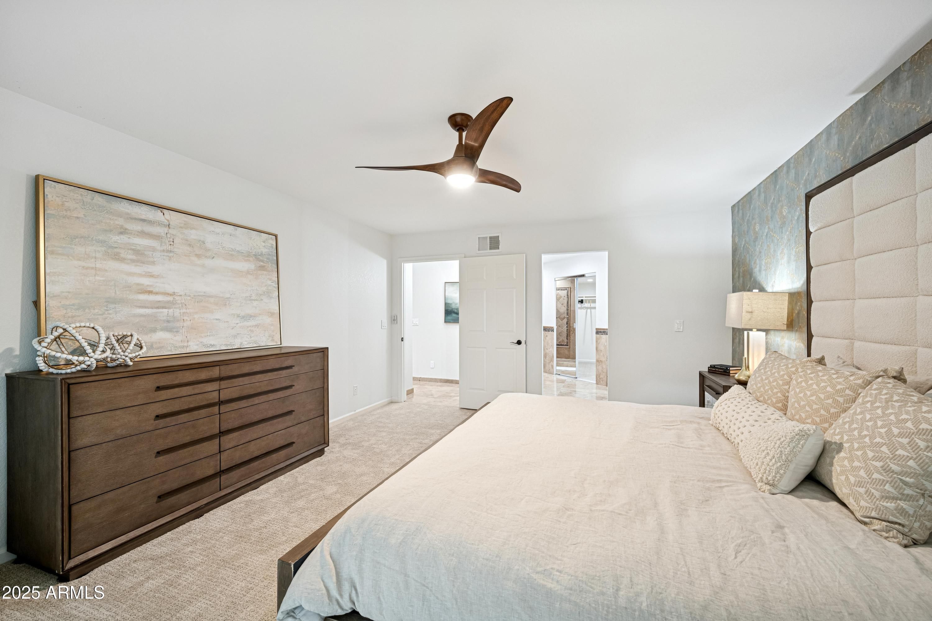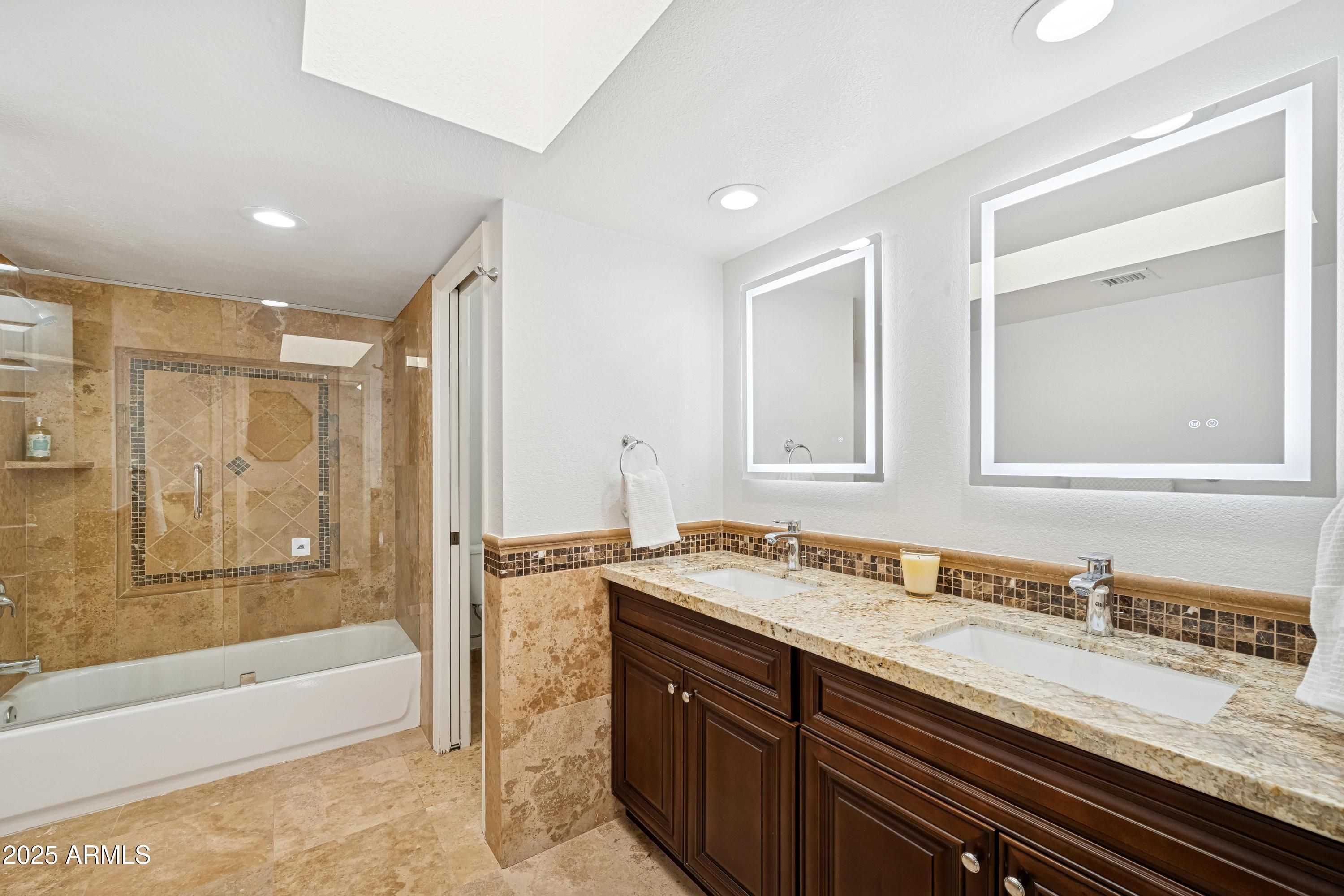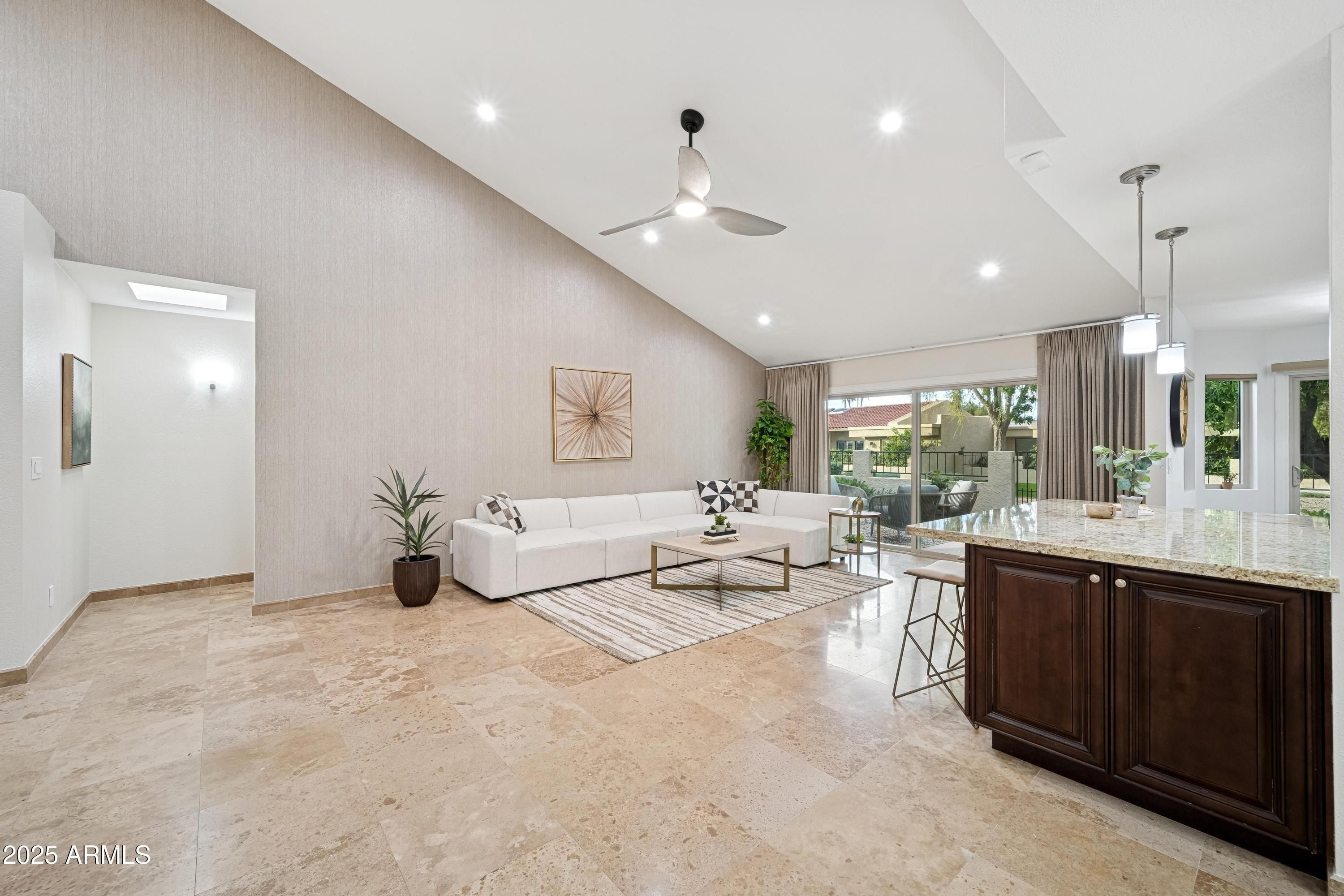Beautifully updated home in the coveted 55+ Heritage Village IV community of Scottsdale Ranch. Situated on a premium north/south facing cul-de-sac lot. This light-filled home has vaulted ceilings and skylights. Three patio doors and picture windows offer seamless indoor/outdoor living. The inviting layout includes a spacious primary suite, a second guest suite with full bath, and a versatile third bedroom or office/den. Community amenities include a heated pool, spa, and tennis courts, plus a second pool located right on Lake Serena. Enjoy easy strolls to Scottsdale Ranch Park, Scottsdale Senior Center, and the Desert Garden, along with lake activities, clubs, events, and friendly neighborhood gatherings.
