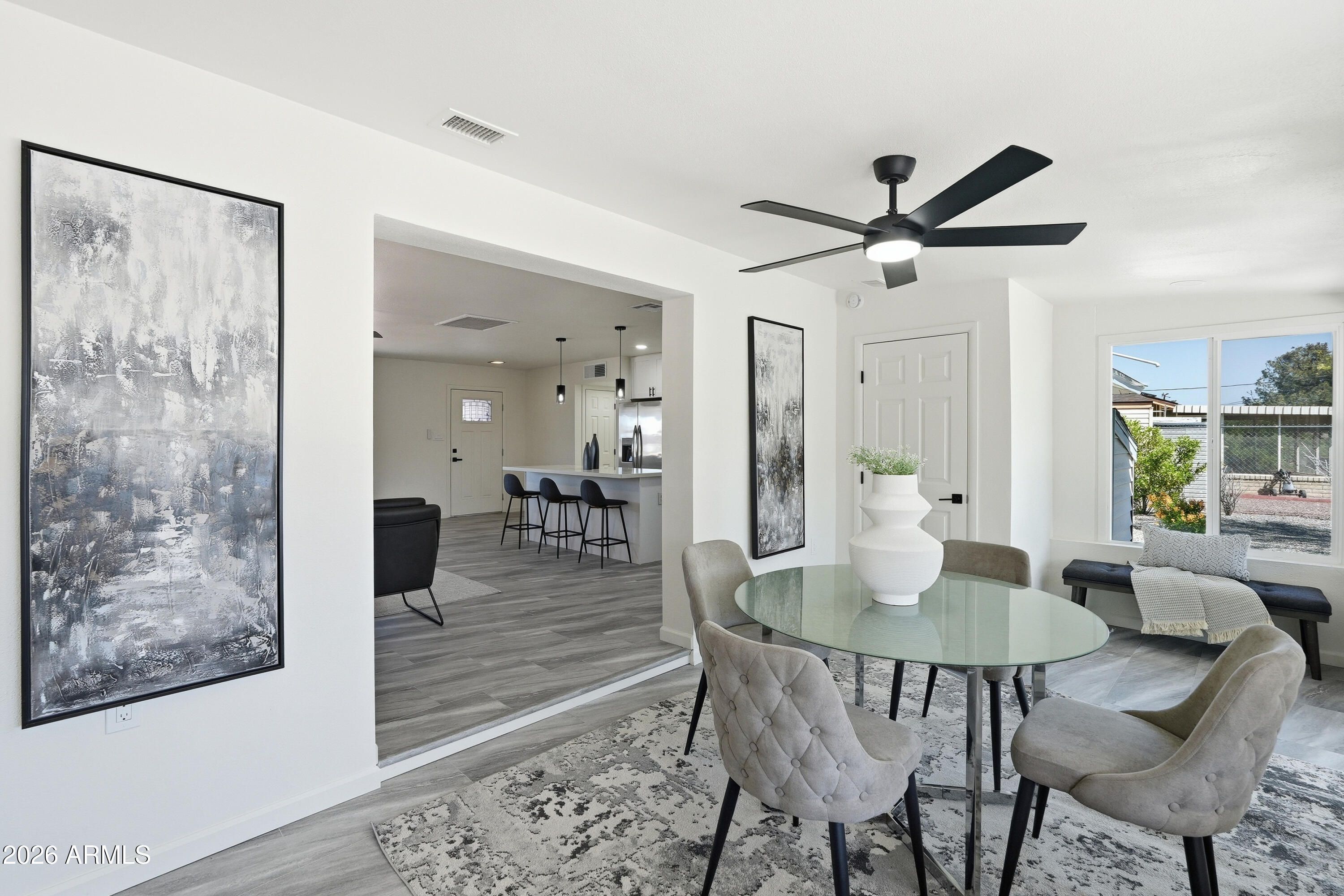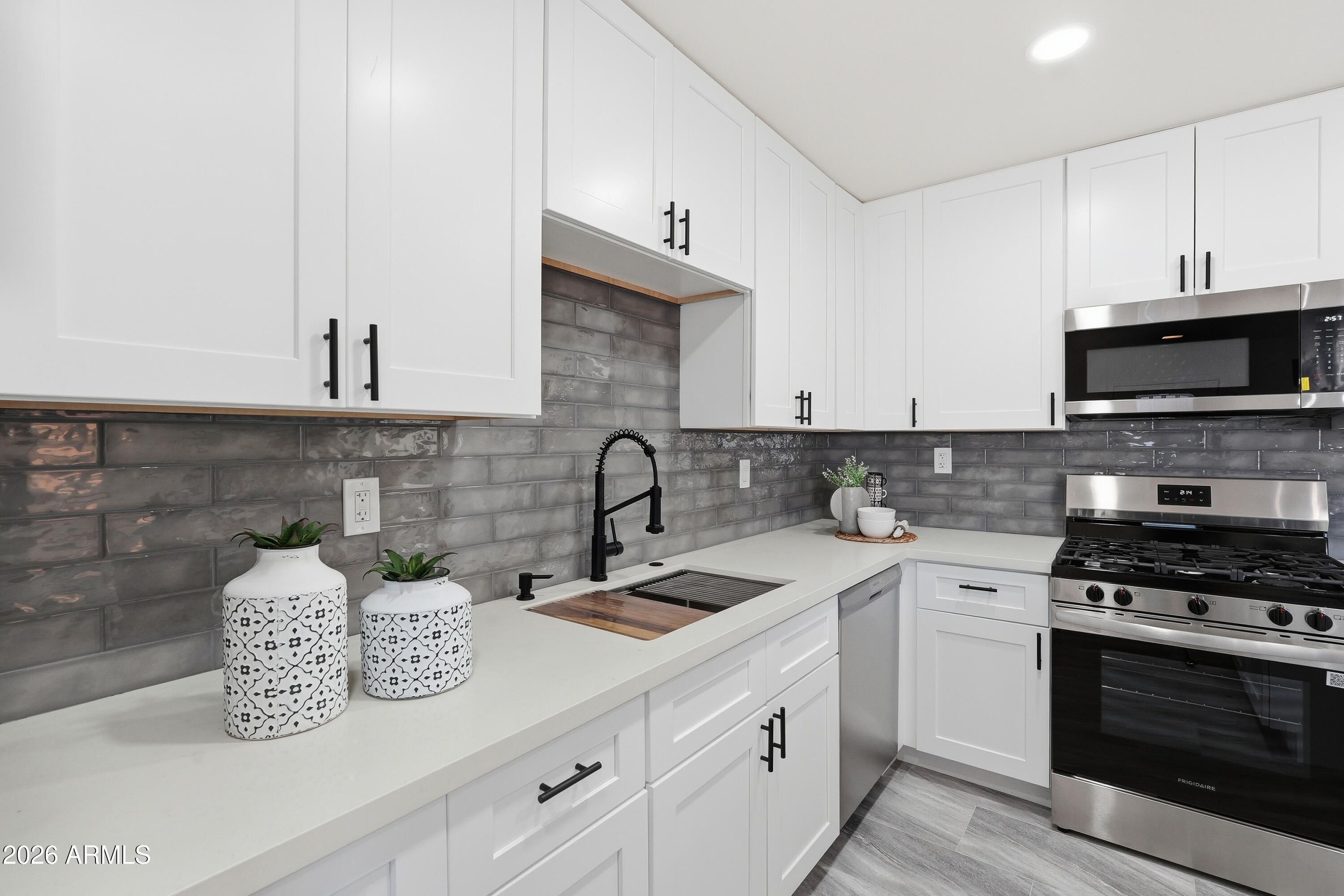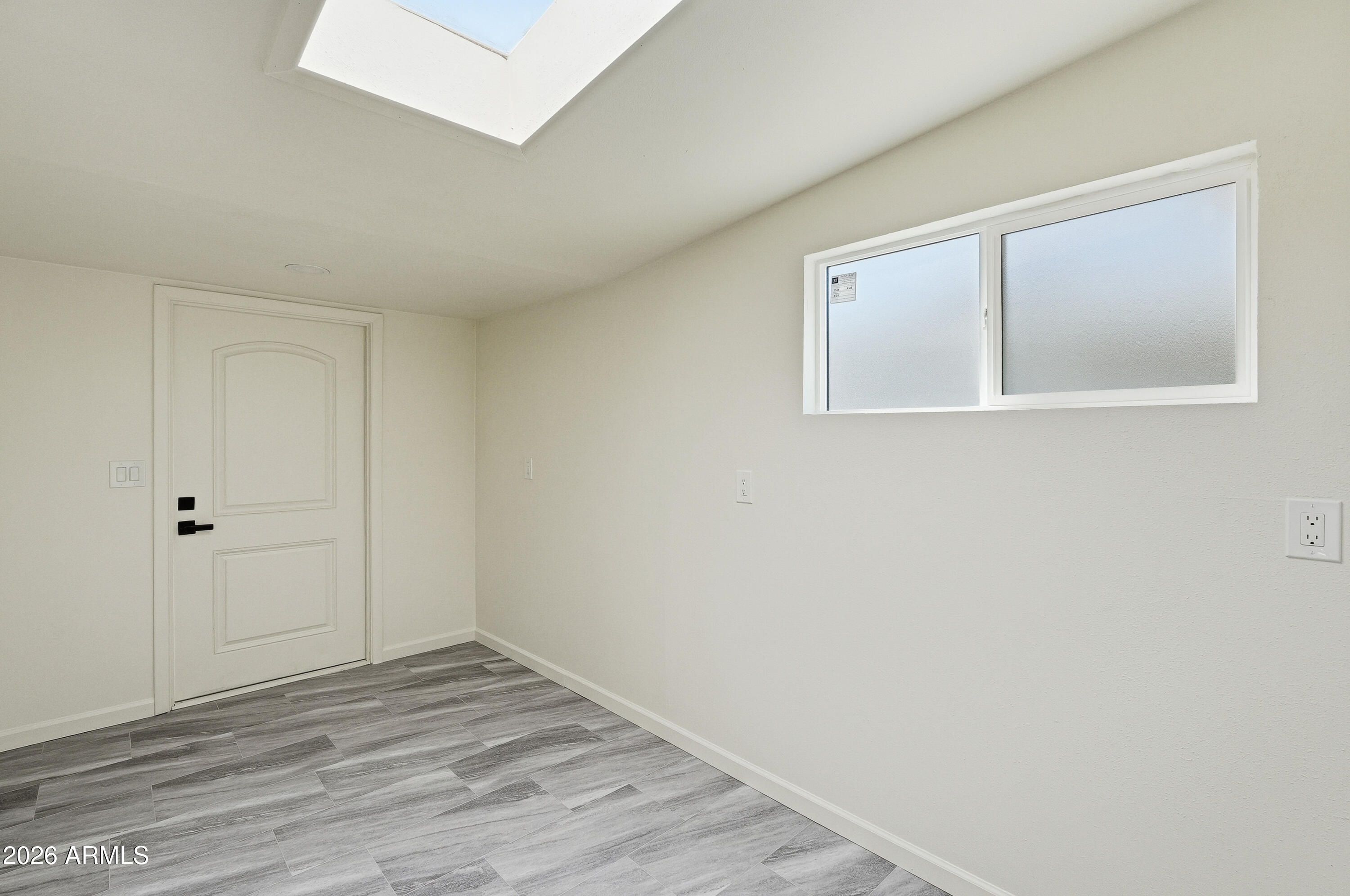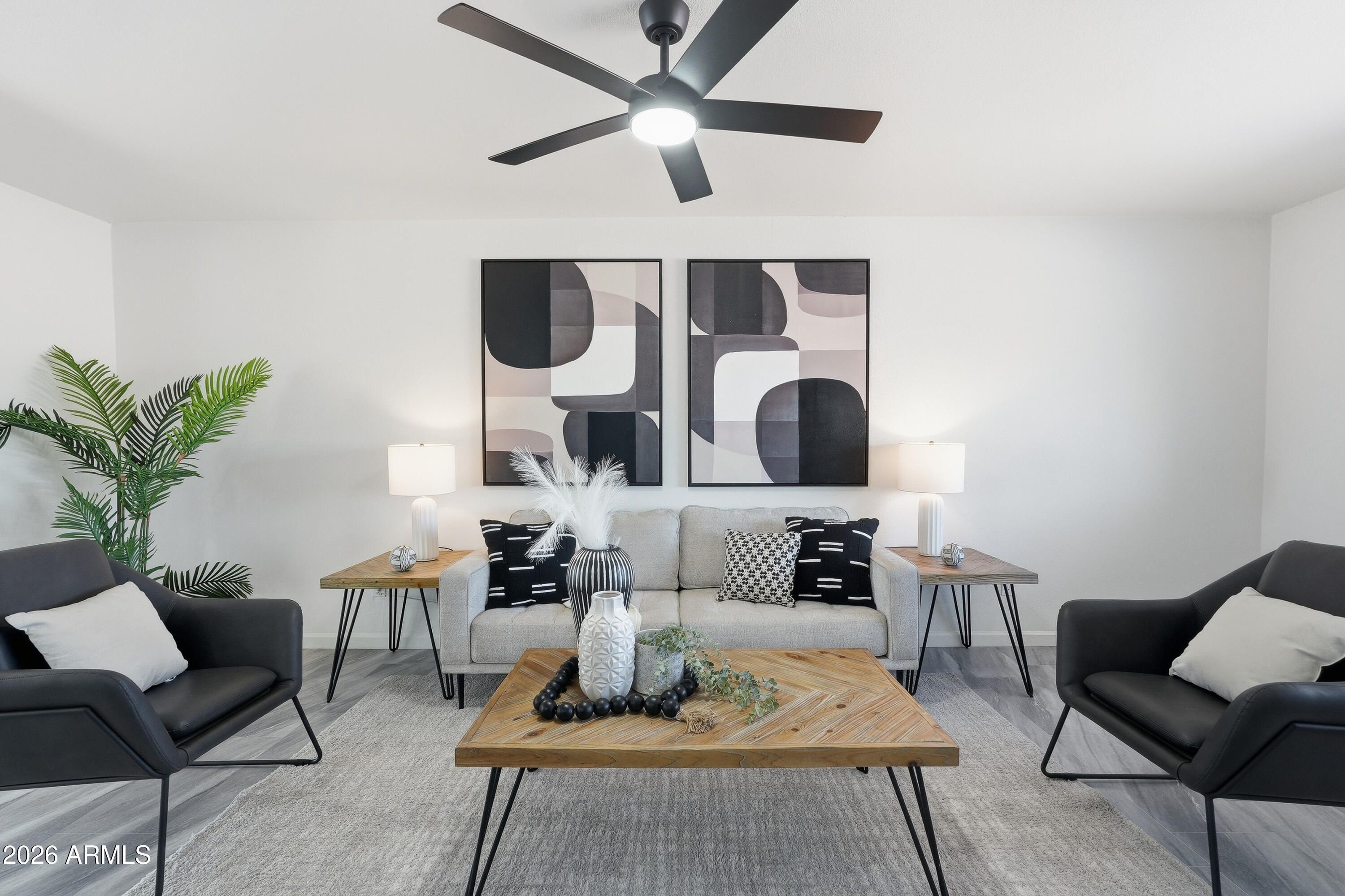Step into luxury with this 3-bed, 2-bath ranch transformed by a $135k full remodel. The heart of the home is a stunning kitchen featuring a 7-foot custom island, white shaker soft-close cabinets, quartz countertops, and a designer backsplash. Relax in the finished Arizona Room by the custom stacked stone gas fireplace. Enjoy ultimate peace of mind with a NEW 2026 roof, NEW HVAC, and NEW double-pane windows. Save big with the paid-for solar system. The master suite offers a rare zero-threshold shower. Includes a private fenced yard, bonus hobby room, and luxury vinyl flooring throughout. This smoke-free, pet-free gem is better than new!
