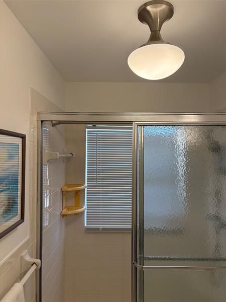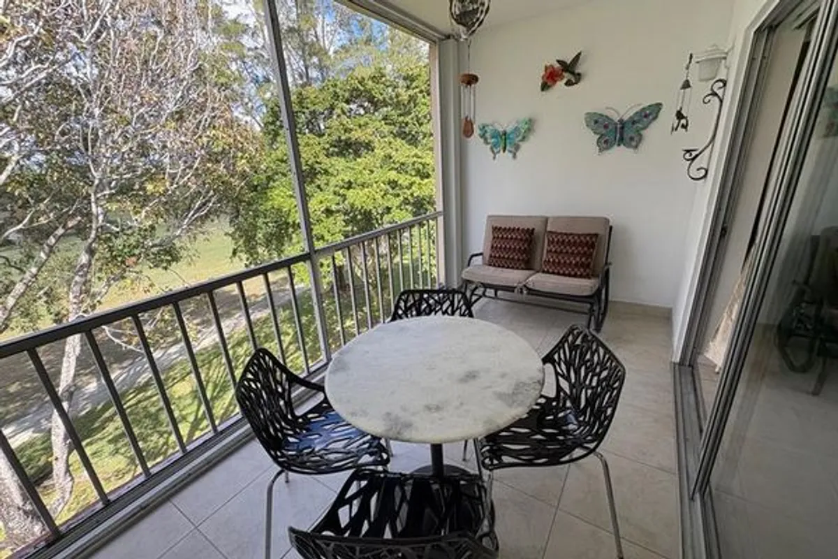 Beautiful spacious split plan 2 bedroom, 2 full bath condo with view of the golf course. Recessed lighting in the kitchen, new bathroom vanities & gorgeous lighting upgrades. 18 inch tile throughout the unit. Bedrooms have high end wood flooring. Hurricane impact windows, fantastic breezy screened porch. Many amenities; 2 heated pools, clubhouse, billiard room, gym & library. 4 golf ranges; Driving, Chipping, Putting and 18 hole course AND a golf clubhouse with an active and fun lounge and golf store. Cable included in condo fees. Pick up trucks and motor cycles allowed. 50 year certification passed. Can rent after one year. Unit building is walking distance to all of the golf activities. Credit score of 725 or above. 40K minimum income. Fantastic fun community! A youthful 55+ atmosphere.