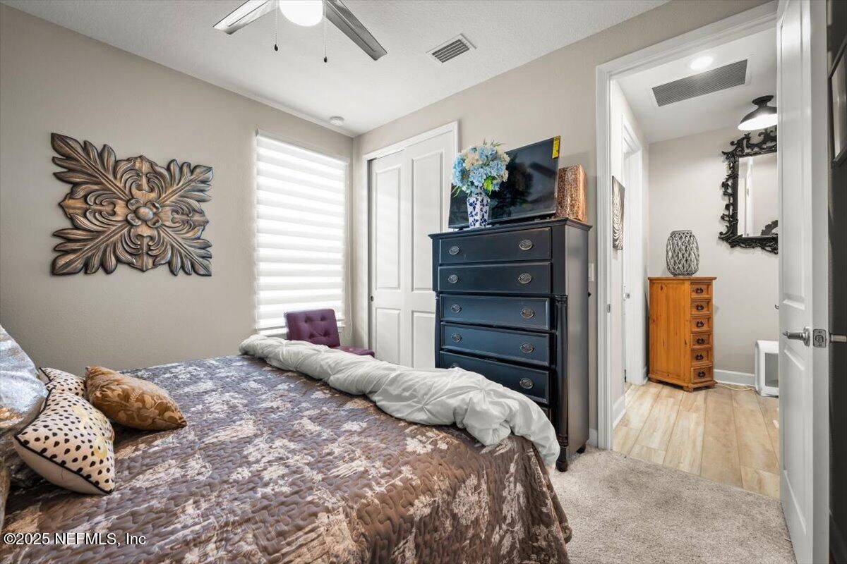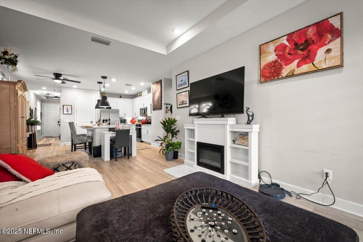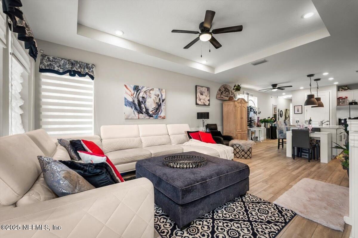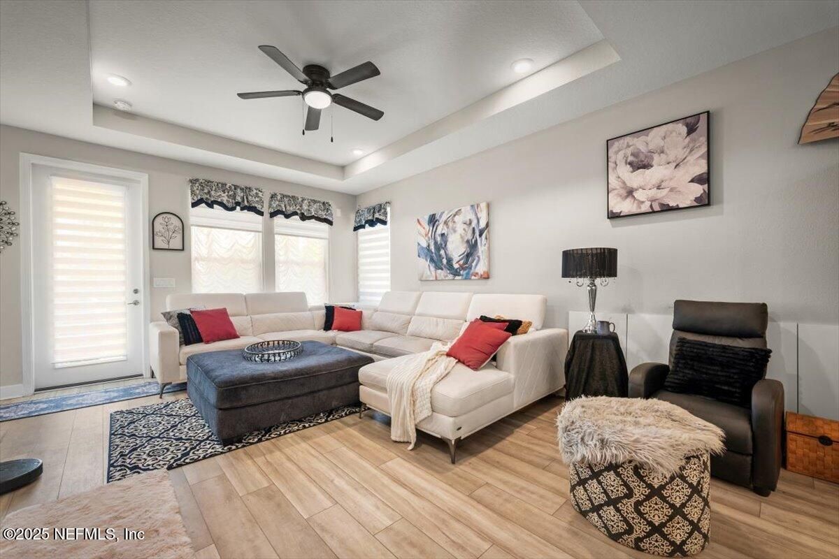 This priced-to-sell, move-in-ready home comes with a rare 2.375% assumable loan—just $2,265/month including taxes, insurance, and community fees. Located in a 55+ community, this 2-bedroom, 2-bath home with a private office features a designer kitchen with quartz countertops, designer lighting, tile backsplash, built-in wine rack, and upgraded cabinets with stainless steel gas cooktop, microwave, dishwasher, and refrigerator. Additional upgrades include premium flooring throughout, ceiling fans, gutters, and a luxury owner's suite with double vanity, CUSTOM TILE SHOWER GLASS ENCLOSED, and a designer custom closet. The bright open floor plan offers plenty of room to relax, while the fenced backyard with a lanai provides a perfect outdoor retreat. Residents enjoy exceptional community amenities: a 4,600-sf lakeside clubhouse with indoor/outdoor social spaces, fitness center with workout and weight rooms, two year-round resort-style pools and spa, six tournament-class pickleball courts, bocce ball, catering kitchen, Biergarten with pavilion, scenic trails and canoe launches, food-truck pavilion, plus all access to Trailmark's amenities. There's also an activities director organizing dances, dinners, and special events. Conveniently located minutes from shopping and dining, with easy drives to St. Augustine beaches, downtown St. Augustine, and Jacksonville.