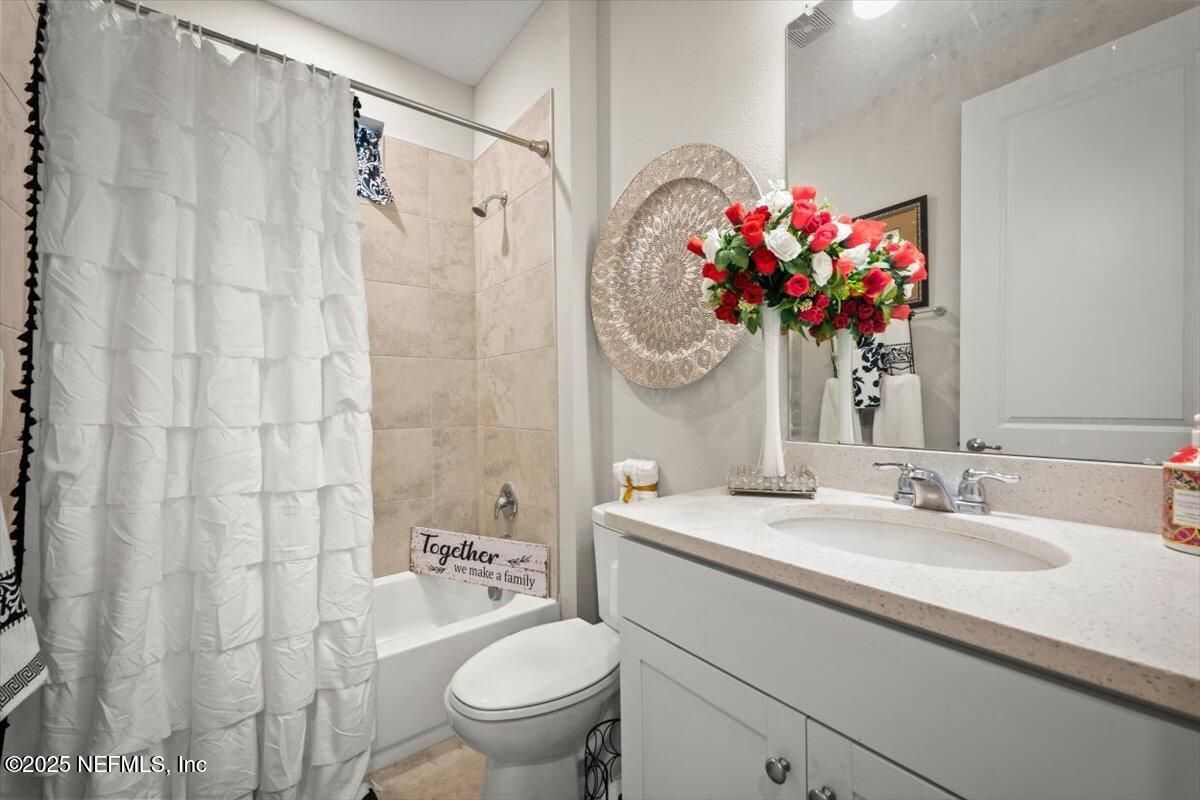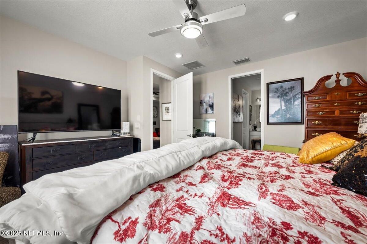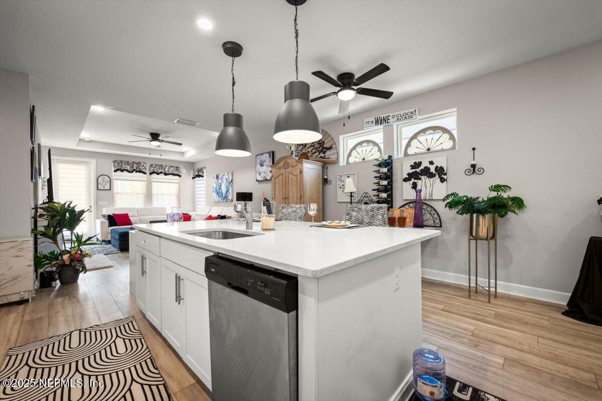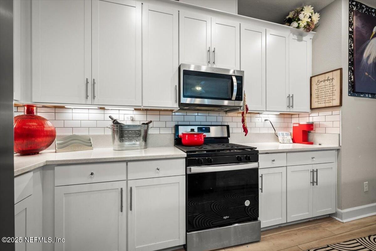 This priced-to-sell, move-in-ready home comes with a rare 2.375% assumable loan—just $2,265/month including taxes, insurance, and community fees. Located in a 55+ community, this 2-bedroom, 2-bath home with a private office features a designer kitchen with quartz countertops, designer lighting, tile backsplash, built-in wine rack, and upgraded cabinets with stainless steel gas cooktop, microwave, dishwasher, and refrigerator. Additional upgrades include premium flooring throughout, ceiling fans, gutters, and a luxury owner's suite with double vanity, CUSTOM TILE SHOWER GLASS ENCLOSED, and a designer custom closet. The bright open floor plan offers plenty of room to relax, while the fenced backyard with a lanai provides a perfect outdoor retreat. Residents enjoy exceptional community amenities: a 4,600-sf lakeside clubhouse with indoor/outdoor social spaces, fitness center with workout and weight rooms, two year-round resort-style pools and spa, six tournament-class pickleball courts, bocce ball, catering kitchen, Biergarten with pavilion, scenic trails and canoe launches, food-truck pavilion, plus all access to Trailmark's amenities. There's also an activities director organizing dances, dinners, and special events. Conveniently located minutes from shopping and dining, with easy drives to St. Augustine beaches, downtown St. Augustine, and Jacksonville.