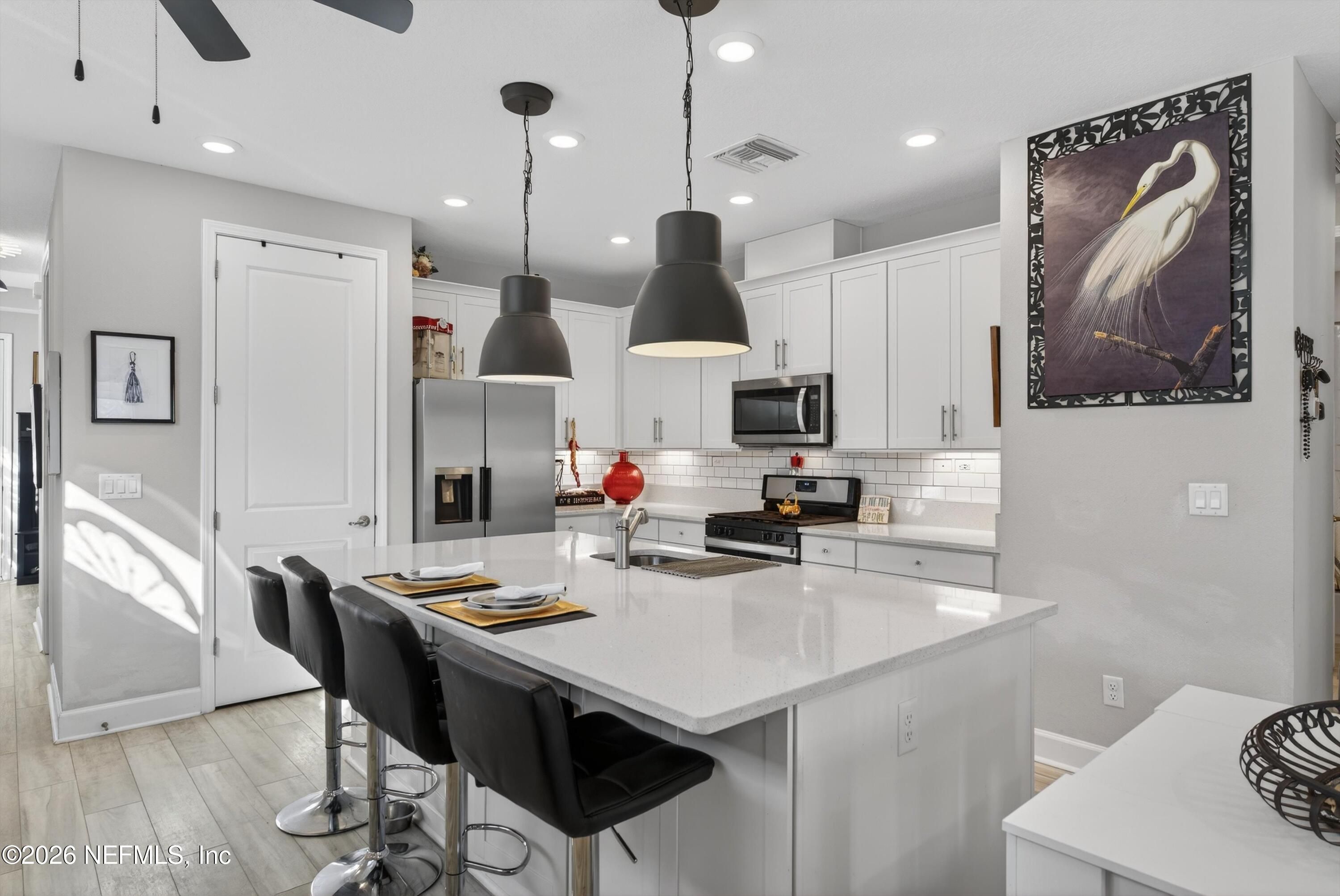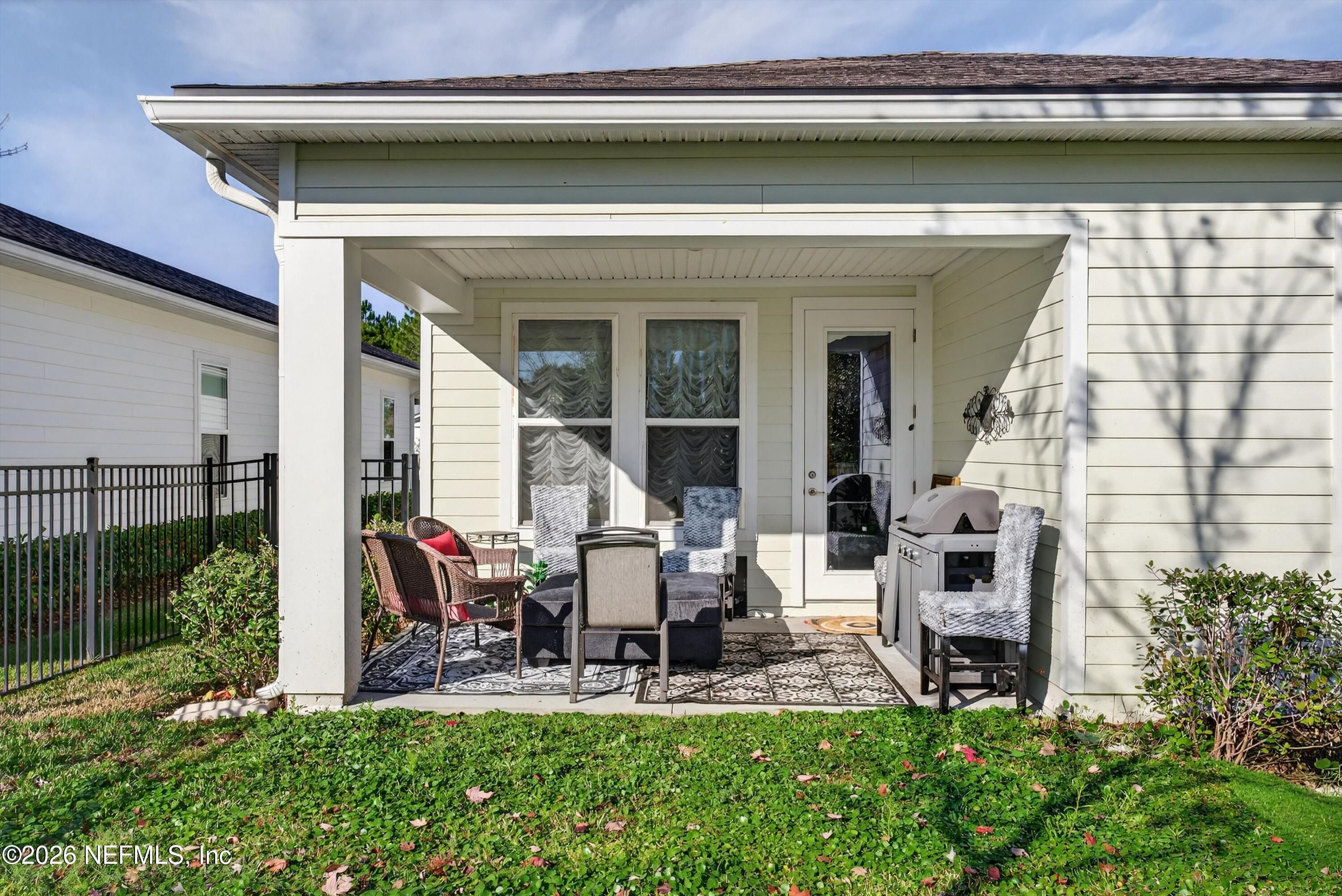 Resort Living!!! This move-in-ready home offers an exceptional opportunity for value, 2.375% assumable loan with a monthly payment of just $2,265 (inclusive of taxes, insurance, and community fees). $800 transfer fee to assume! Located within a premier 55+ community, this 2-bedroom, 2-bathroom home includes a small private office & a open-concept floor plan. The chef-inspired kitchen is appointed with quartz countertops, designer lighting, tile backsplash, & upgraded cabinetry, Premium stainless steel appliances include a gas cooktop, microwave, dishwasher, & refrigerator. High-end finishes extend throughout the home, from premium flooring & designer ceiling fans to a luxury owner's suite. Primary bath features a double vanity & a glass-enclosed tile shower, complemented by a professionally designed custom closet. The exterior offers a fenced backyard & a private lanai, perfect for outdoor relaxation. Residents enjoy an amenity rich lifestyle centered around ...open More an amenity-rich lifestyle centered around a 4,600-square-foot lakeside clubhouse, featuring: Fitness & Recreation: A state-of-the-art fitness center, two resort-style HEATED pools and spa, six tournament-class pickleball courts, and bocce ball. Social & Leisure: A Biergarten with pavilion, catering kitchen, food-truck pavilion, and a full-time activities director hosting dinners, dances, and social events. Nature: Scenic walking trails, bike trails, canoe launches, and full access to the broader Trailmark community amenities. Ideally situated just minutes from the convenitent local shopping and fantastic dining, this home provides convenient access to downtown St. Augustine, area Drive-on beaches, Jacksonville & Jax Beach. **Some items are available to purchase separately ***