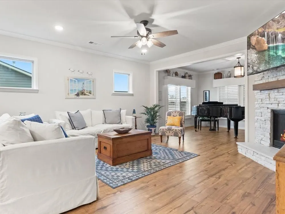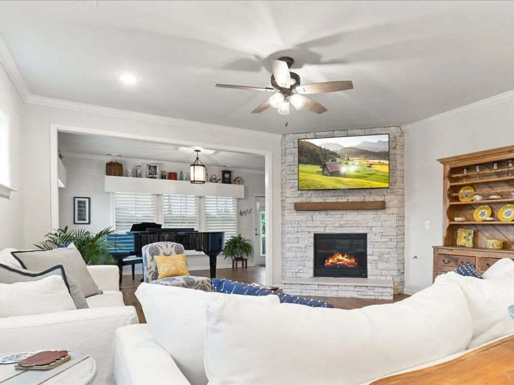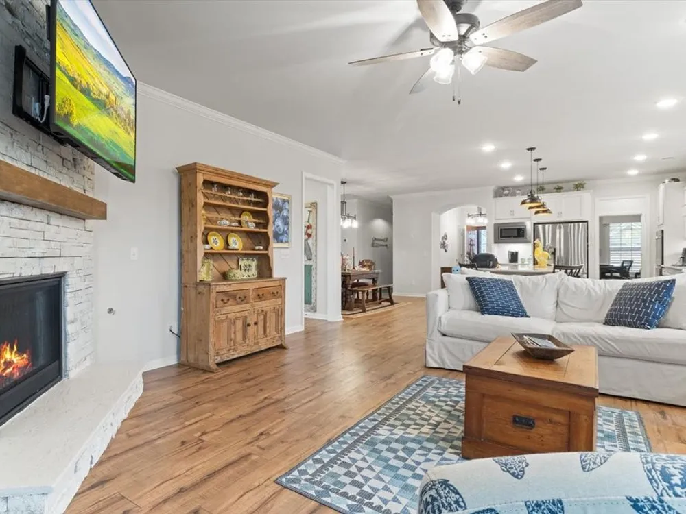 Welcome to 1055 Sumner Grove, where upscale design meets effortless living in the heart of Spring Hill’s most sought-after 55+ community—Southern Springs by Del Webb. This thoughtfully designed home blends elegance, comfort, and convenience with a layout that’s as functional as it is beautiful, surrounded by world-class amenities in a vibrant, active adult neighborhood. From the moment you arrive, the oversized front porch invites you to slow down and enjoy the charm of Tennessee mornings with a cup of coffee or an evening sunset with a glass of wine. Every inch of this residence speaks to refined taste and luxurious upgrades, setting it apart from the ordinary.Step inside and discover luxury laminate flooring that flows seamlessly throughout the home, offering both timeless beauty and easy maintenance. The open-concept floor plan creates an effortless flow between the living, dining, and kitchen areas, perfect for entertaining guests or enjoying a quiet evening at home. At the heart of the home, the chef’s kitchen is a true showstopper. Featuring an oversized island with seating and storage, stainless steel appliances, gas cooktop, and sleek finishes, this space was designed to impress. Rich cabinetry, modern hardware, and custom plantation shutters add a sophisticated touch, while ample natural light floods the space, creating warmth and brightness throughout. The spacious living area offers the perfect setting for gatherings large or small, anchored by a cozy gas fireplace that adds ambiance and charm during cooler months. Whether you're hosting holiday celebrations or enjoying a peaceful evening, this home adapts beautifully to your lifestyle.Step outside into your own private sanctuary with an enclosed patio—ideal for year-round enjoyment—and an additional open-air patio, perfect for dining al fresco or basking in the sun with a good book. The outdoor living spaces are both functional and serene, with privacy and low-maintenance landscaping .
