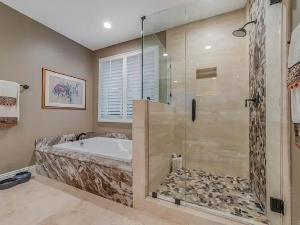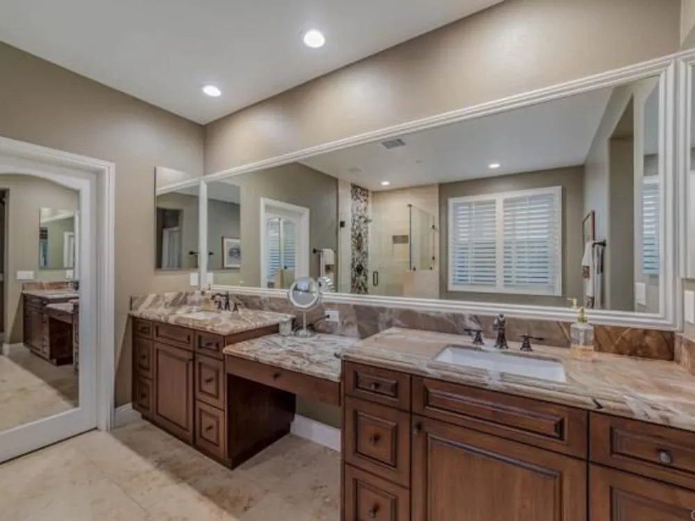 LUXURIOUS SINGLE-Story HOME THAT WAS COMPLETELY GUTTED FROM TOP TO BOTTOM. GATE GUARDED, IN HIDDEN MEADOWS, and finished in early 2024. This was supposed to be the forever home, so everything was done top-notch AND CUSTOM. Gorgeous views, golf course frontage, single-loaded street, and this home has a huge lot where turf was installed in front and back, and all plants on drips, so from a landscape point of view, your water bill should be maintainable. With over $700,000 put into this home, the items done to this 2005 home are: BRAND NEW ROOF ALUMAWOOD PATIO COVER (30'), ALL NEW BATHROOMS WITH CUSTOM CABINETS, SHOWERS AND BATHS, NEW LAUNDRY CABINETS & SINK, HARDWOOD HICKORY FLOORS THROUGHOUT, CUSTOM WOOD SHUTTERS, ALL NEW APPLIANCES TO INCLUDE SUB-ZERO AND DÉCOR, SECURITY SYSTEM WITH CAMERAS IN FRONT, CUSTOM OFFICE CABINETS, CANNED LED LIGHTING ADDED WHERE THERE WAS’NT ANY AS WELL AS ART LIGHTING ADDED, CUSTOM CAST STONE FIREPLACE SURROUNDS (3), NEW HEATING & AIR (HEAT PUMP SYSTEM SO AS NOT TO DRAW FROM PROPANE), PEBBLETECH POOL, NEW VINYL FENCING ON THE EAST SIDE AND BOTH FRONT GATES, POOL OVERFLOW ADDED SO YOU DON'T WORRY DURING THE WINTER RAIN, NEW TURF, NEW WINDOWS THROUGHOUT (ANDERSON), CUSTOM CABINETRY WITH DOVETAIL FINISH, PULLOUTS, AND AUTOMATIC CLOSE THROUGHOUT, GORGEOUS QUARTZITE, CUSTOM PAINT INSIDE AND OUT, NEW GARAGE DOOR AND OPENER, NEW CUSTOM CABINETS & OVERHEAD STORAGE ADDED IN GARAGE, SOFT WATER SYSTEM, OWNED SOLAR SYSTEM, SIDE CONCRETE WALKWAY WITH TURF ADDED (WAS DIRT FOR 18 YEARS), NEW BASEBOARDS THROUGHOUT, NEW CUSTOM FRONT DOOR, ARCHES ADDED IN THE LIVING RM & KITCHEN FOR DIVISION OF ROOMS, CEILING FANS THROUGHOUT, NEW LANDSCAPING, And there must be more......STUNNING HOME TOUTED AS THE BEST LOOKING HOME IN THE NEIGHBORHOOD. If this is the type of home you are looking for (single story, pool, 3 bdrm plus an office, 3 car garage, view, and move-in ready) this is a must-see. QUALIFIED BUYERS ONLY PLEASE looking for this type of home.