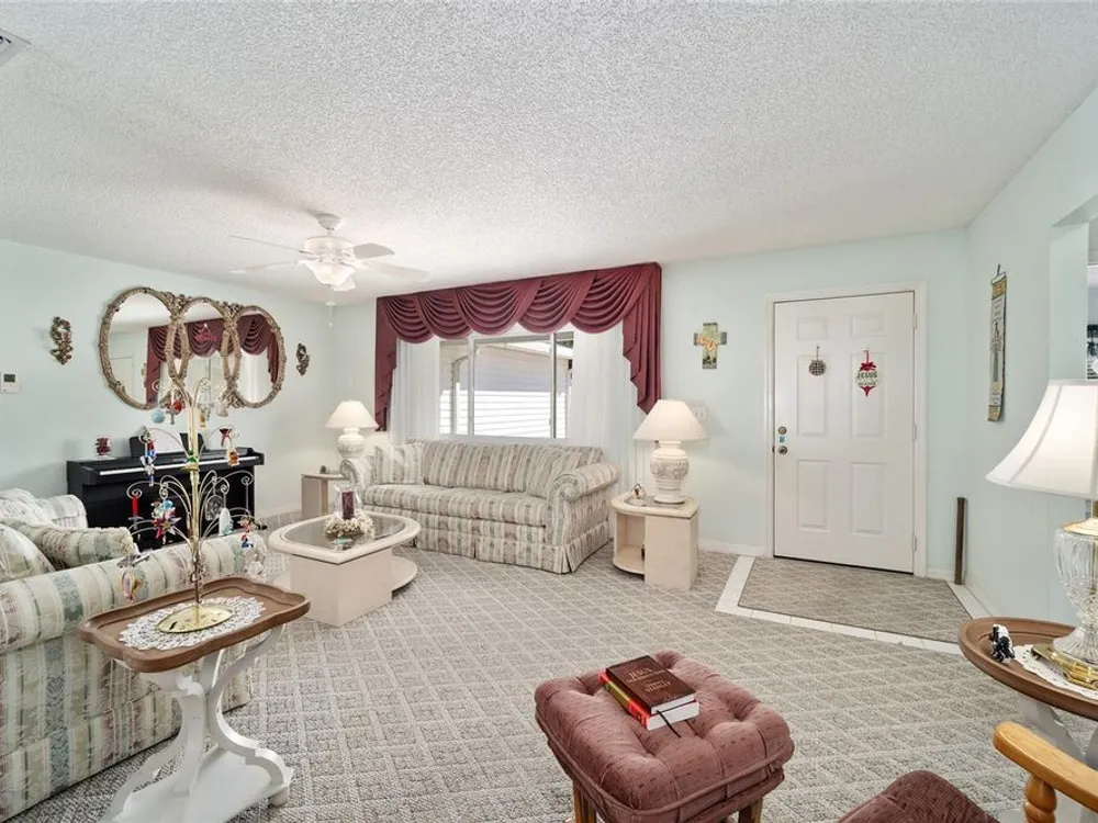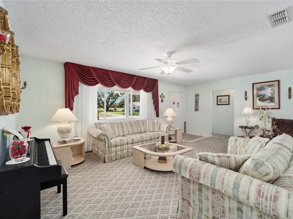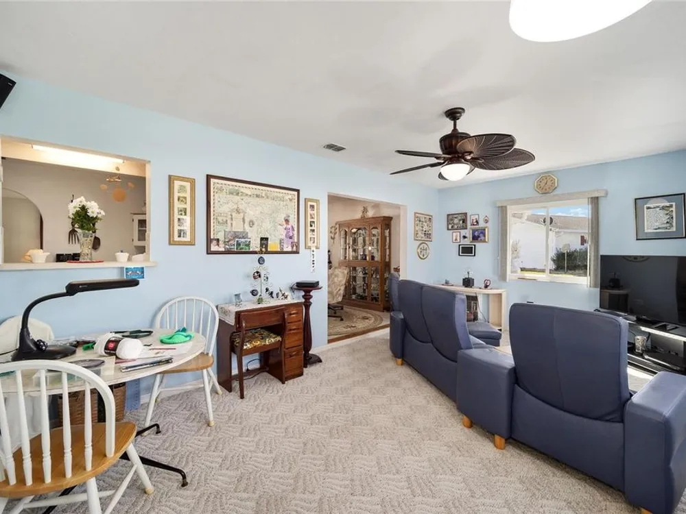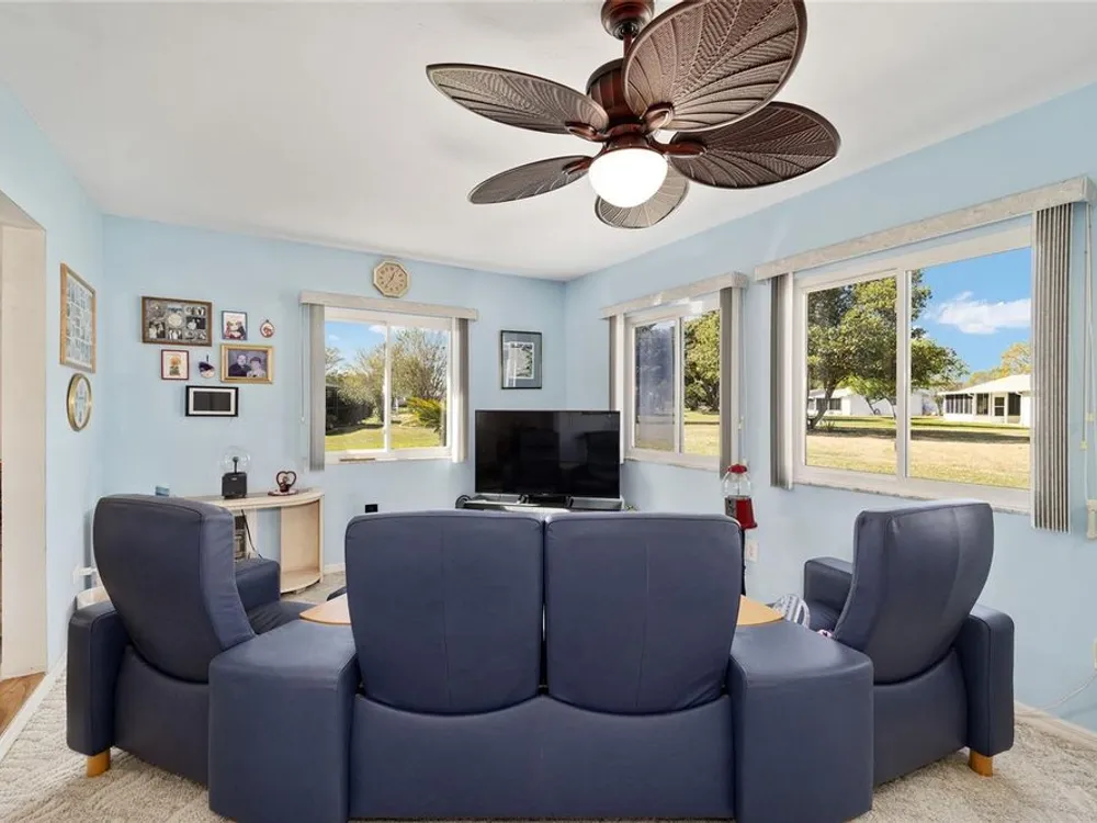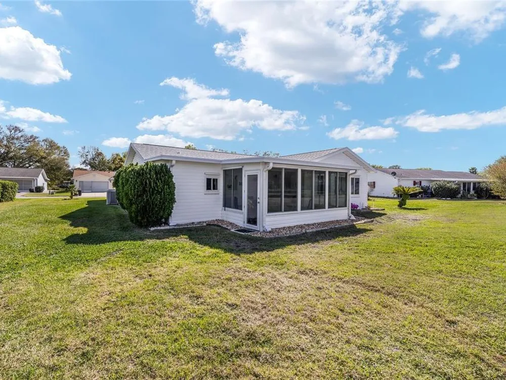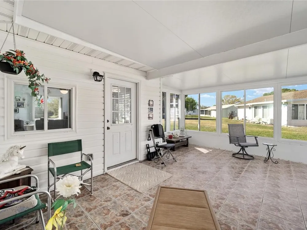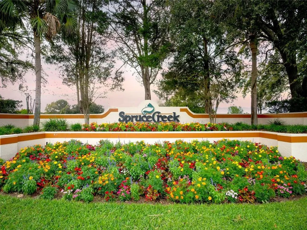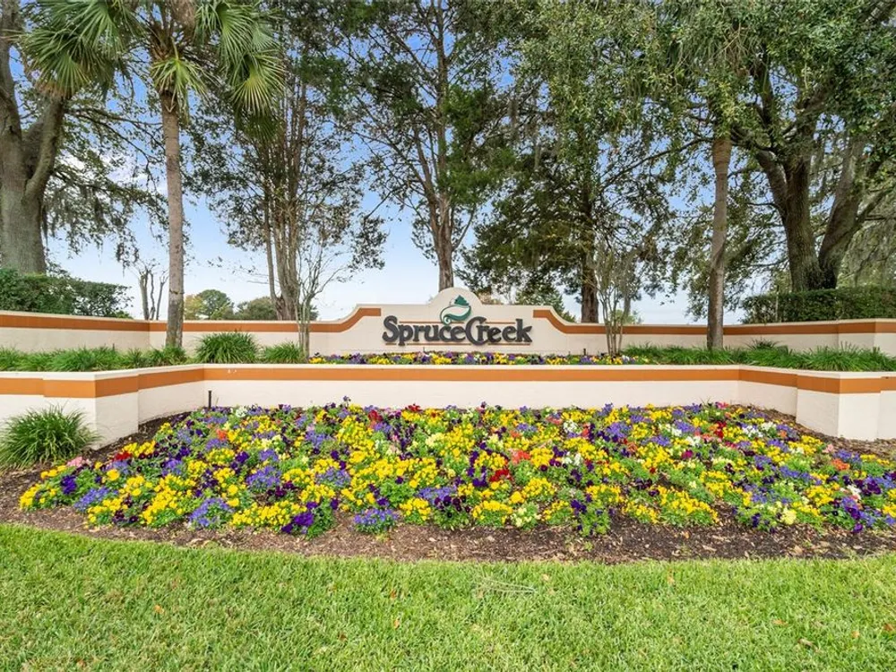 Charming and cozy home located in Spruce Creek South, a 55+ gated golf course community just north of The Villages! This inviting split-bedroom floor plan features a spacious den, perfect for an office or additional living space, plus a large enclosed Florida room to enjoy year-round. A bonus golf cart garage provides ample storage and could easily be converted into a workshop for your hobbies. Light and bright throughout, this home boasts a generous master suite with a large walk-in closet for added convenience. Ideal for those seeking comfort and a relaxed lifestyle in a vibrant, active community! Reverse Osmosis water treatment system, 2023 ROOF, 2022 HOT WATER HEATER, 2020 ELECTRIC PANEL, 2016 HVAC, 2025 Side door for garage has been replaced, as well as the control panel for irrigation.
