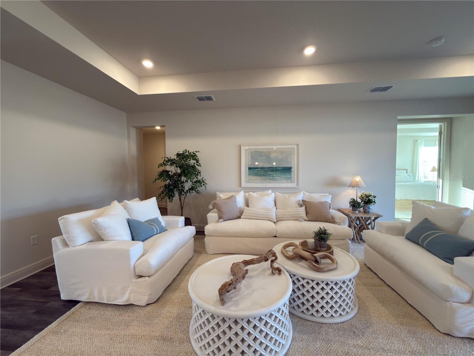 - Accessibility Features, High Ceilings, Kitchen/Family Room Combo, Living/Dining Room, Open Floorplan, Main Level Primary, Smart Home, Solid Surface Counters, Solid-Wood Cabinets, Split Bedrooms, Stone Counters, Thermostat, Tray Ceiling(s), Walk-In Closet(s), Window Treatments