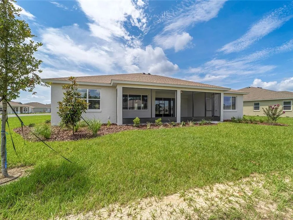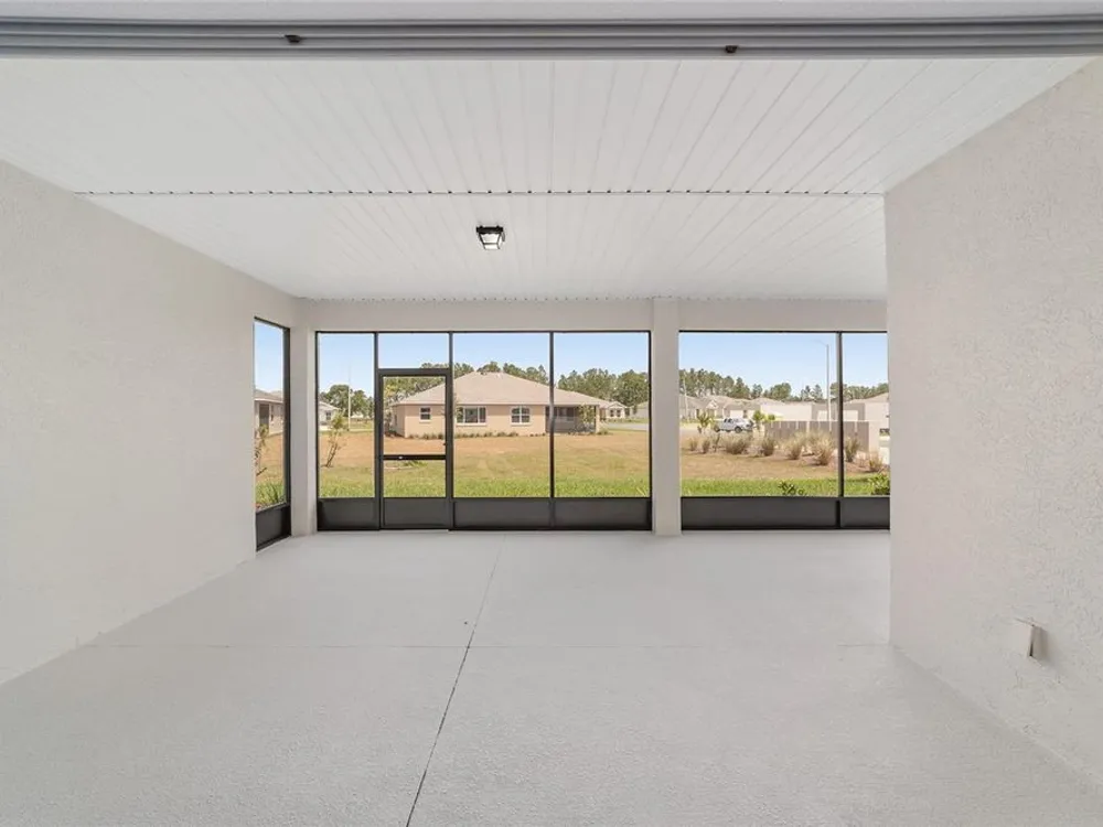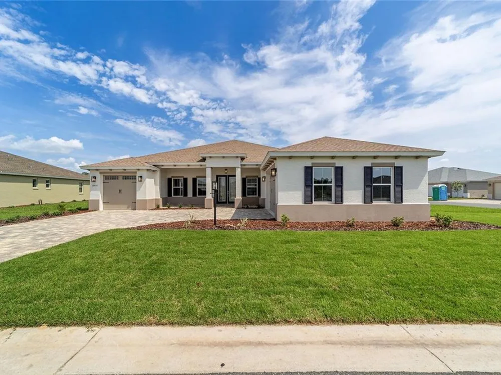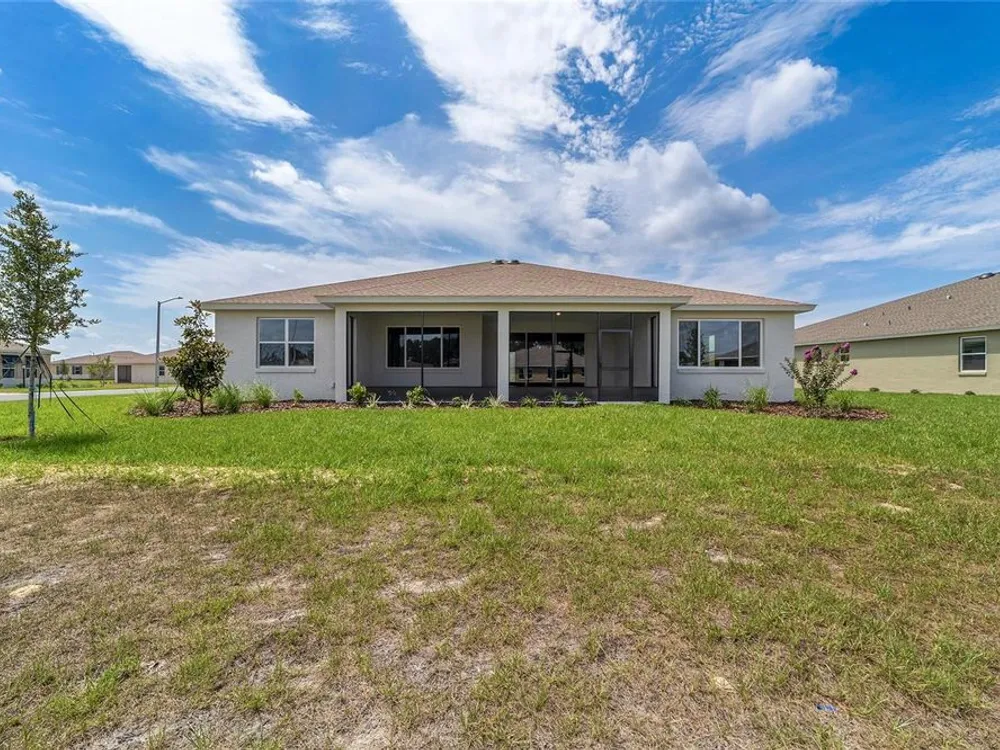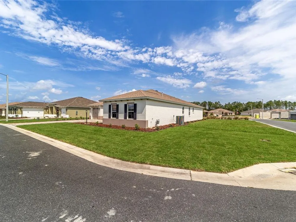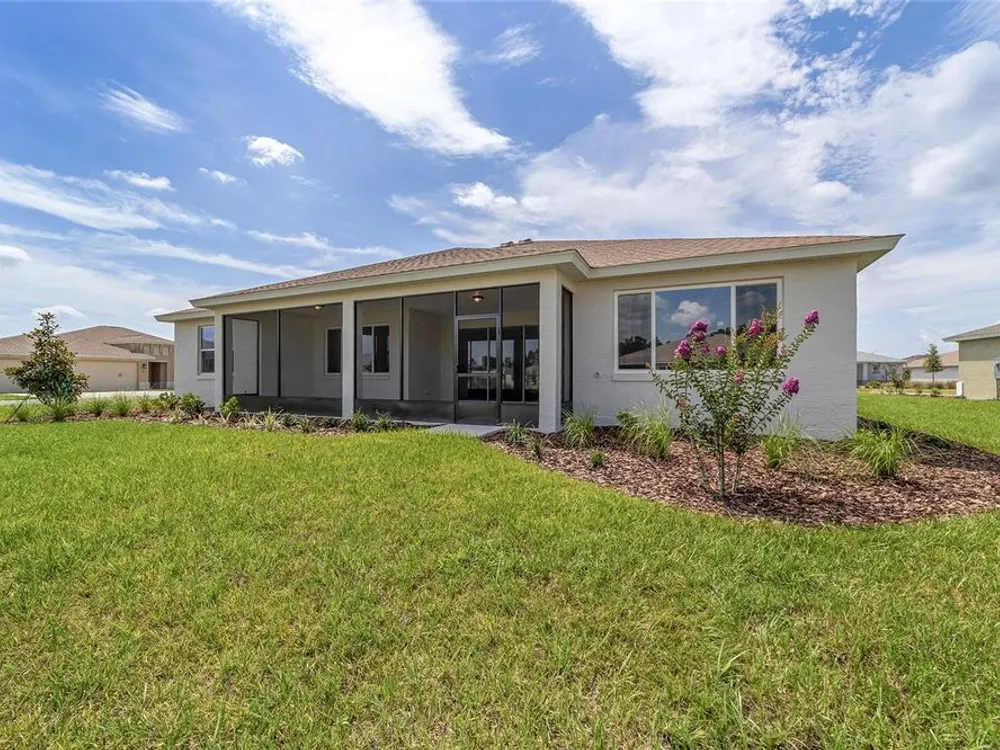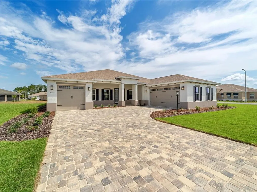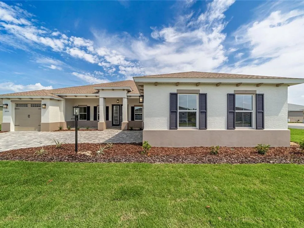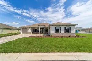Come see this stunning new construction Aberdeen home in the highly sought-after LongLeaf Ridge neighborhood of On Top of the World. This luxurious residence offers three bedrooms, three full bathrooms, a versatile flex room, and a split three-car garage, providing ample space to suit all your needs. From the moment you arrive, you're welcomed by elegant double entry doors and a paver driveway leading to a thoughtfully designed interior. Tray ceilings and tile flooring run throughout, enhancing the open floor plan that seamlessly connects the great room and gourmet kitchen. Sunlight pours in through expansive windows, including a three-panel sliding glass door that offers breathtaking views. The gourmet kitchen is a chef’s dream, featuring premium white staggered cabinetry with crown molding, quartz countertops, a spacious island, stainless steel appliances, a built-in oven and microwave, a cooktop with a sleek hood, a stylish tile backsplash, and a walk-in pantry. The master suite is equally impressive, boasting double walk-in closets and a spa-like en suite bathroom with a zero-entry tiled shower, a built-in bench, and dual vanities with quartz countertops. This home also offers a second and third bedroom, along with two additional bathrooms, ensuring comfort and privacy for guests. The split floor plan places the guest rooms on the opposite side of the home for added seclusion. The spacious screened lanai is ideal for enjoying the outdoors and embracing Florida living at its finest. Located in Ocala’s premier 55+ active adult community, On Top of the World offers an array of amenities, including golf cart access to two shopping centers. Don’t miss the opportunity to make this spectacular home yours—schedule a showing today!