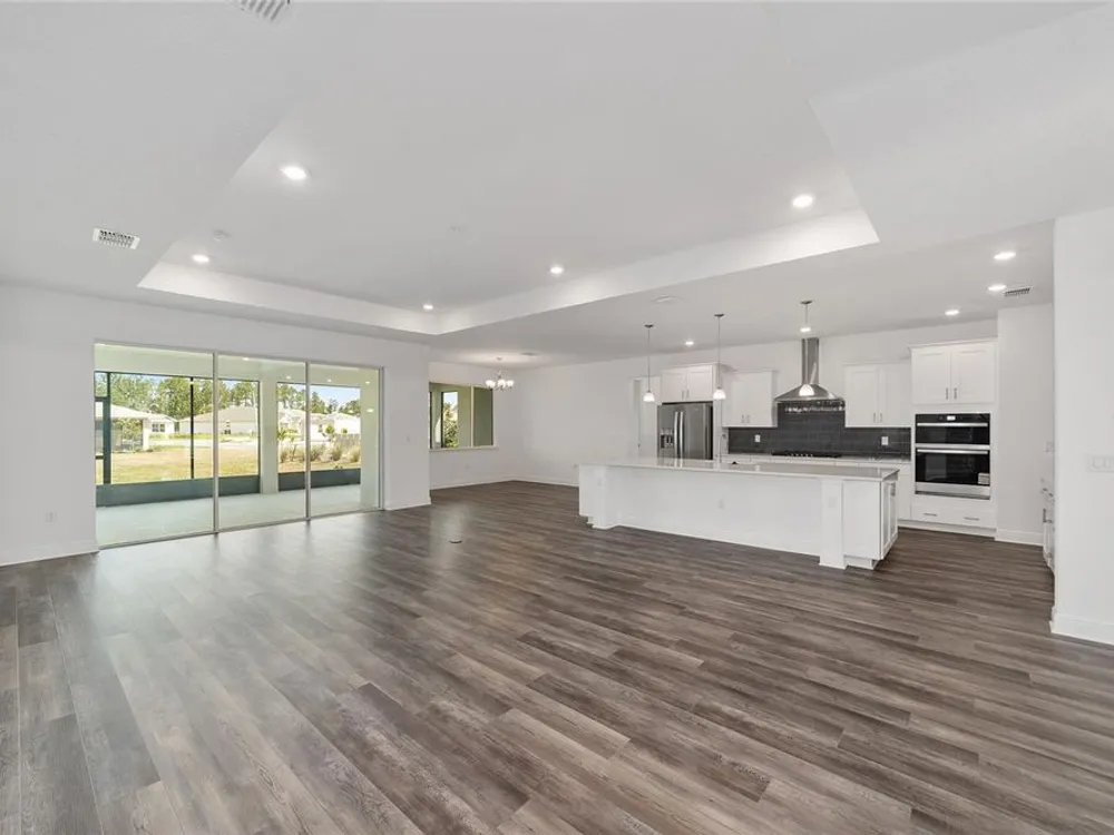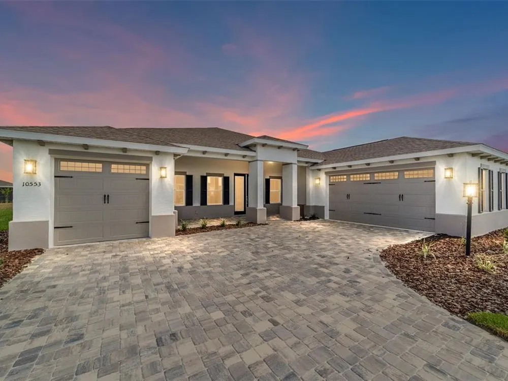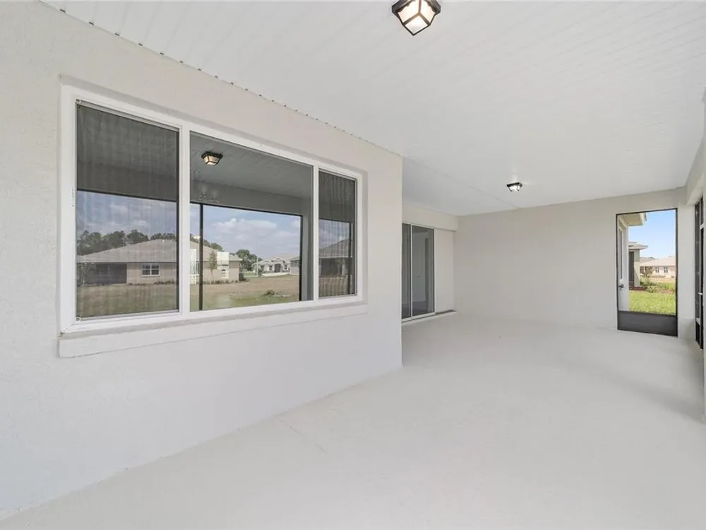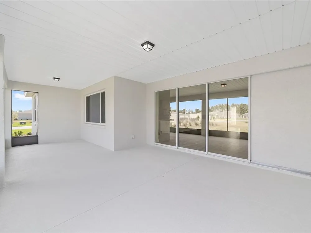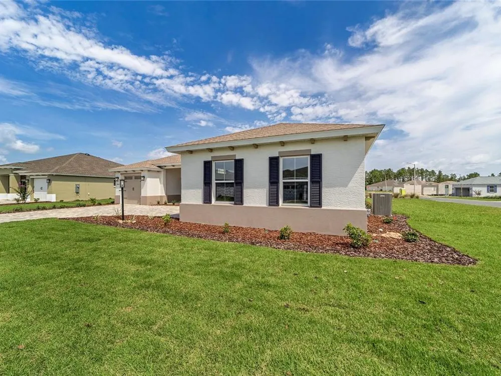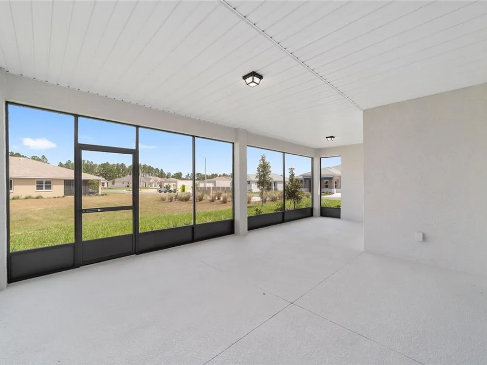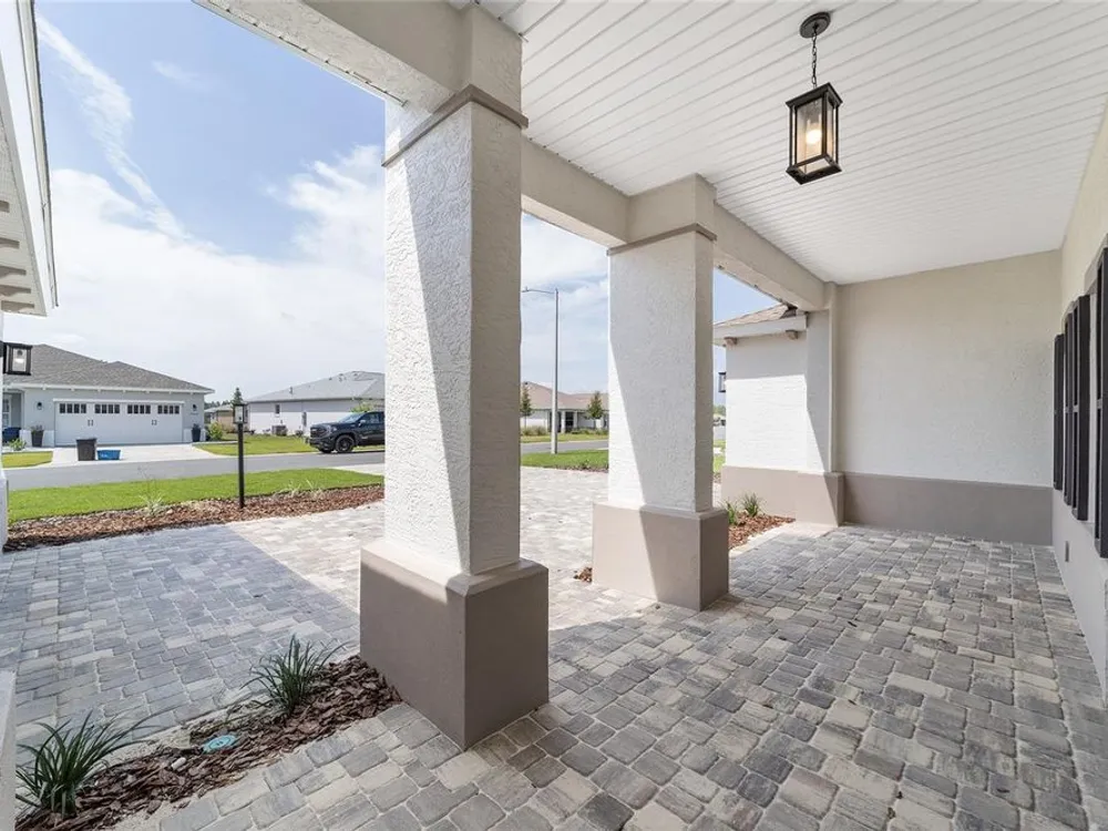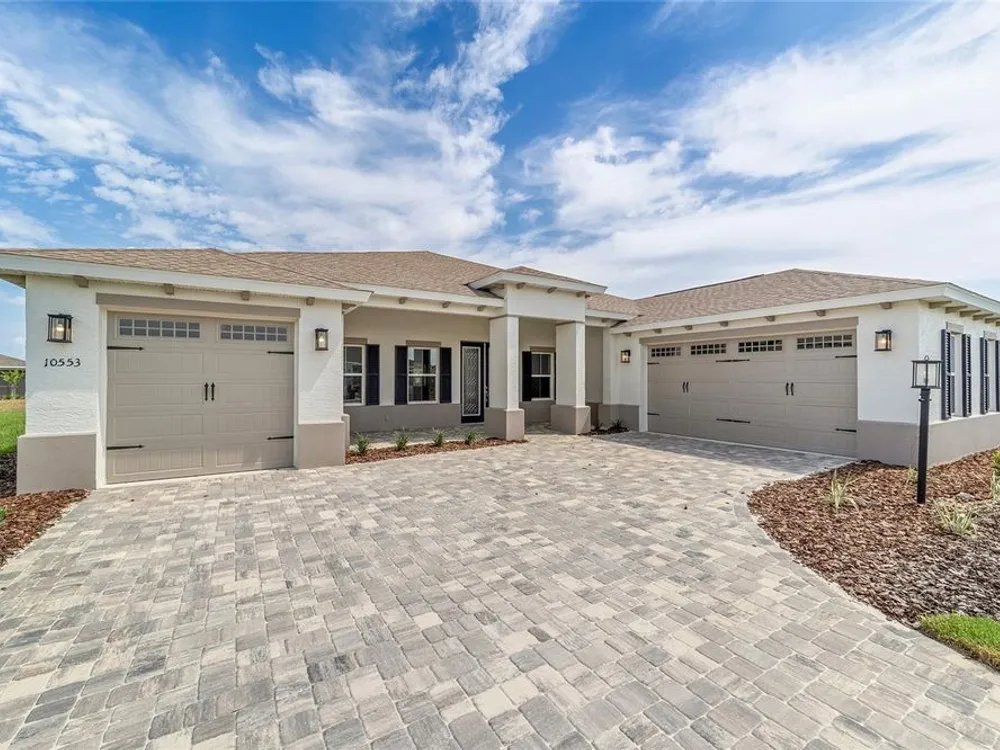 Come see this stunning new construction Aberdeen home in the highly sought-after LongLeaf Ridge neighborhood of On Top of the World. This luxurious residence offers three bedrooms, three full bathrooms, a versatile flex room, and a split three-car garage, providing ample space to suit all your needs. From the moment you arrive, you're welcomed by elegant double entry doors and a paver driveway leading to a thoughtfully designed interior. Tray ceilings and tile flooring run throughout, enhancing the open floor plan that seamlessly connects the great room and gourmet kitchen. Sunlight pours in through expansive windows, including a three-panel sliding glass door that offers breathtaking views. The gourmet kitchen is a chef’s dream, featuring premium white staggered cabinetry with crown molding, quartz countertops, a spacious island, stainless steel appliances, a built-in oven and microwave, a cooktop with a sleek hood, a stylish tile backsplash, and a walk-in pantry. The master suite is equally impressive, boasting double walk-in closets and a spa-like en suite bathroom with a zero-entry tiled shower, a built-in bench, and dual vanities with quartz countertops. This home also offers a second and third bedroom, along with two additional bathrooms, ensuring comfort and privacy for guests. The split floor plan places the guest rooms on the opposite side of the home for added seclusion. The spacious screened lanai is ideal for enjoying the outdoors and embracing Florida living at its finest. Located in Ocala’s premier 55+ active adult community, On Top of the World offers an array of amenities, including golf cart access to two shopping centers. Don’t miss the opportunity to make this spectacular home yours—schedule a showing today!