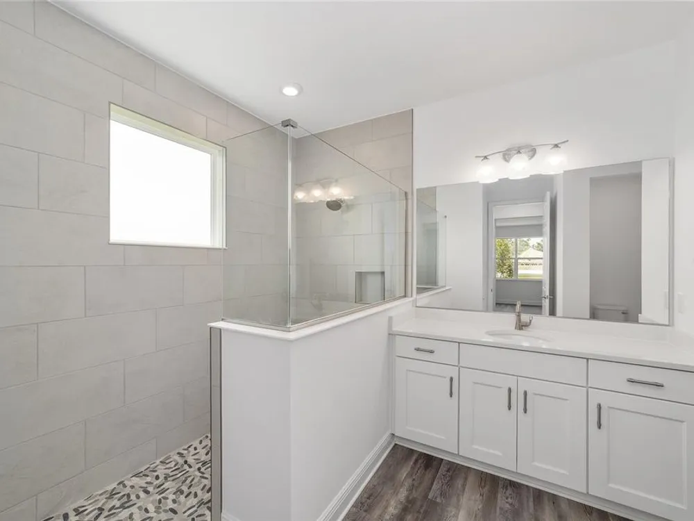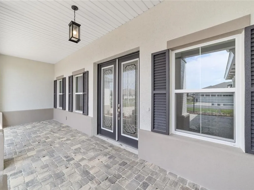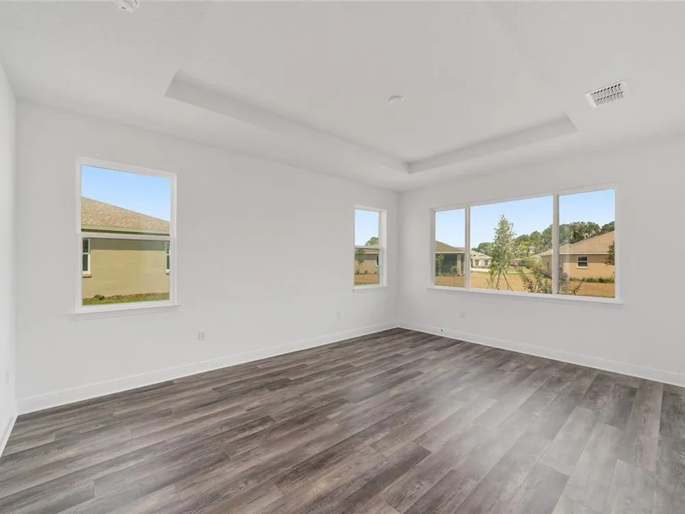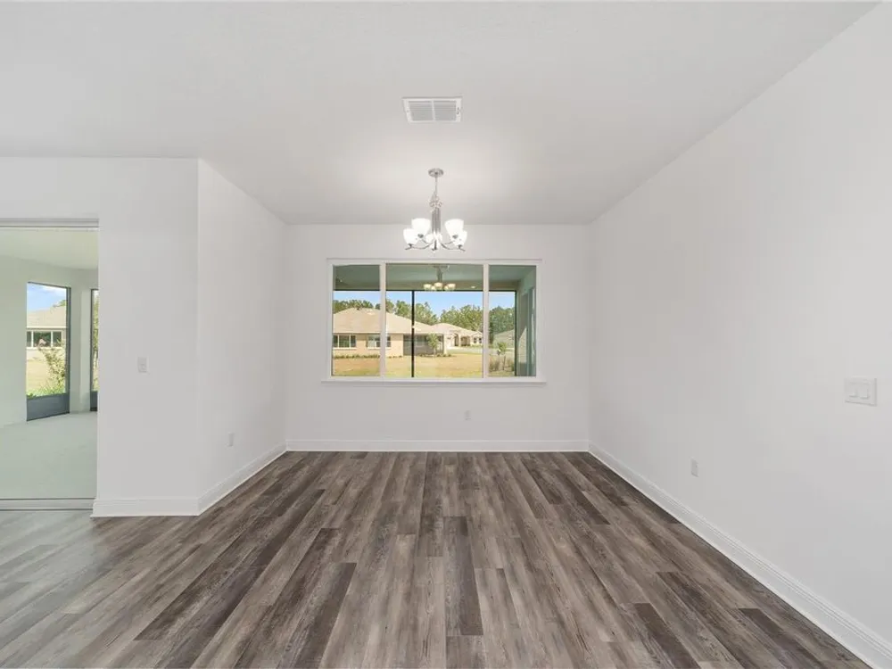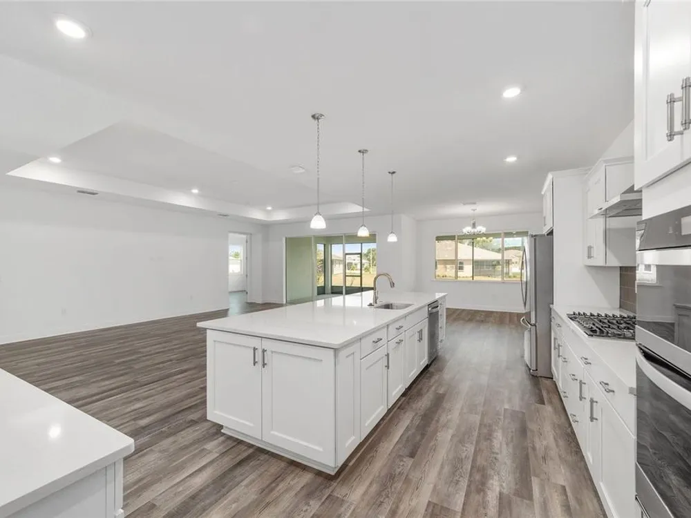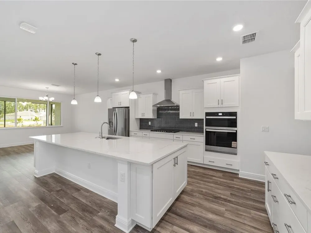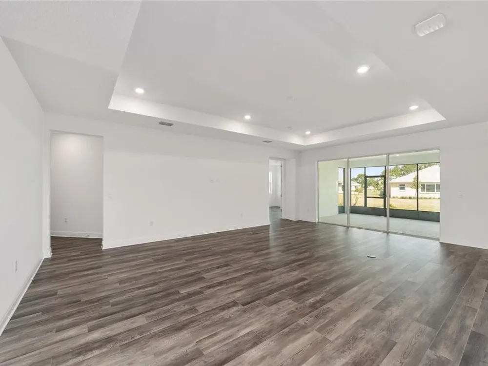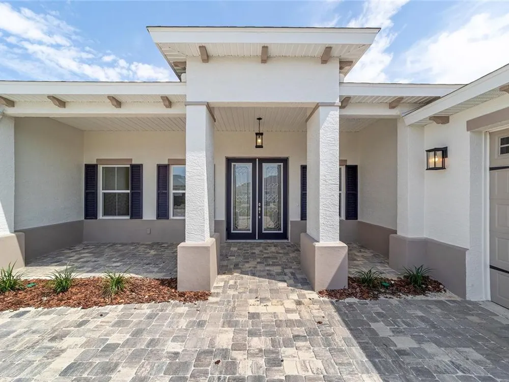 Come see this stunning new construction Aberdeen home in the highly sought-after LongLeaf Ridge neighborhood of On Top of the World. This luxurious residence offers three bedrooms, three full bathrooms, a versatile flex room, and a split three-car garage, providing ample space to suit all your needs. From the moment you arrive, you're welcomed by elegant double entry doors and a paver driveway leading to a thoughtfully designed interior. Tray ceilings and tile flooring run throughout, enhancing the open floor plan that seamlessly connects the great room and gourmet kitchen. Sunlight pours in through expansive windows, including a three-panel sliding glass door that offers breathtaking views. The gourmet kitchen is a chef’s dream, featuring premium white staggered cabinetry with crown molding, quartz countertops, a spacious island, stainless steel appliances, a built-in oven and microwave, a cooktop with a sleek hood, a stylish tile backsplash, and a walk-in pantry. The master suite is equally impressive, boasting double walk-in closets and a spa-like en suite bathroom with a zero-entry tiled shower, a built-in bench, and dual vanities with quartz countertops. This home also offers a second and third bedroom, along with two additional bathrooms, ensuring comfort and privacy for guests. The split floor plan places the guest rooms on the opposite side of the home for added seclusion. The spacious screened lanai is ideal for enjoying the outdoors and embracing Florida living at its finest. Located in Ocala’s premier 55+ active adult community, On Top of the World offers an array of amenities, including golf cart access to two shopping centers. Don’t miss the opportunity to make this spectacular home yours—schedule a showing today!