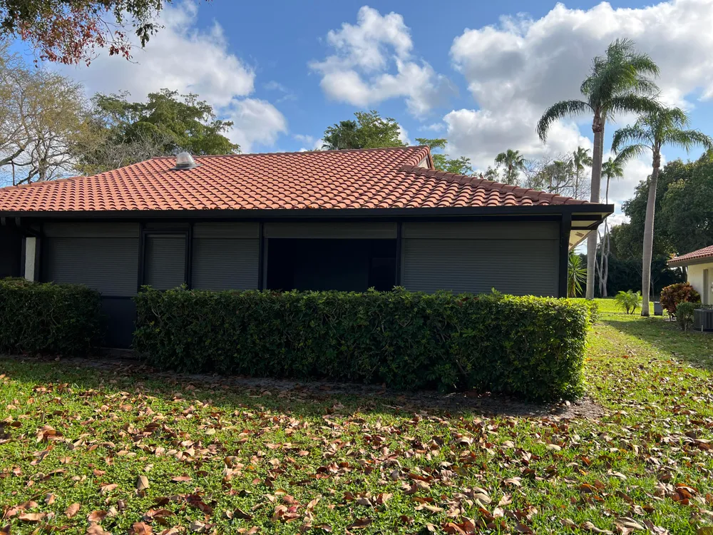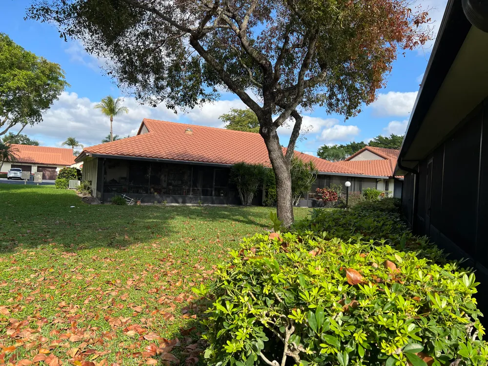 This villa is located in quiet Palm Chase w/ wonderful 300 SF screened patio overlooking a shaded greenbelt shaded with trees. Complete Accordion shutters & roll down. Seasonally used for years put little wear on this villa w/newer kitchen, tiled flooring, bonus room and more. Located off the main road w/ tree'd lot out the front door as well. Clubhouse is close by, 2 walking paths around lakes; live shows during season, 2 gyms, heated pool and more. Close to all your shopping & restaurants. Not far to world known downtown Delray Beach, ocean, activities galore. **3rd bdrm is a DEN**