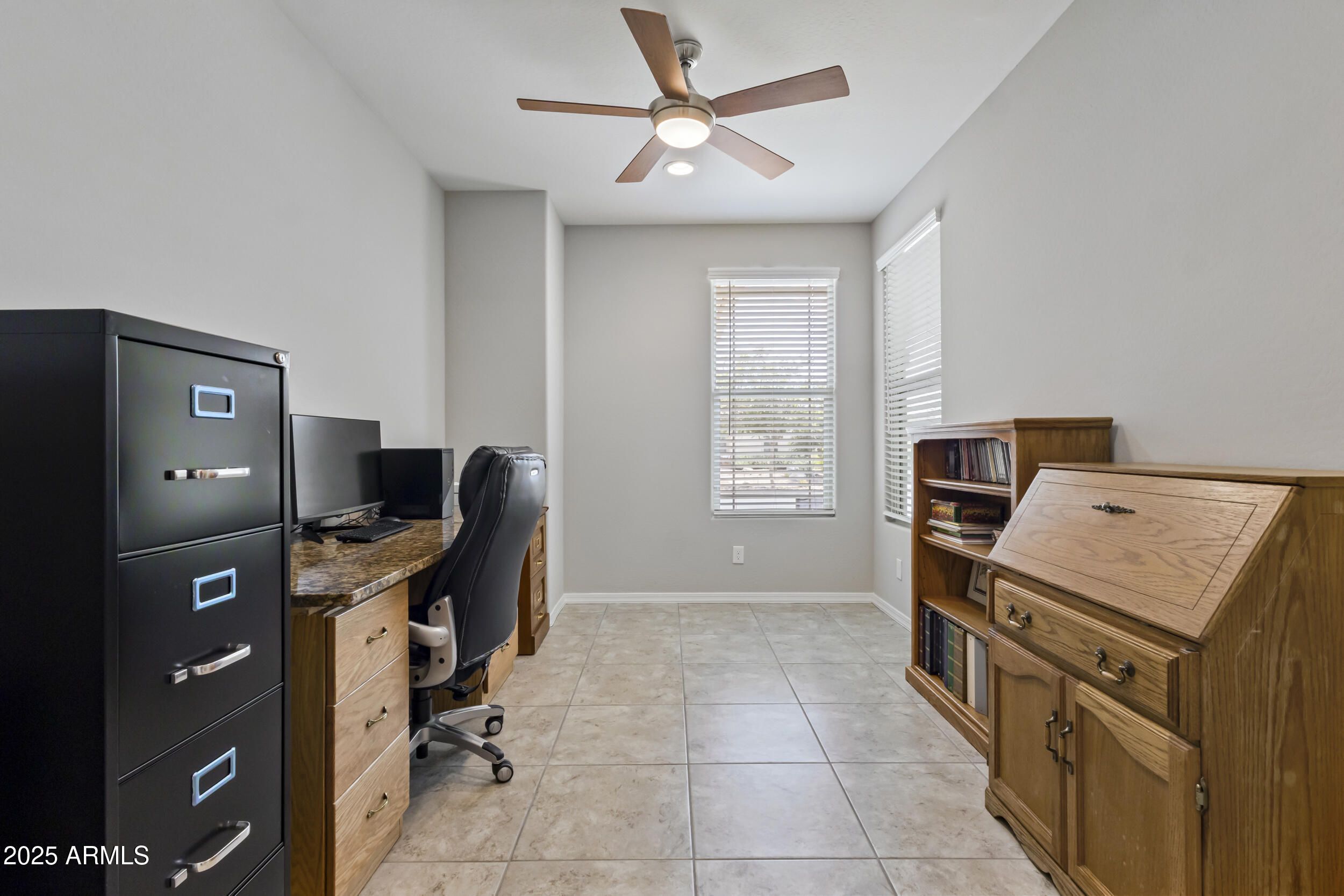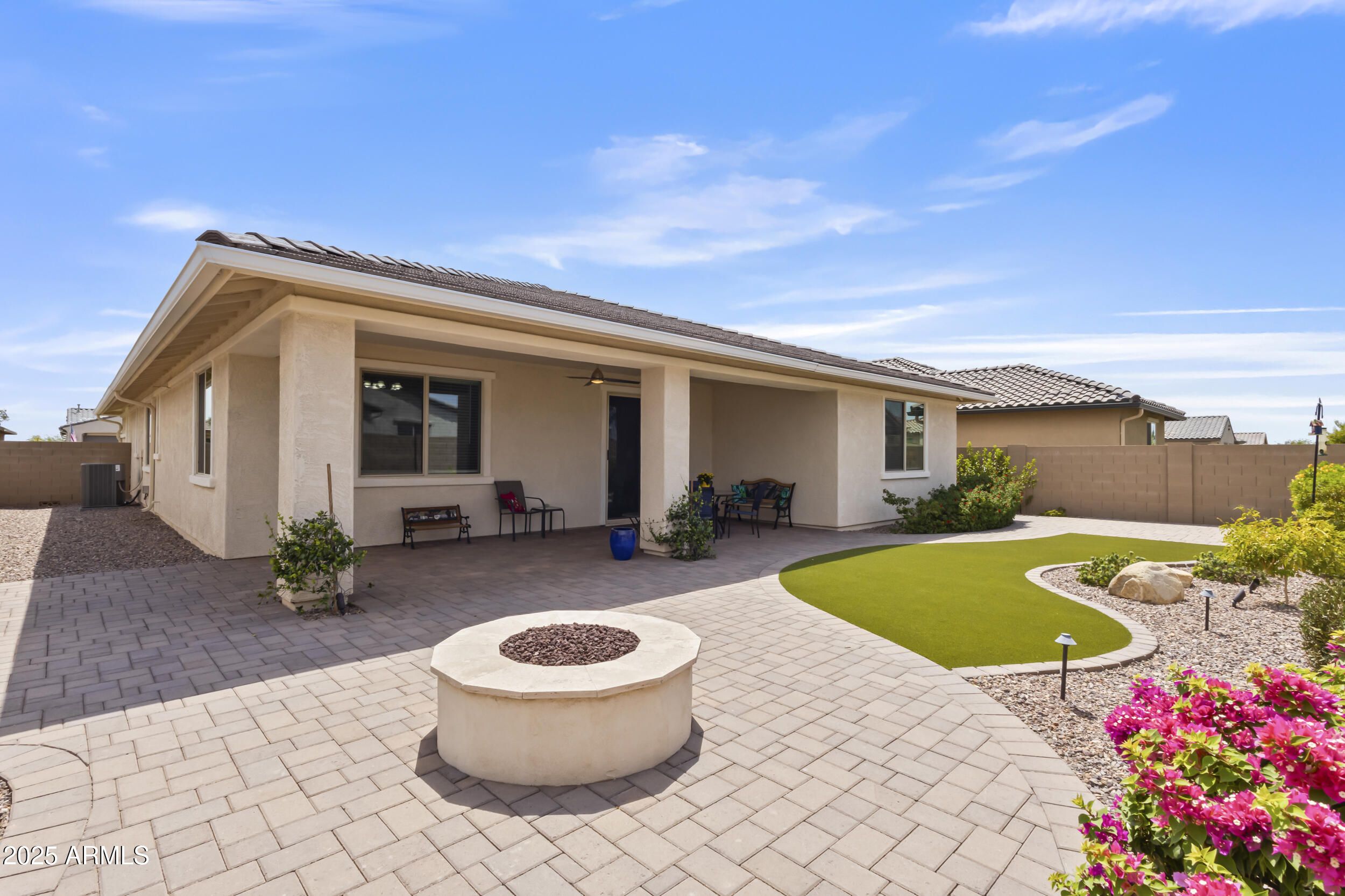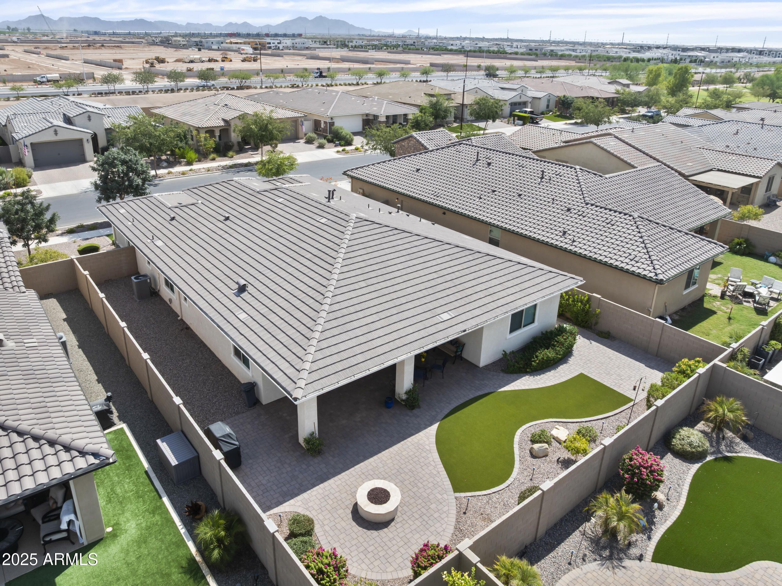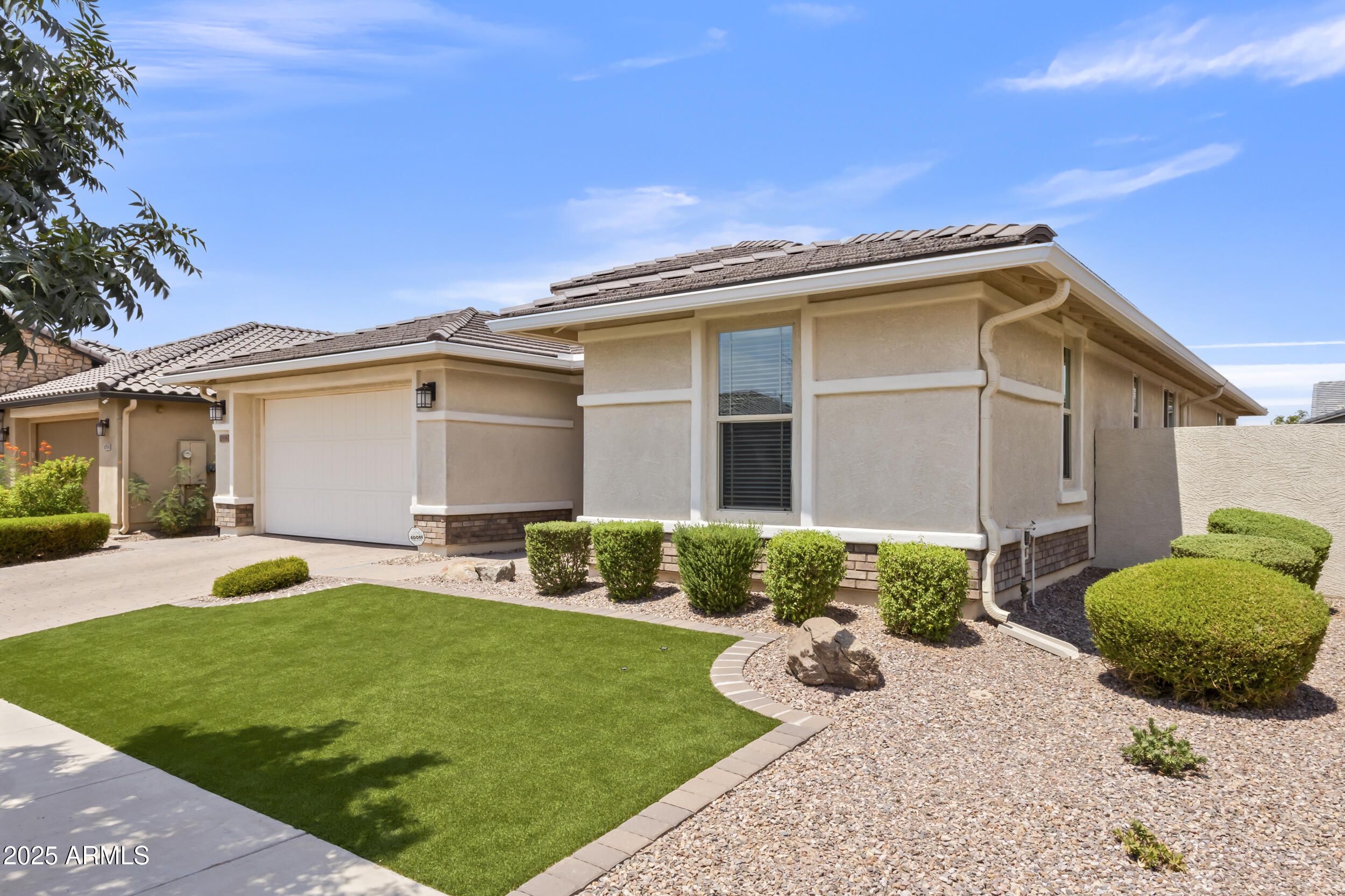 Located in the beautiful 55+ community of Encore at Eastmark! This Athens model offers 3 bedrooms + den/office, 2.5 baths, and a 3-car tandem garage. Including over $60K in builder upgrades, you'll love the maple cabinets, stainless steel appliances, granite countertops, large island, RO system, tile floors, and carpeted bedrooms. The backyard features a gas fire pit, extended patio, rain gutters, and a 220 amp spa connection. Enjoy resort-style living with pickleball, tennis, and walking paths. The clubhouse includes a fitness center, billiards, crafts, meeting rooms, and a café-- a community with something for everyone!