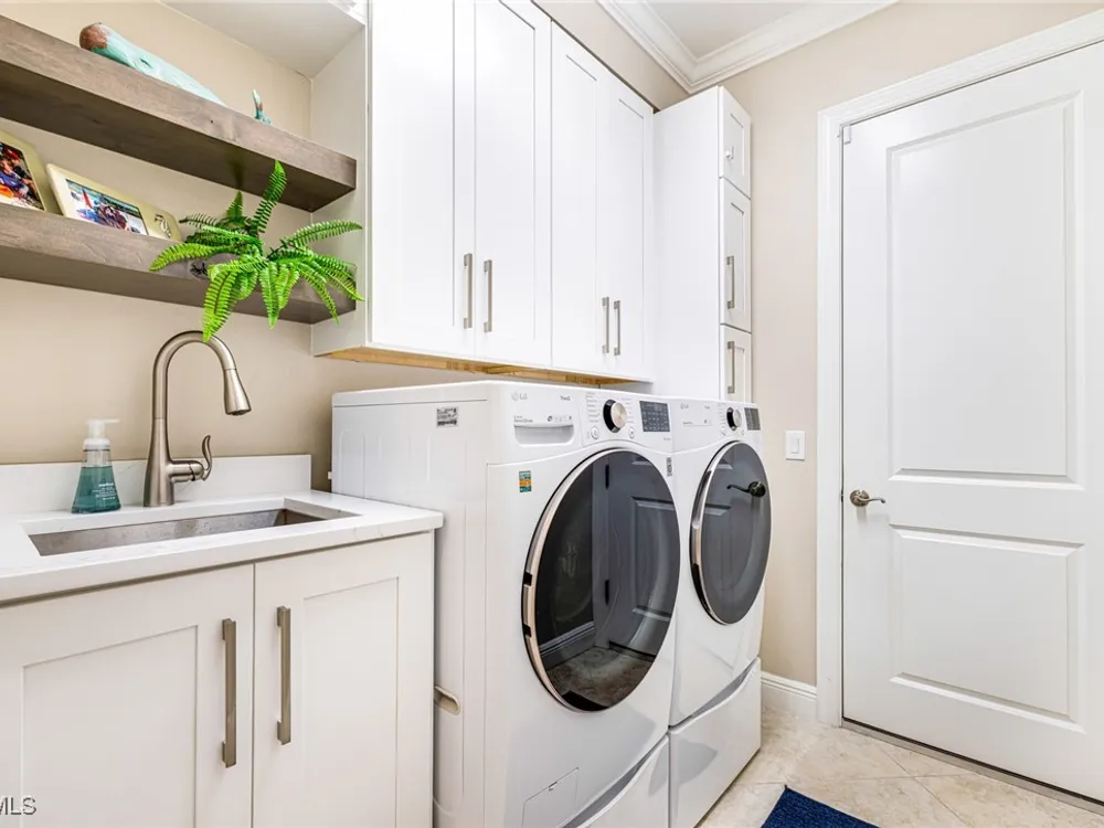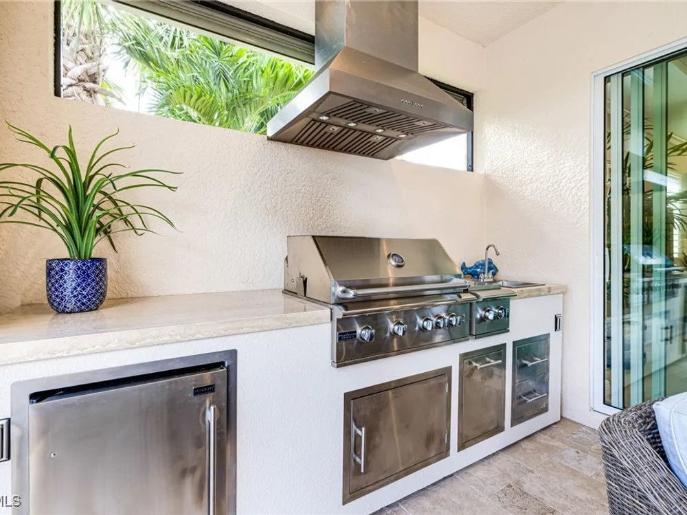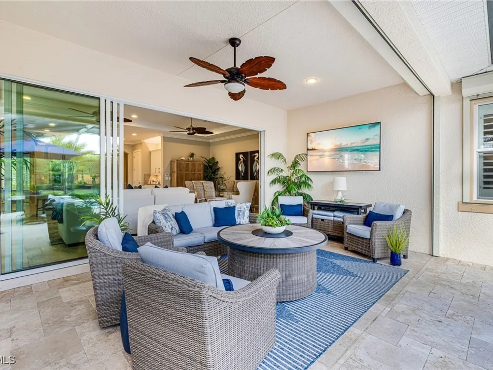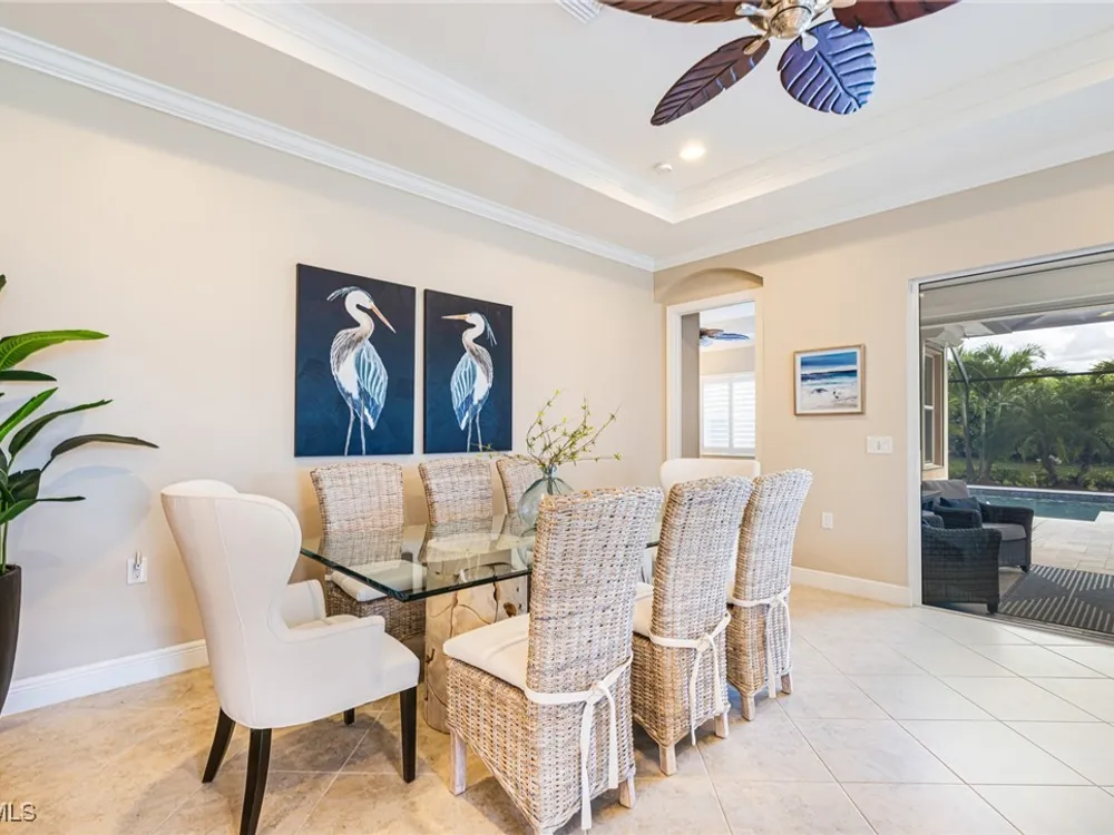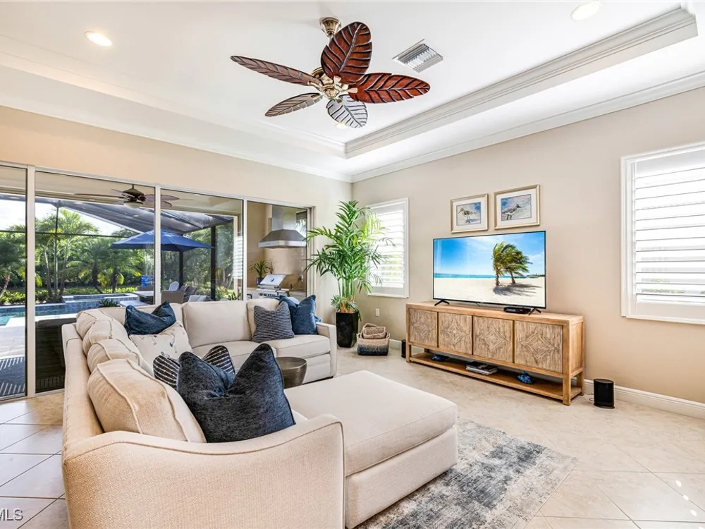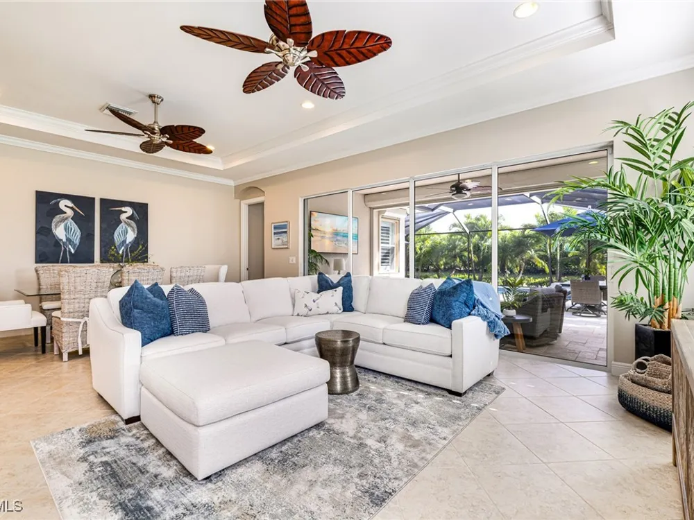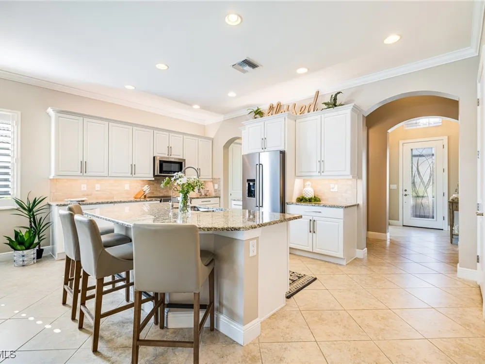 This stunning property is a must-see! The popular San Remo Floor plan boasts over $225,000 in upgrades, making it a truly luxurious home. The highlight of the property is the new saltwater pool with a Travertine deck, creating a private oasis surrounded by palm trees and lush foliage. The lanai features a summer kitchen for outdoor entertaining. Inside, the cabinets have been redone with elegant hardware, and all appliances are high-end Kitchen Aid models installed in 2021. The laundry room has also been updated with new cabinets, sink, and faucet. Additional upgrades include hurricane shutters on all windows, high-impact glass on the front window and door, crown molding, outdoor landscape and lighting, plantation shutters, fans and lights, reverse osmosis, security system, smart features, storage racks and epoxy floors in the garage, and more. Not only will you love the home itself, but you'll also enjoy the vibrant community and lifestyle in Pelican Preserve. This award-winning 55+ community offers amenities for every interest, including tennis, pickleball, softball, live music, fitness, spa, cards, books, walking trails, dog parks, and more. Optional golf memberships are also available. Sales in the community were up 30% in the 3rd quarter! Don't miss out on the chance to make this exceptional home your own and experience the unparalleled lifestyle Pelican Preserve has to offer.