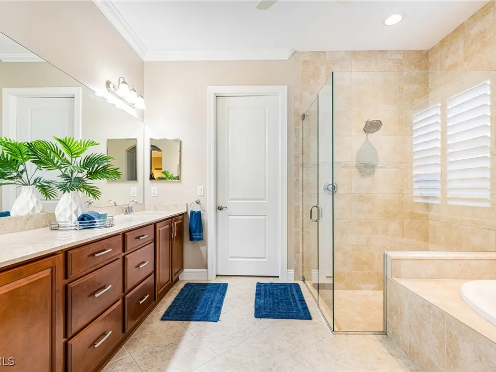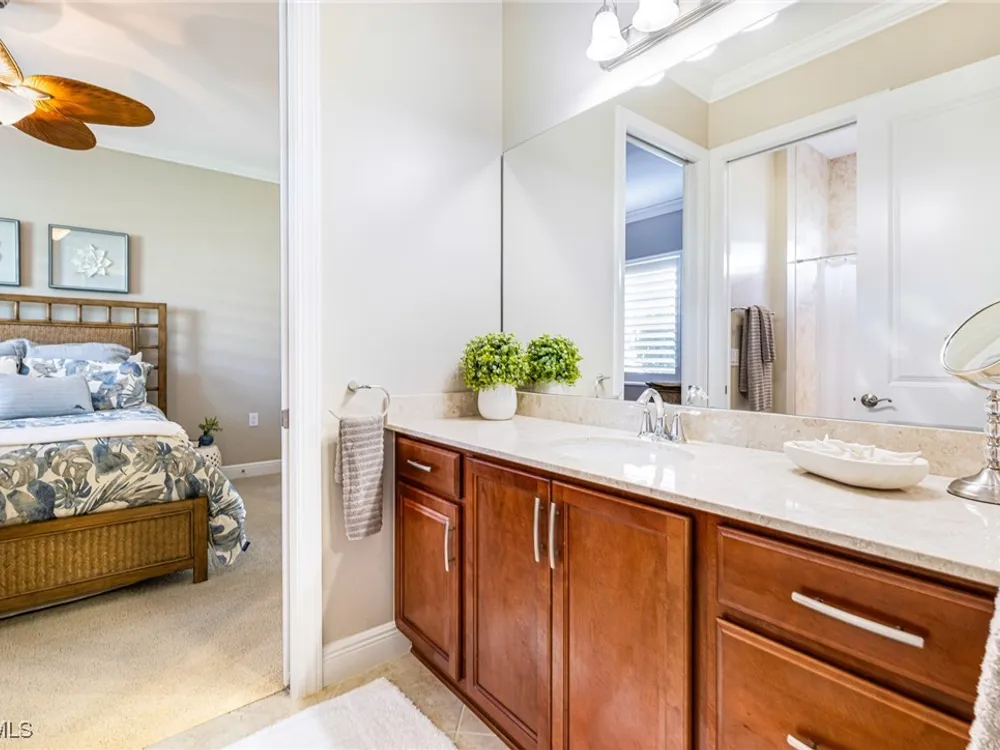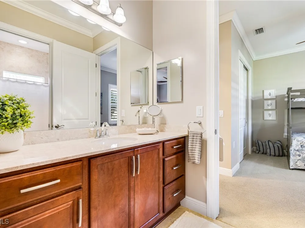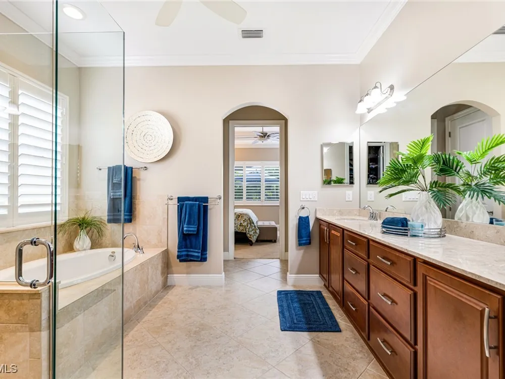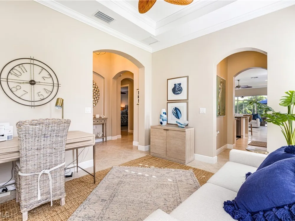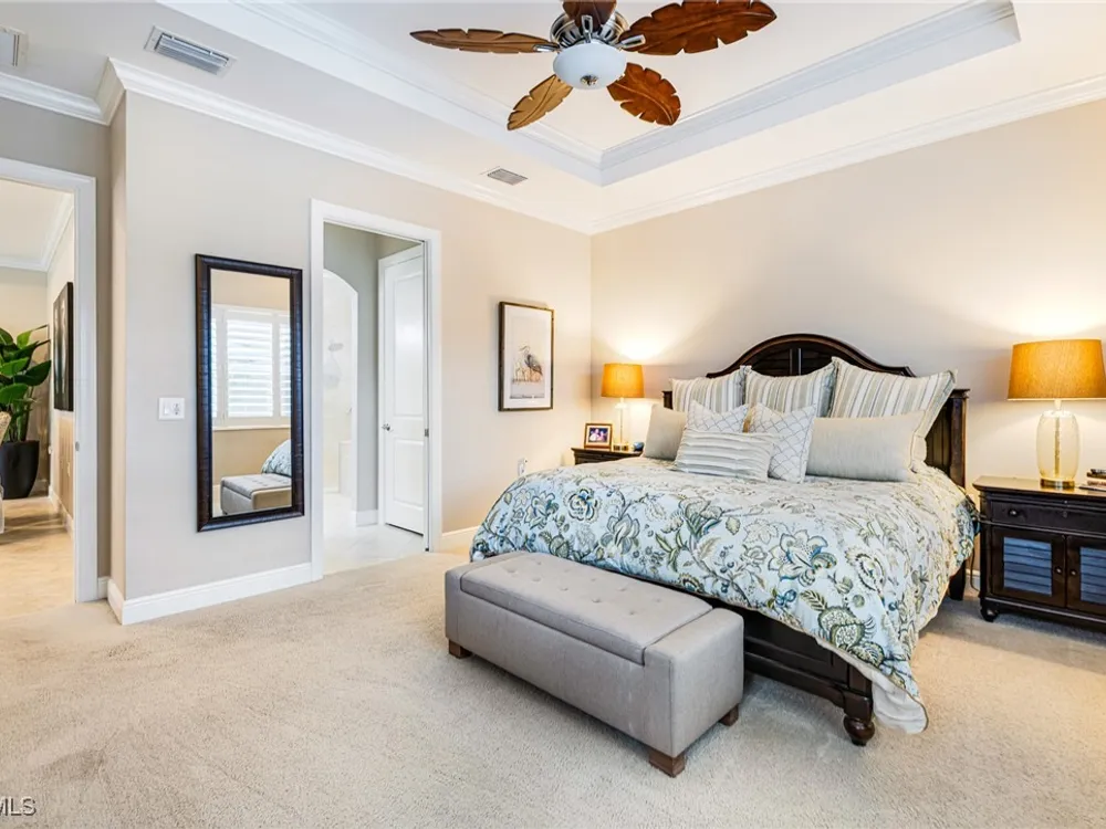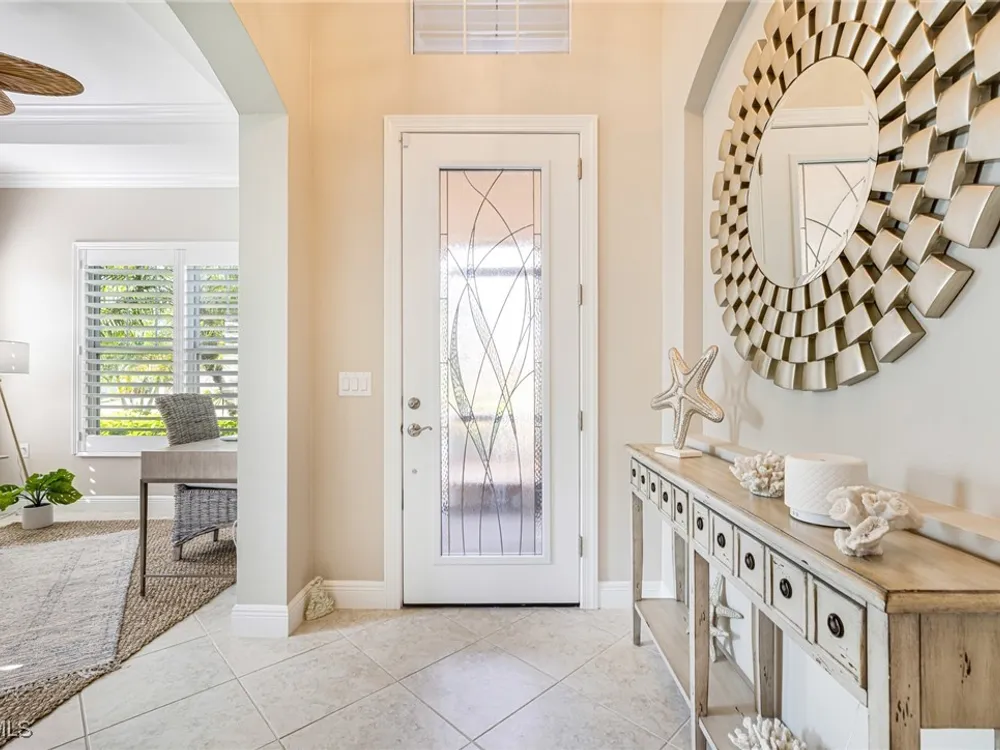 This stunning property is a must-see! The popular San Remo Floor plan boasts over $225,000 in upgrades, making it a truly luxurious home. The highlight of the property is the new saltwater pool with a Travertine deck, creating a private oasis surrounded by palm trees and lush foliage. The lanai features a summer kitchen for outdoor entertaining. Inside, the cabinets have been redone with elegant hardware, and all appliances are high-end Kitchen Aid models installed in 2021. The laundry room has also been updated with new cabinets, sink, and faucet. Additional upgrades include hurricane shutters on all windows, high-impact glass on the front window and door, crown molding, outdoor landscape and lighting, plantation shutters, fans and lights, reverse osmosis, security system, smart features, storage racks and epoxy floors in the garage, and more. Not only will you love the home itself, but you'll also enjoy the vibrant community and lifestyle in Pelican Preserve. This award-winning 55+ community offers amenities for every interest, including tennis, pickleball, softball, live music, fitness, spa, cards, books, walking trails, dog parks, and more. Optional golf memberships are also available. Sales in the community were up 30% in the 3rd quarter! Don't miss out on the chance to make this exceptional home your own and experience the unparalleled lifestyle Pelican Preserve has to offer.