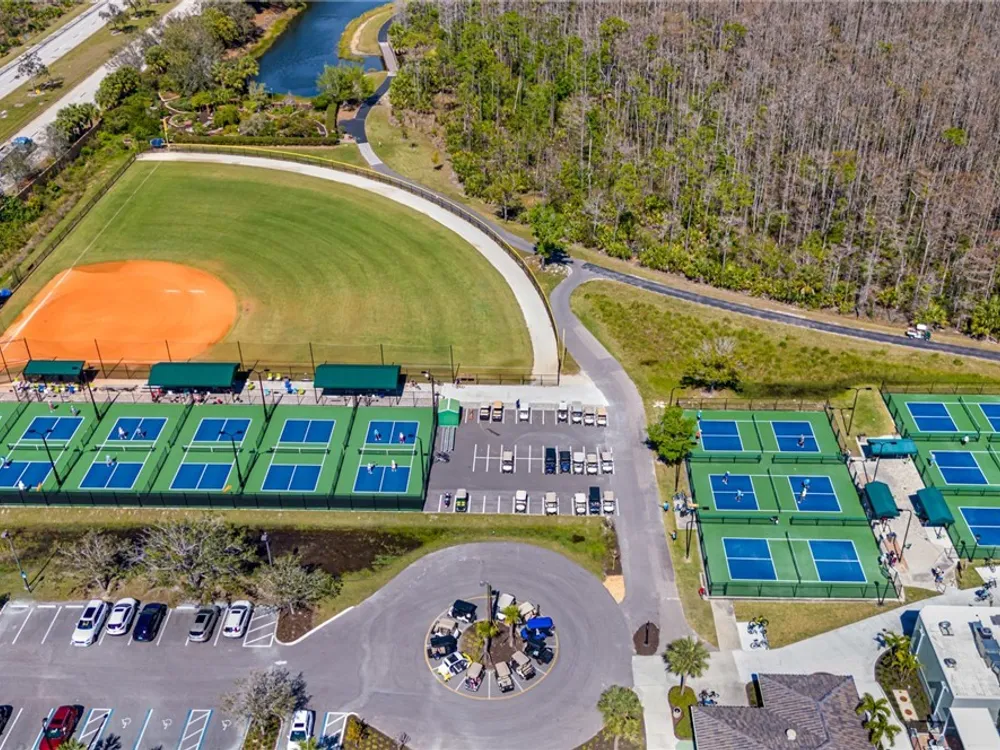 - Includes: Basketball Court, Bocce Court, Billiard Room, Bike Storage, Clubhouse, Dog Park, Fitness Center, Golf Course, Hobby Room, Library, Media Room, Barbecue, Picnic Area, Pickleball, Park, Pool, Putting Green(s), Restaurant, Spa/Hot Tub, Sidewalks, Tennis Court(s)