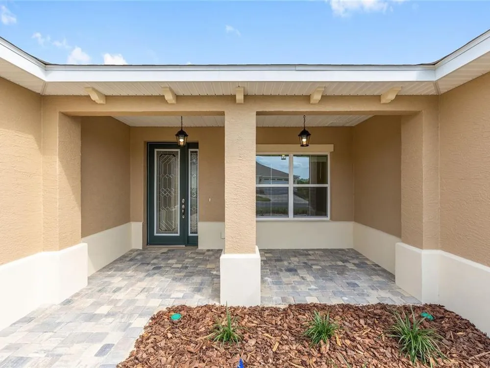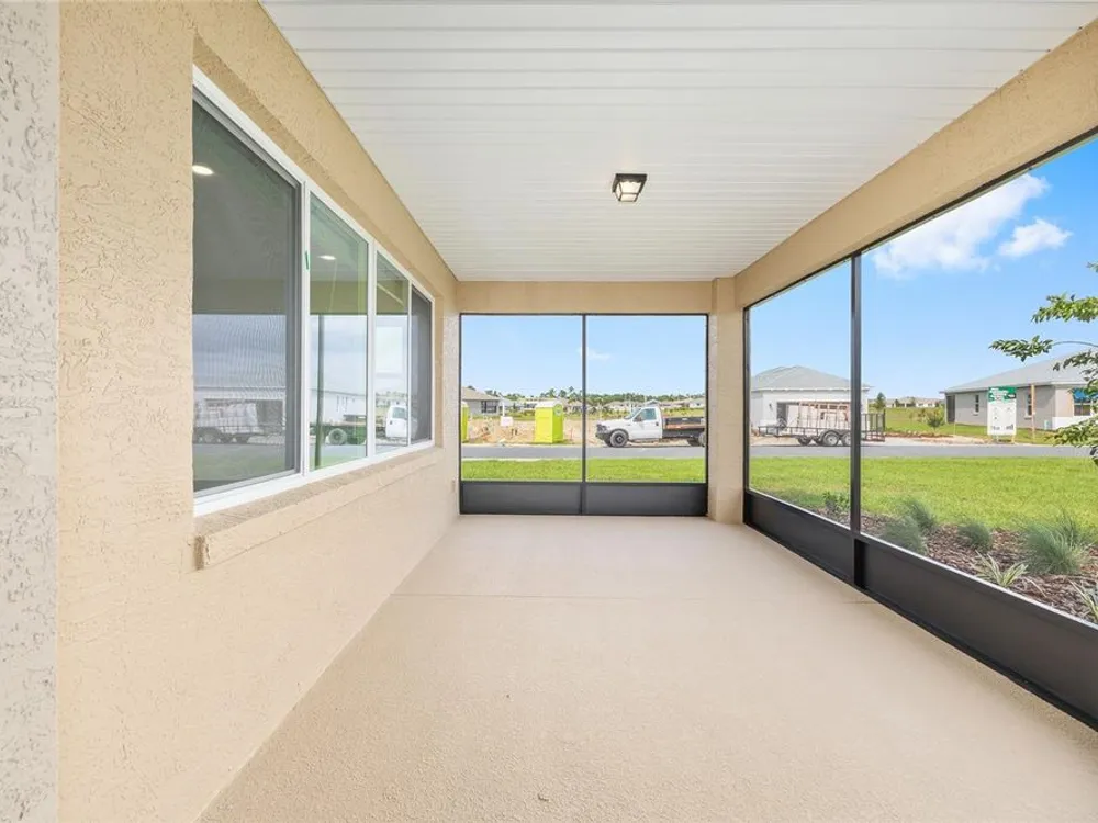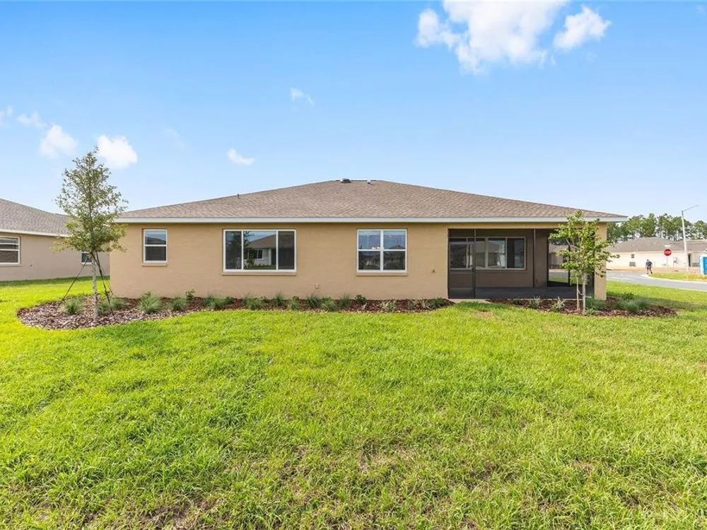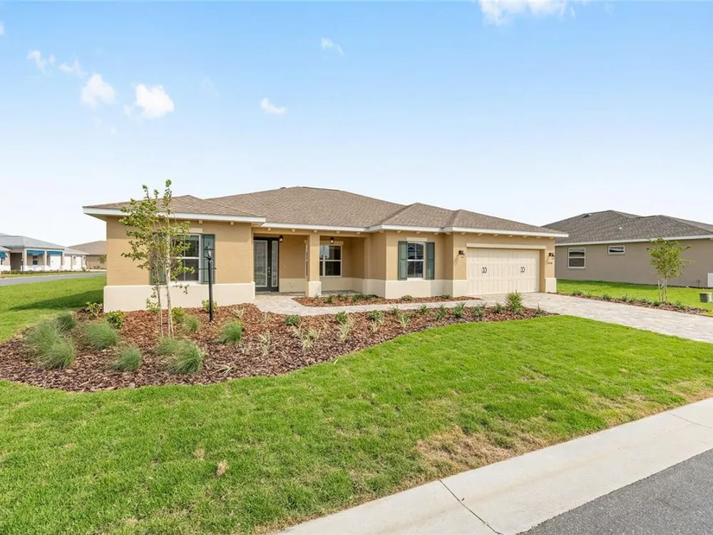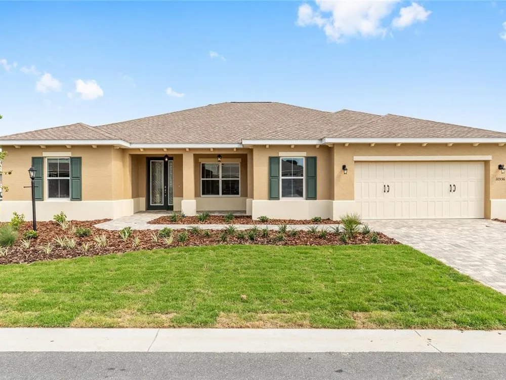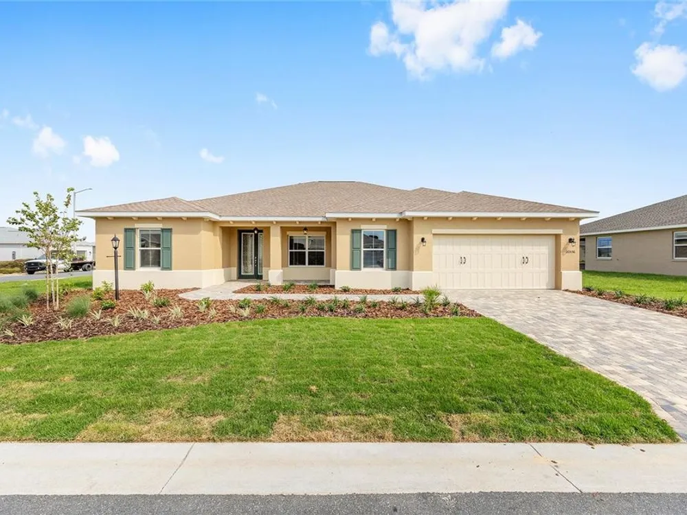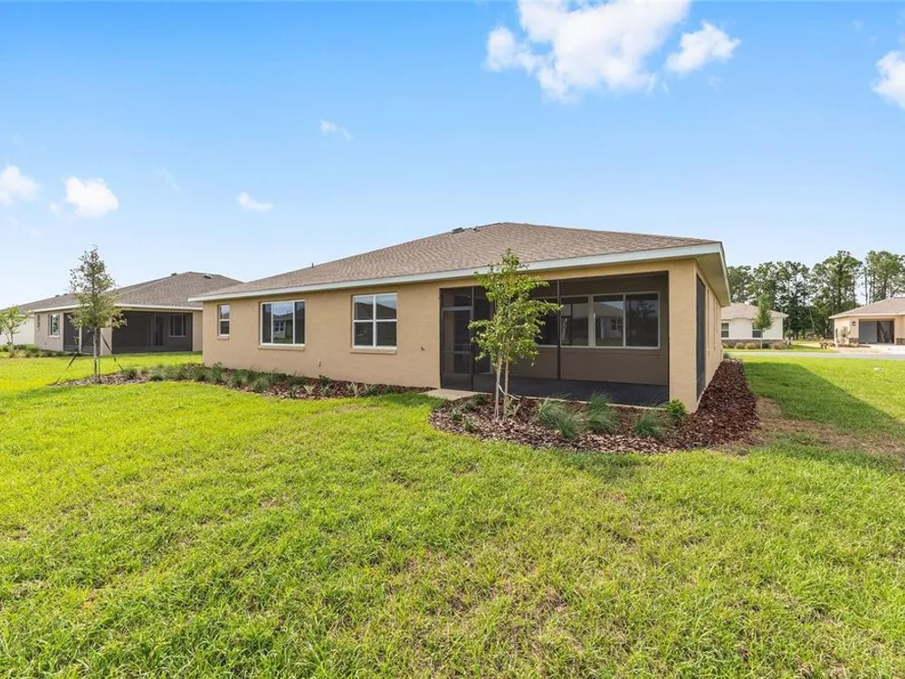 Step into luxury with this stunning new construction Beatrix home, ideally situated on a corner lot in LongLeaf Ridge at On Top of the World. Designed with both style and functionality in mind, this home features 2 bedrooms, 2 bathrooms, and a versatile flex room, along with an oversized 2-car garage that includes space for golf cart parking. The gourmet kitchen is a chef’s delight, boasting stainless steel appliances, staggered cabinets with crown molding, quartz countertops and backsplash, and a spacious island perfect for meal prep or entertaining. The open floor plan seamlessly connects to the flex room with French doors, ideal for a home office or hobby space. Throughout the home, you'll find beautiful tile flooring, offering both durability and elegance while enhancing the seamless flow of the living spaces. Retreat to the primary suite, where a large walk-in closet and elegant en suite bathroom await. The bathroom features a tiled shower with a glass door and built-in bench, along with his-and-her vanity sinks adorned with quartz counters. The second bedroom and bath provide a cozy, inviting space for guests. Step outside through the sliding glass doors and enjoy the peaceful surroundings from your screened lanai, offering a perfect blend of indoor-outdoor living. Nestled in Ocala’s premier gated 55+ community, this exceptional home provides access to world-class amenities, including golf cart access to two shopping centers. Don’t miss the chance to own this exquisite Beatrix home—schedule your showing today!