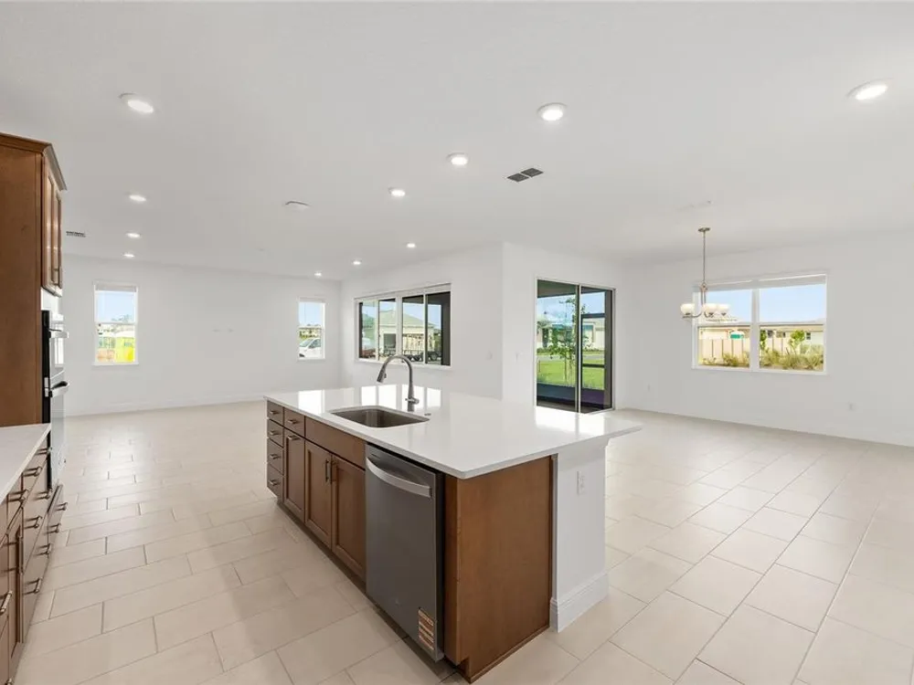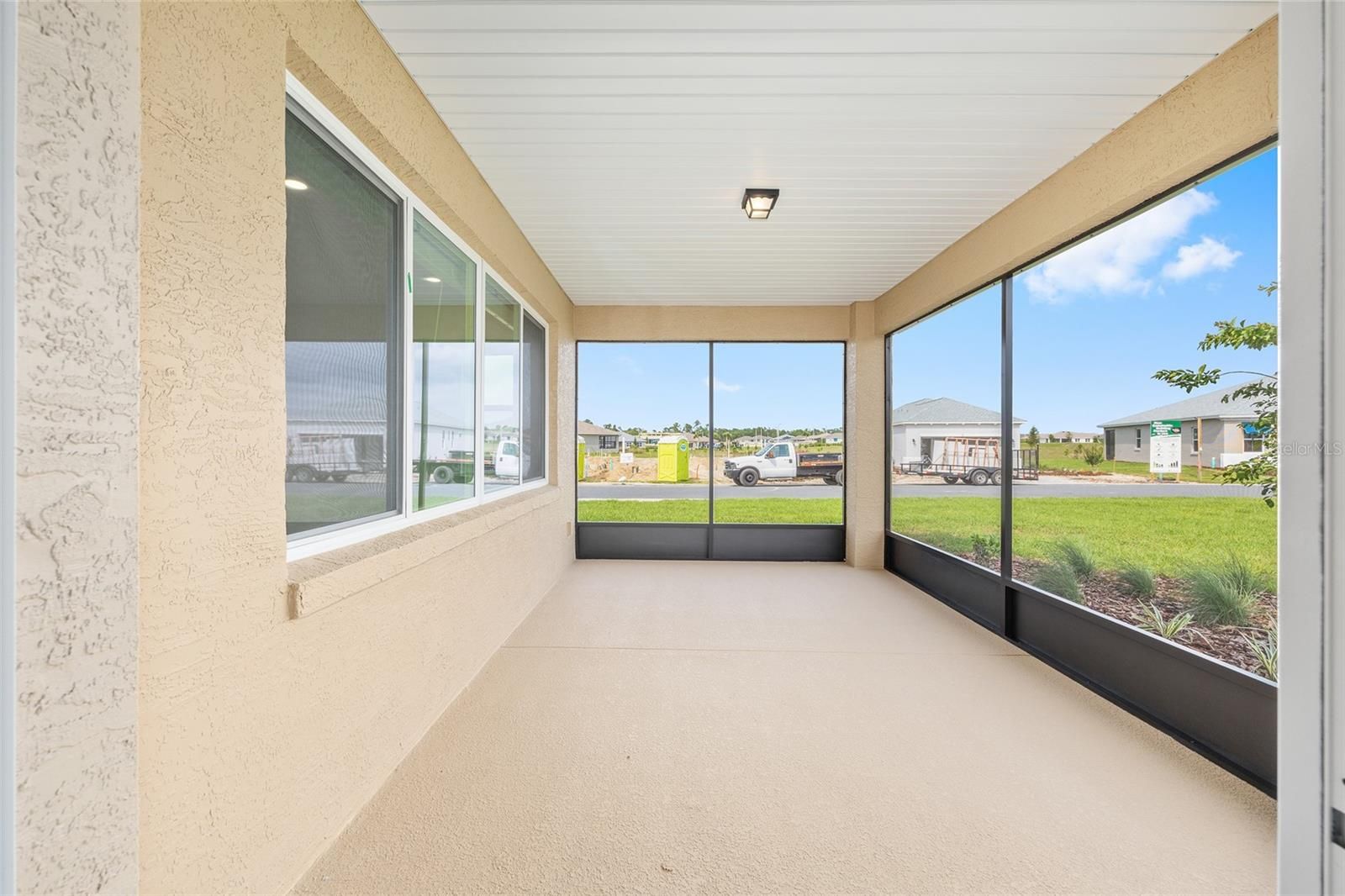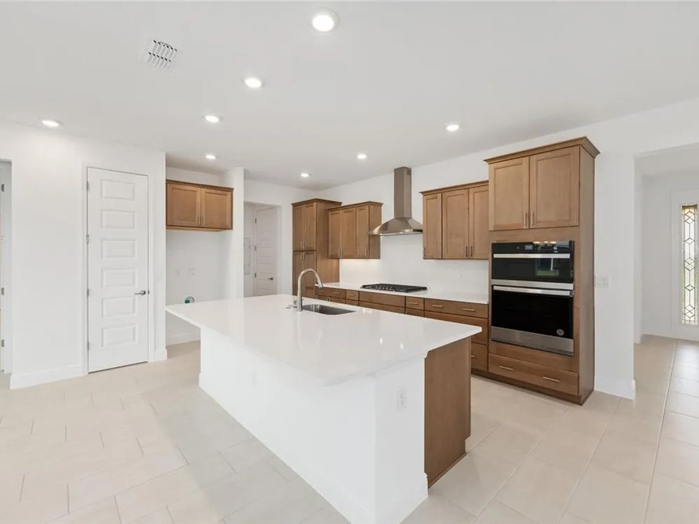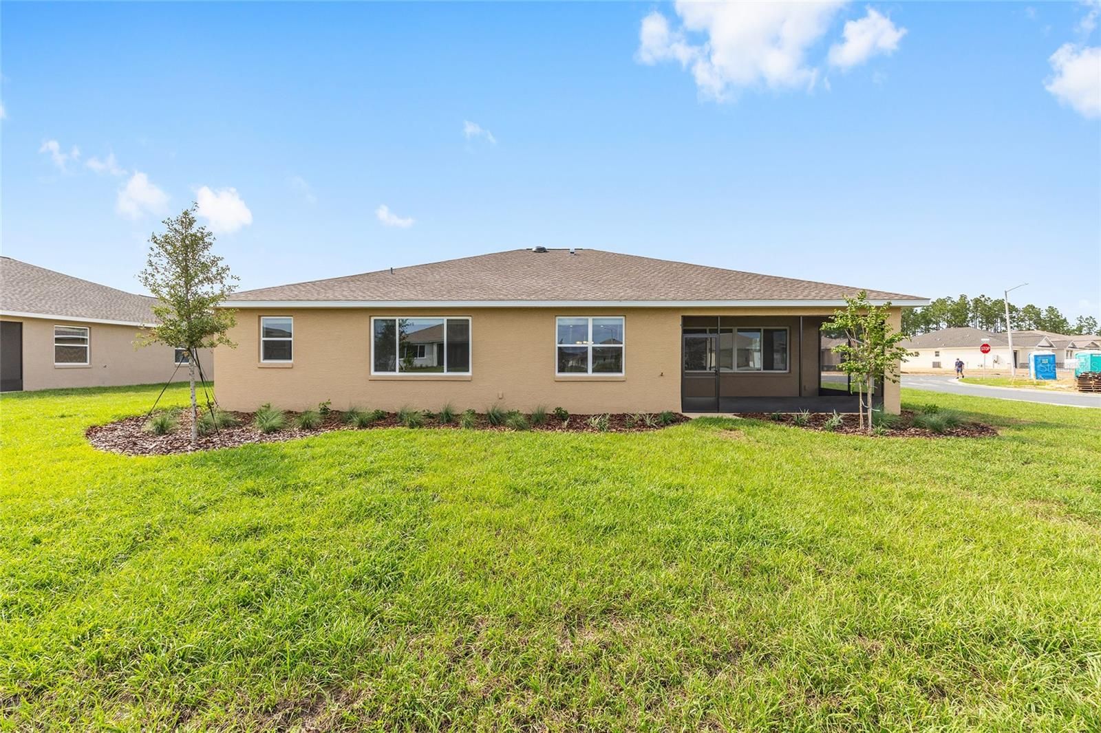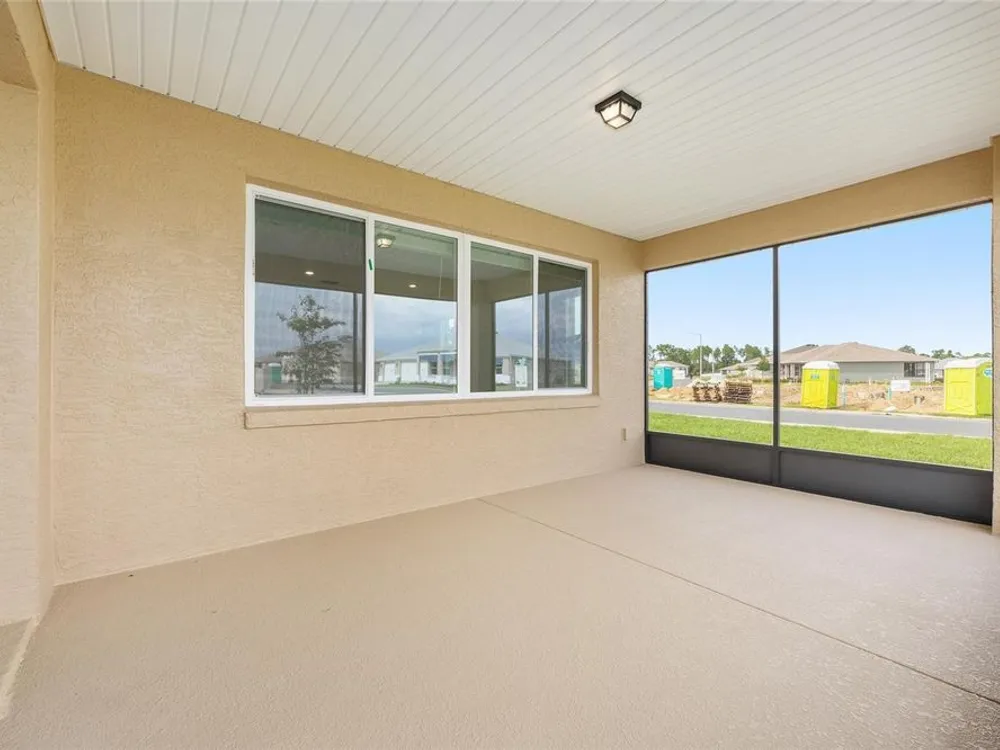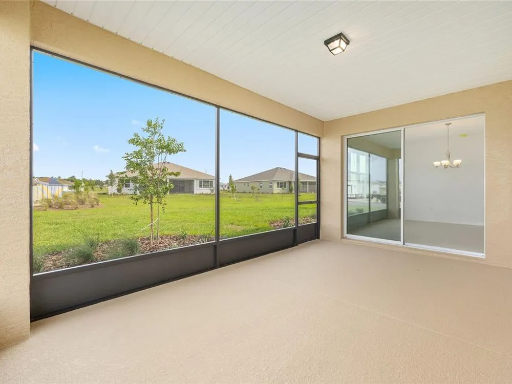 Step into luxury with this stunning new construction Beatrix home, ideally situated on a corner lot in LongLeaf Ridge at On Top of the World. Designed with both style and functionality in mind, this home features 2 bedrooms, 2 bathrooms, and a versatile flex room, along with an oversized 2-car garage that includes space for golf cart parking. The gourmet kitchen is a chef’s delight, boasting stainless steel appliances, staggered cabinets with crown molding, quartz countertops and backsplash, and a spacious island perfect for meal prep or entertaining. The open floor plan seamlessly connects to the flex room with French doors, ideal for a home office or hobby space. Throughout the home, you'll find beautiful tile flooring, offering both durability and elegance while enhancing the seamless flow of the living spaces. Retreat to the primary suite, where a large walk-in closet and elegant en suite bathroom await. The bathroom features a tiled shower with a glass door and built-in bench, along with his-and-her vanity sinks adorned with quartz counters. The second bedroom and bath provide a cozy, inviting space for guests. Step outside through the sliding glass doors and enjoy the peaceful surroundings from your screened lanai, offering a perfect blend of indoor-outdoor living. Nestled in Ocala’s premier gated 55+ community, this exceptional home provides access to world-class amenities, including golf cart access to two shopping centers. Don’t miss the chance to own this exquisite Beatrix home—schedule your showing today!