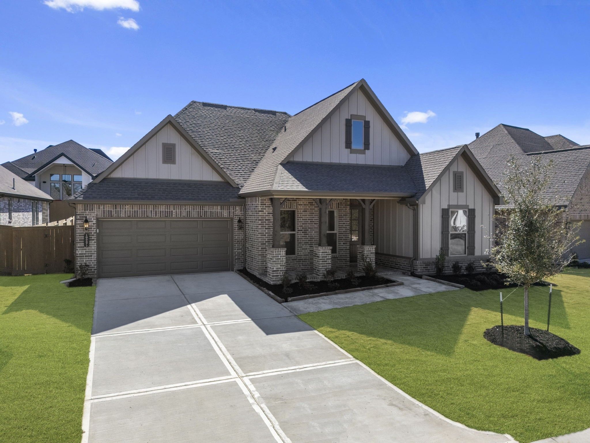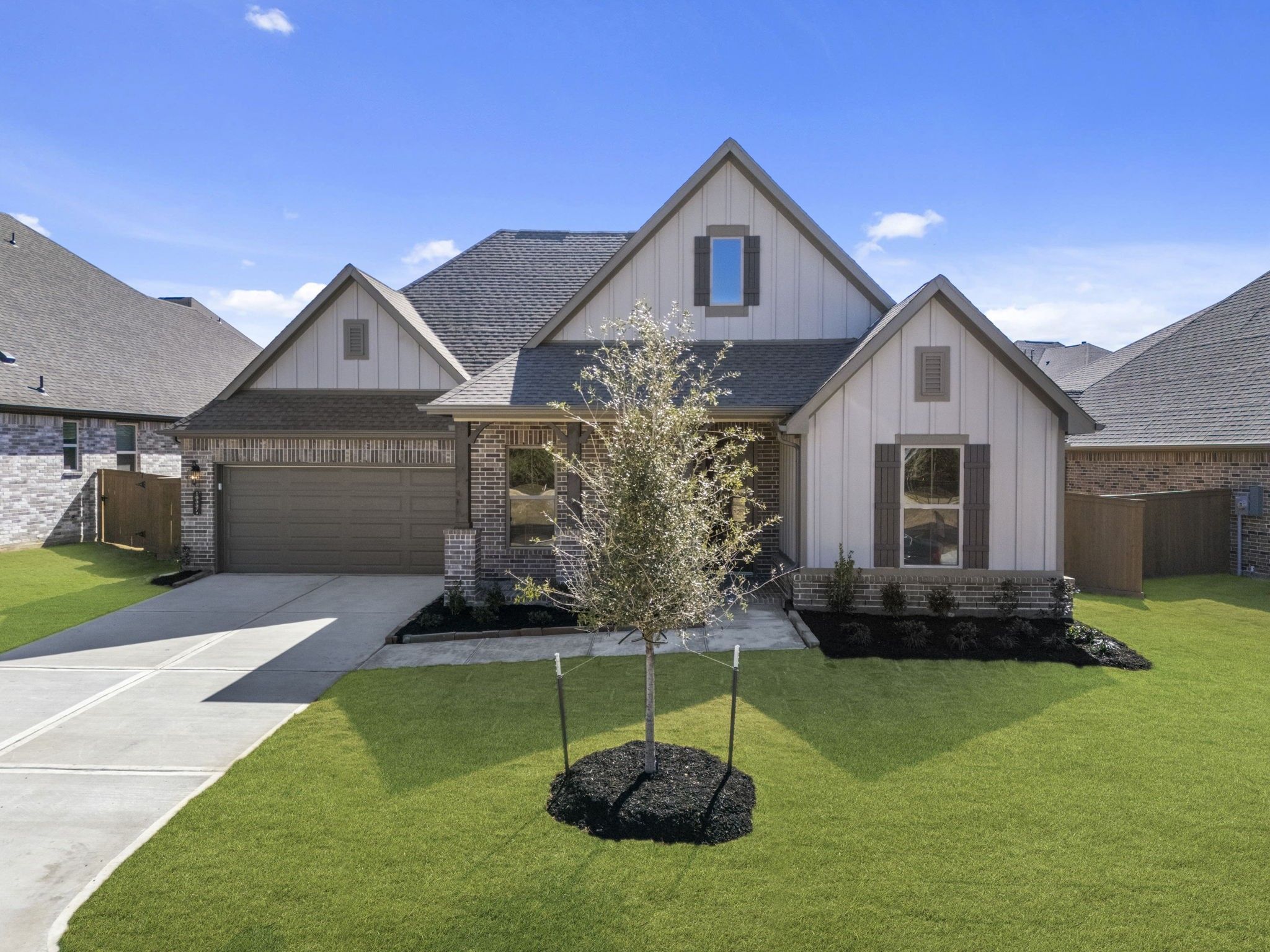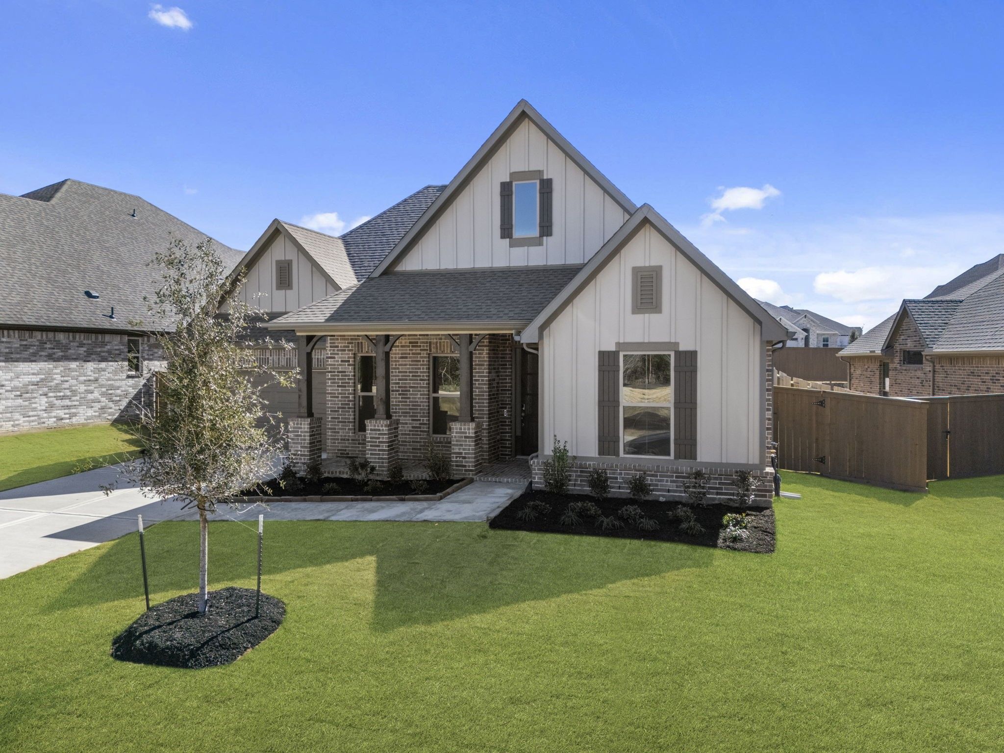 Welcome to your dream home in Chambers Creek! This beautifully designed one-story home showcases elegant designer finishes and a thoughtfully crafted layout throughout. Step into the grand foyer, where stunning ceiling details immediately set the tone for the style and comfort that fill every room. The spacious gourmet kitchen features a large island that seamlessly overlooks the great room, making it perfect for both everyday living and entertaining. The primary suite offers a generous walk-in closet and a stunning bay window with peaceful views of the backyard. Whether you're hosting guests inside or enjoying the outdoors on your Texas-sized covered patio, this home provides the ideal setting. Don’t miss your chance to make this home yours—schedule a tour today!