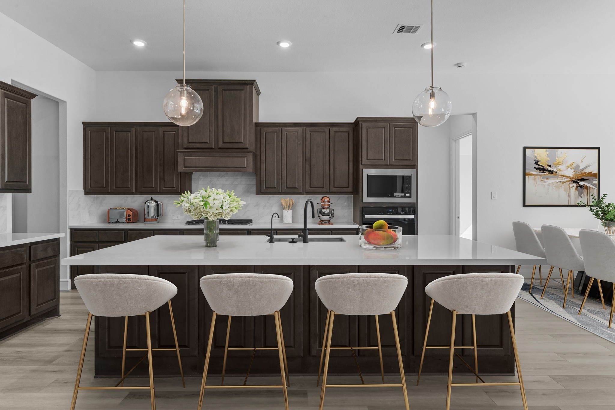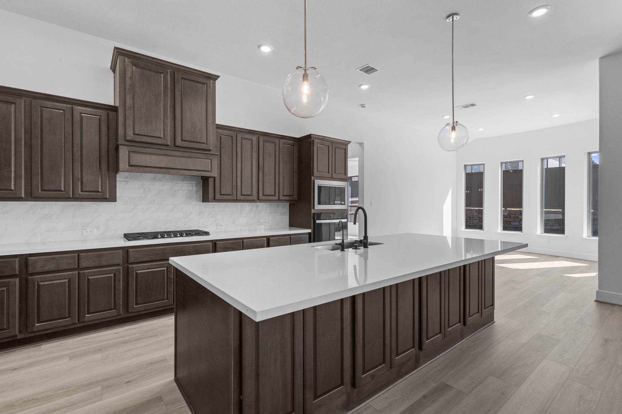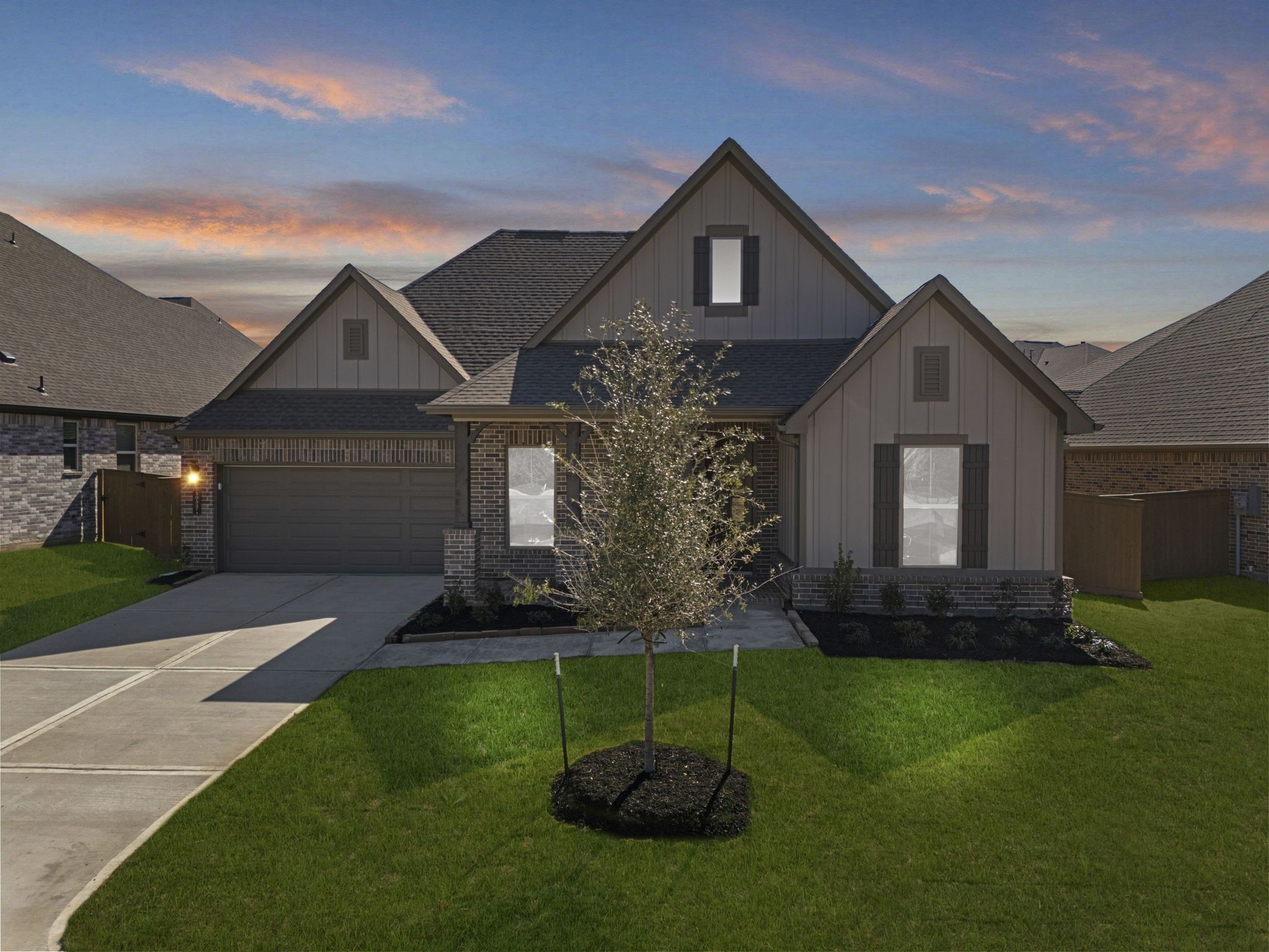 Welcome to your dream home in Chambers Creek! This beautifully designed one-story home showcases elegant designer finishes and a thoughtfully crafted layout throughout. Step into the grand foyer, where stunning ceiling details immediately set the tone for the style and comfort that fill every room. The spacious gourmet kitchen features a large island that seamlessly overlooks the great room, making it perfect for both everyday living and entertaining. The primary suite offers a generous walk-in closet and a stunning bay window with peaceful views of the backyard. Whether you're hosting guests inside or enjoying the outdoors on your Texas-sized covered patio, this home provides the ideal setting. Don’t miss your chance to make this home yours—schedule a tour today!