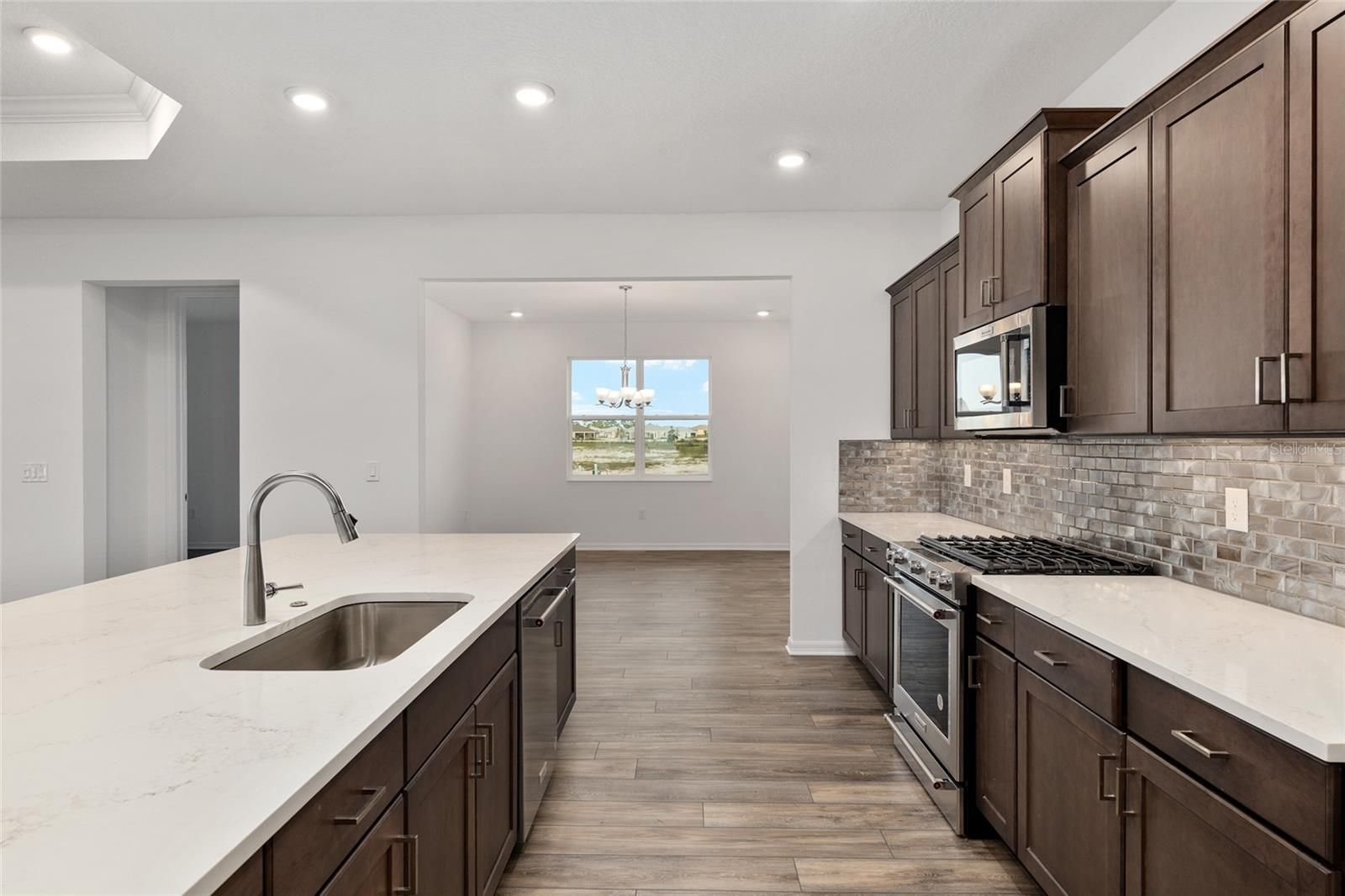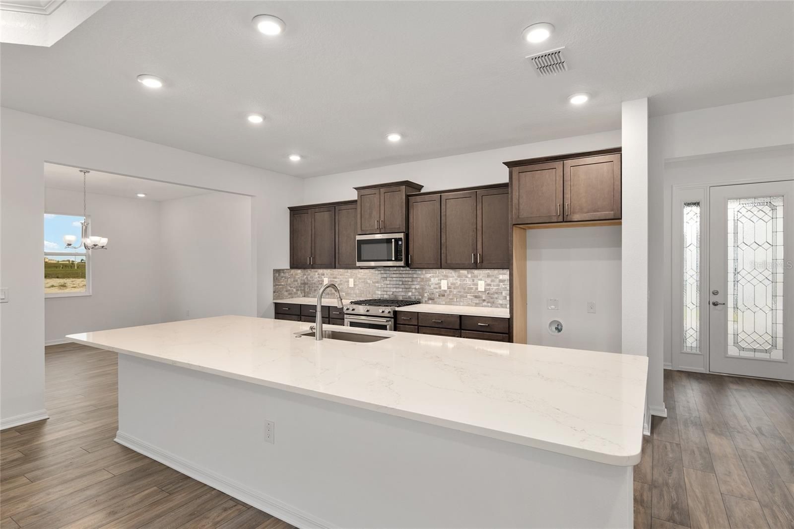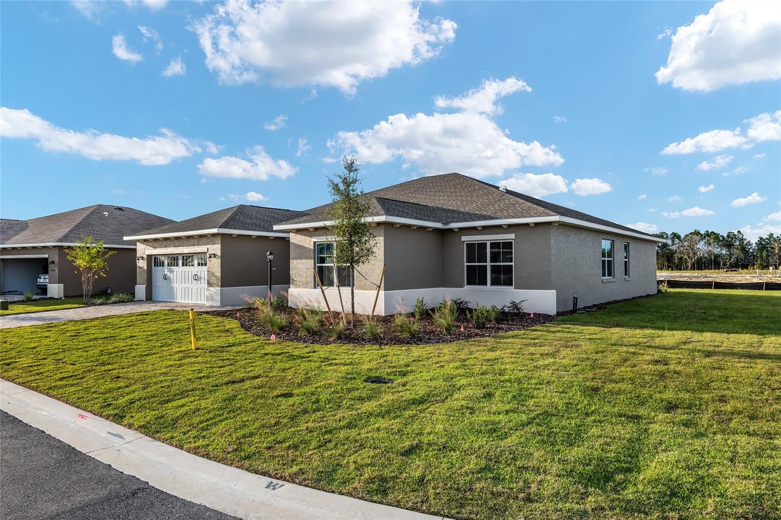 Beautiful New Construction Willem model located in the Longleaf Ridge neighborhood in On Top of the World! This move in ready home has 3 bedrooms, 3 bathrooms, and a two-car garage. The entryway leads to the open great room and kitchen. The kitchen features quartz countertops, tile backsplash, 5 burner stove/range/ built in microwave and stainless-steel appliances. The master bedroom has vinyl tile, and a walk-in closet. The master bathroom has a large double vanity sink, walk-in tile shower and linen closet. Located in Ocala's premier, gated, active 55+ community, loaded with amenities, including gold cart access to two shopping centers.