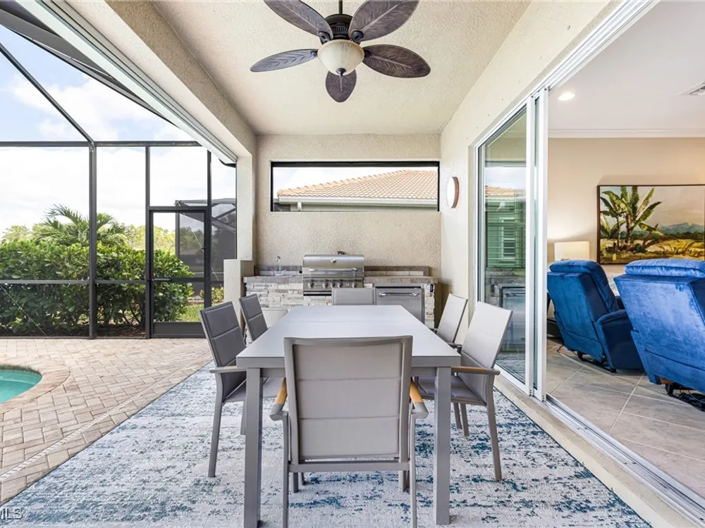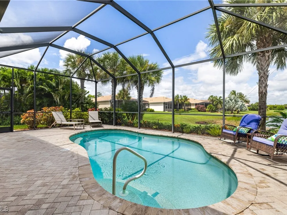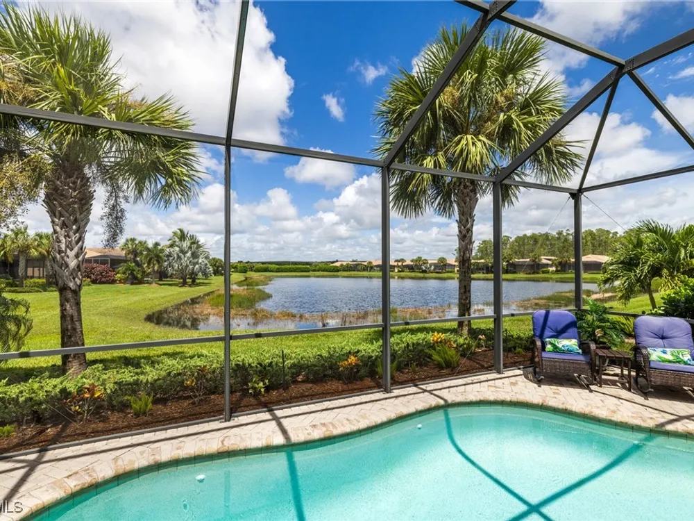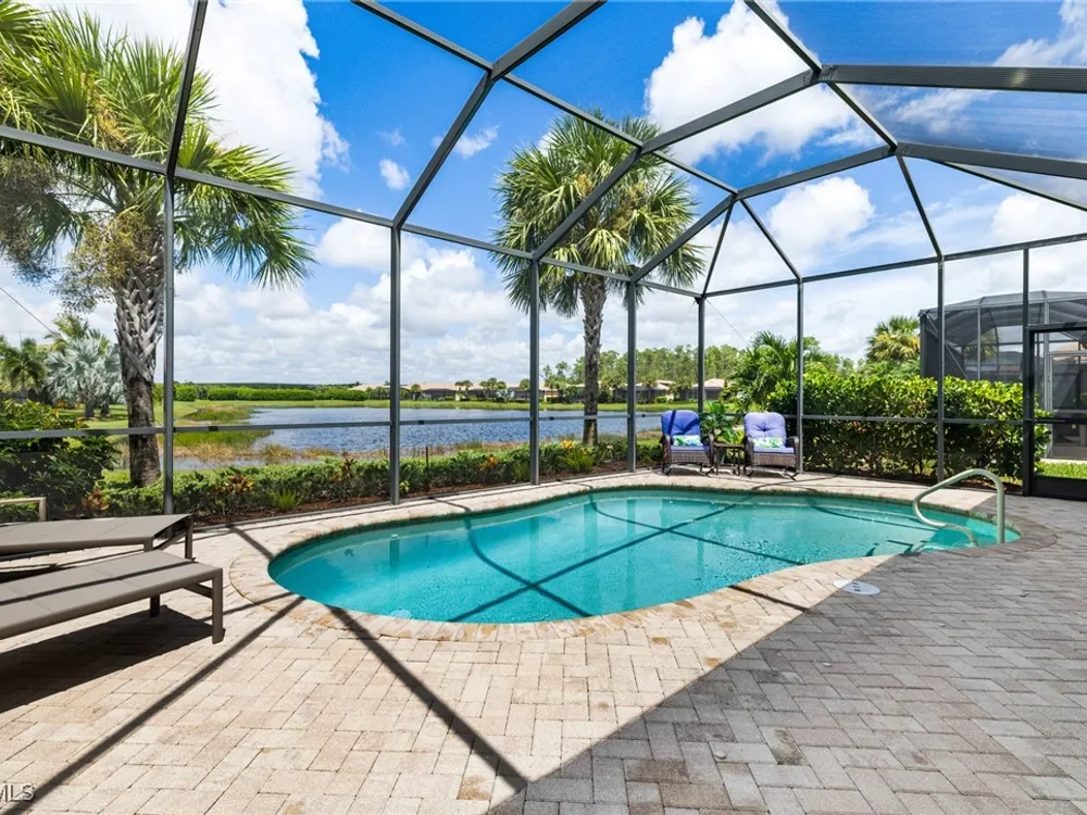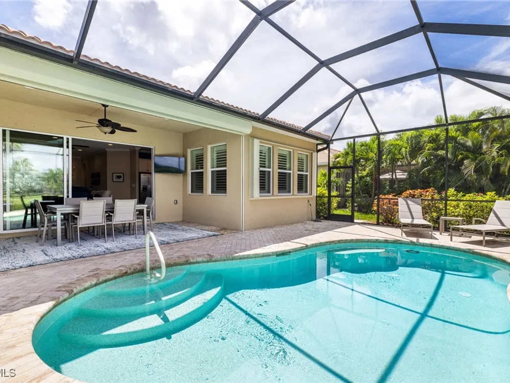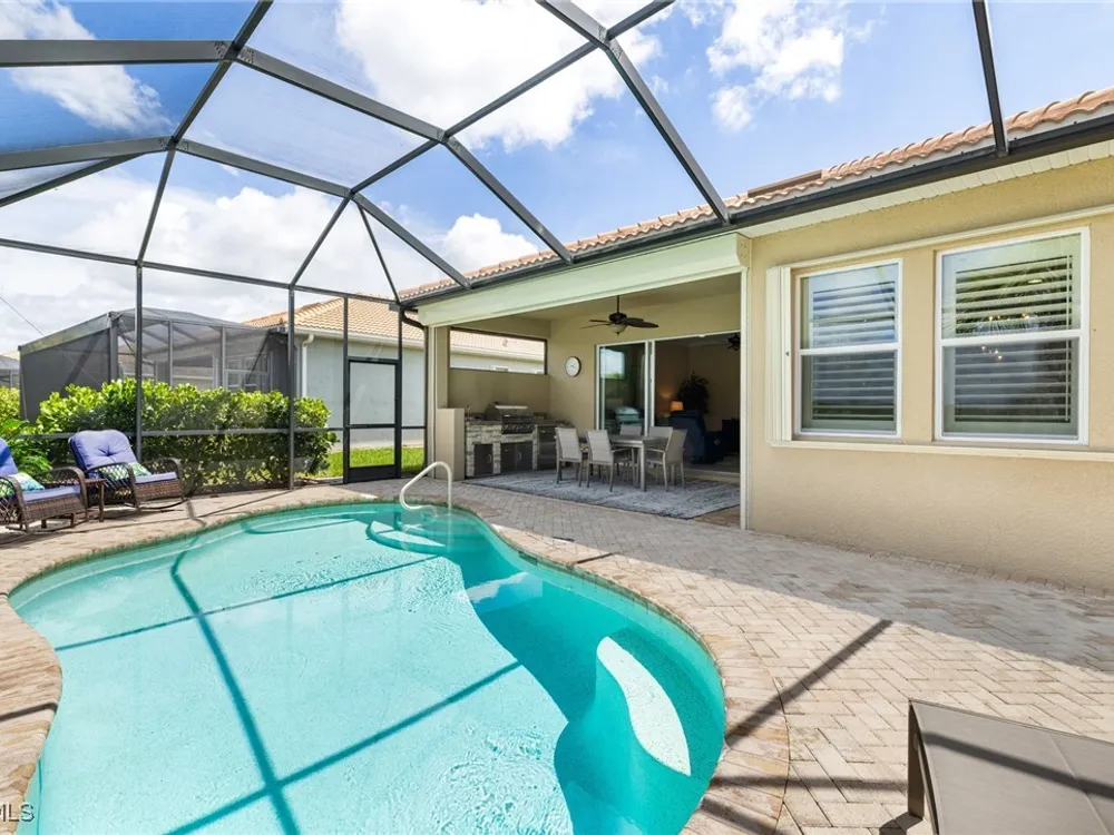 Experience the perfect blend of style, comfort, and resort living in this immaculate WCI-built residence, offering nearly 2,000 square feet of thoughtfully designed space. Nestled in the prestigious Materita neighborhood of Pelican Preserve, this light-filled 2-bedroom plus den home with private pool and lake views is truly exceptional. The open-concept floor plan is ideal for both everyday living and entertaining. The chef’s kitchen showcases a spacious counter-height island, granite countertops, stainless steel appliances, 42” soft-close cabinetry with pull-out shelving, a large pantry, and elegant crown molding. Plantation shutters, upgraded lighting and fans, and diagonally laid tile flooring add a refined touch throughout. Step outside to your private retreat, where a heated pool, screened lanai, summer kitchen, and expansive pool deck create the perfect setting for gatherings with family and friends. Enjoy serene long-lake views by day and relaxed evenings of outdoor dining. Beautifully landscaped and designed with convenience in mind, the home also features accordion shutters and electric Storm Smart lanai shutters for added peace of mind. At Pelican Preserve, every day feels like a getaway. Residents enjoy a world-class Town Center with a staffed fitness and movement center, indoor, resort-style, and lap pools, plus eight tennis and twelve Pickleball courts. Dining is a delight with two on-site restaurants offering inviting outdoor seating. A vibrant calendar of social events, live entertainment, and a concert pavilion ensures there’s always something to enjoy. Optional golf memberships provide access to pristine fairways and a private clubhouse. Pelican Preserve isn’t just a community—it’s a lifestyle of elegance, activity, and connection.