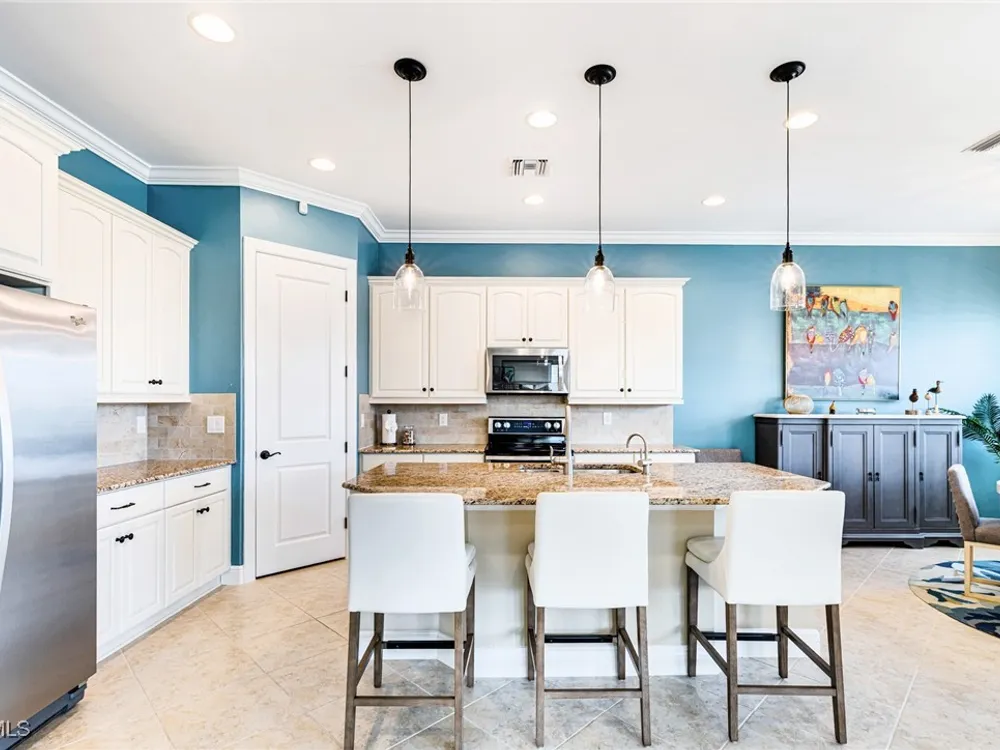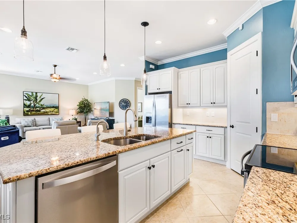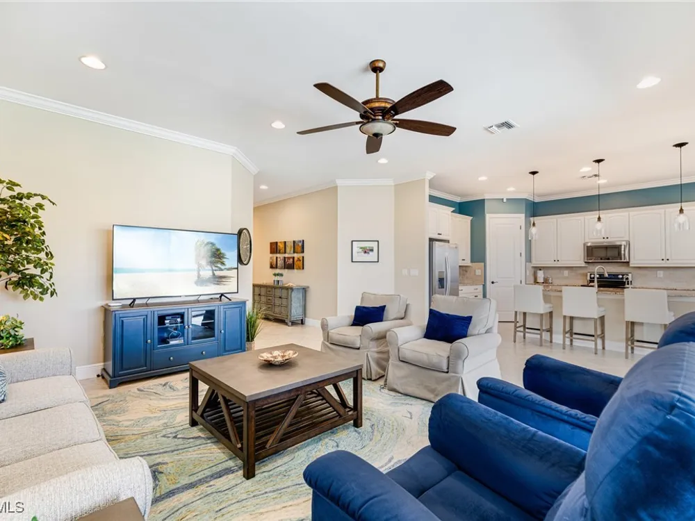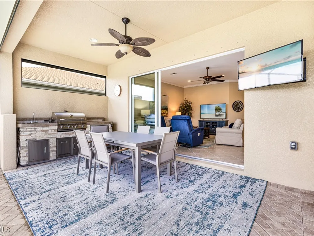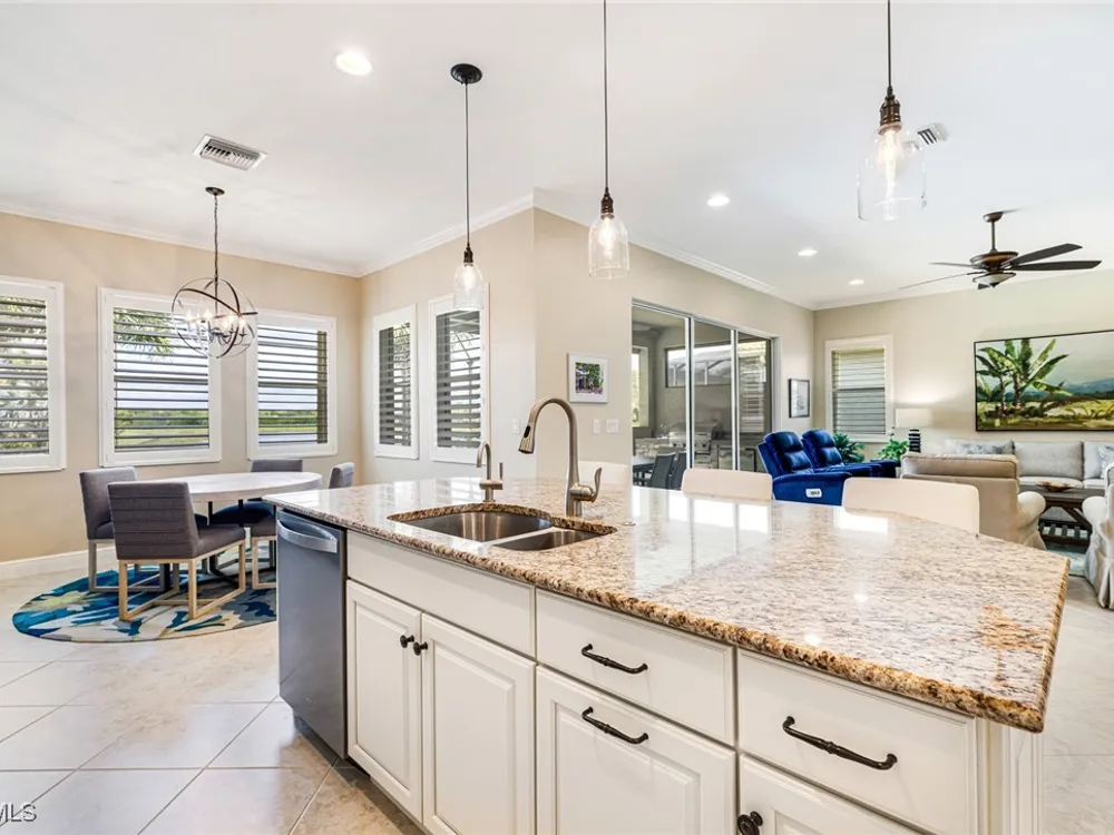 Experience the perfect blend of style, comfort, and resort living in this immaculate WCI-built residence, offering nearly 2,000 square feet of thoughtfully designed space. Nestled in the prestigious Materita neighborhood of Pelican Preserve, this light-filled 2-bedroom plus den home with private pool and lake views is truly exceptional. The open-concept floor plan is ideal for both everyday living and entertaining. The chef’s kitchen showcases a spacious counter-height island, granite countertops, stainless steel appliances, 42” soft-close cabinetry with pull-out shelving, a large pantry, and elegant crown molding. Plantation shutters, upgraded lighting and fans, and diagonally laid tile flooring add a refined touch throughout. Step outside to your private retreat, where a heated pool, screened lanai, summer kitchen, and expansive pool deck create the perfect setting for gatherings with family and friends. Enjoy serene long-lake views by day and relaxed evenings of outdoor dining. Beautifully landscaped and designed with convenience in mind, the home also features accordion shutters and electric Storm Smart lanai shutters for added peace of mind. At Pelican Preserve, every day feels like a getaway. Residents enjoy a world-class Town Center with a staffed fitness and movement center, indoor, resort-style, and lap pools, plus eight tennis and twelve Pickleball courts. Dining is a delight with two on-site restaurants offering inviting outdoor seating. A vibrant calendar of social events, live entertainment, and a concert pavilion ensures there’s always something to enjoy. Optional golf memberships provide access to pristine fairways and a private clubhouse. Pelican Preserve isn’t just a community—it’s a lifestyle of elegance, activity, and connection.