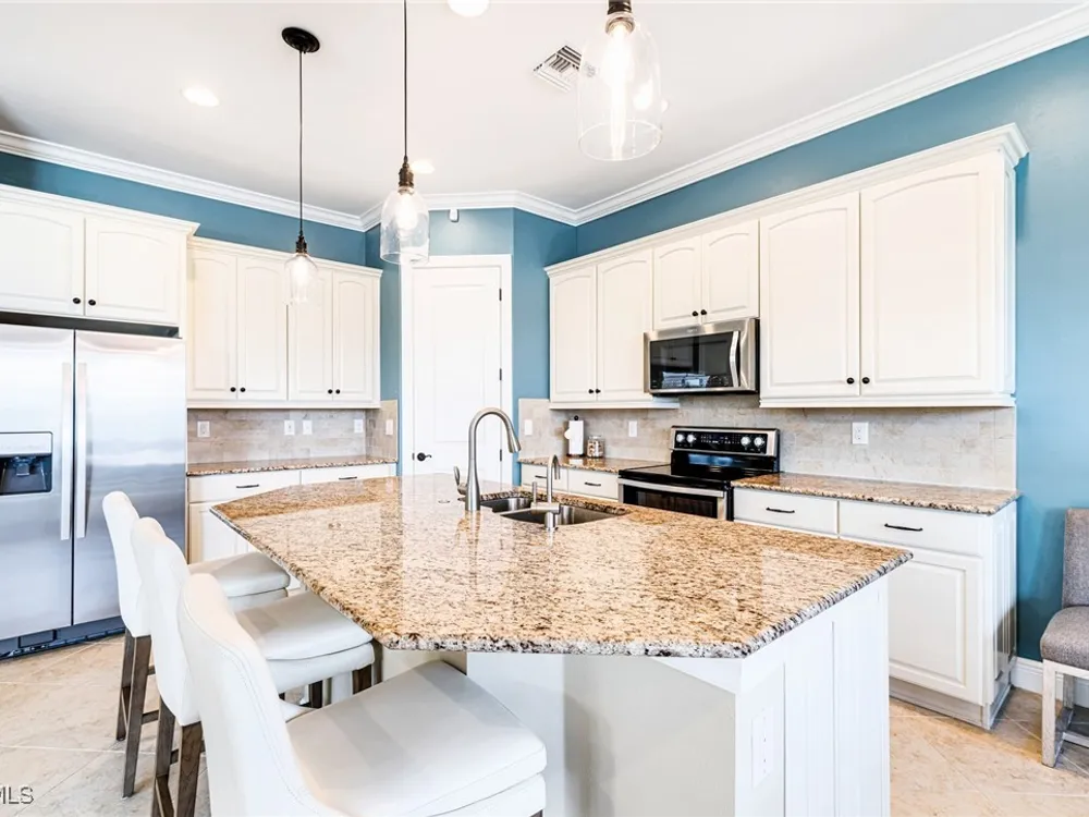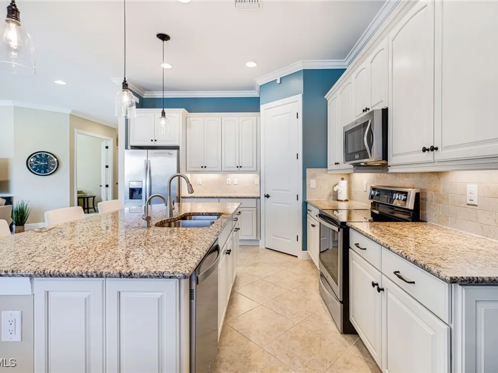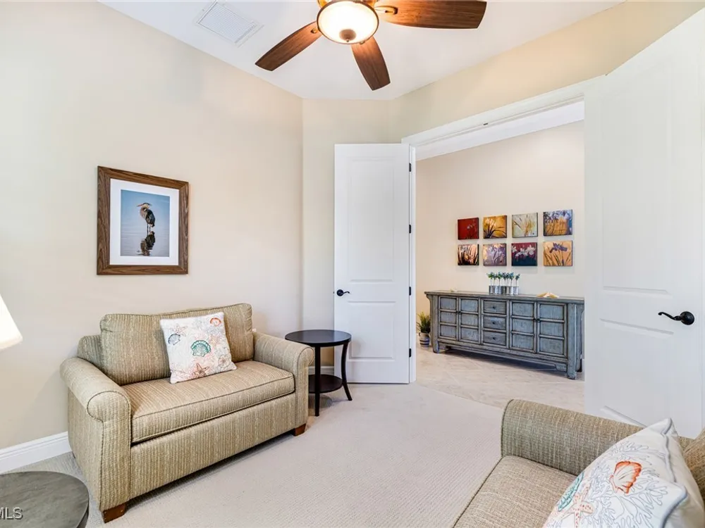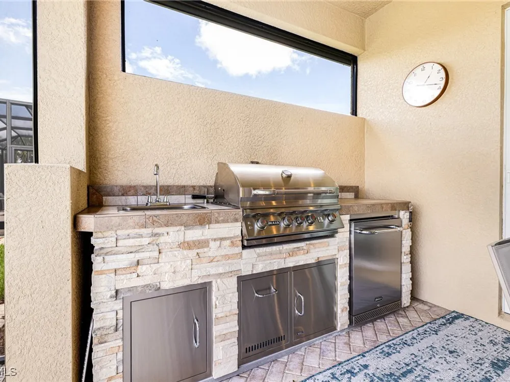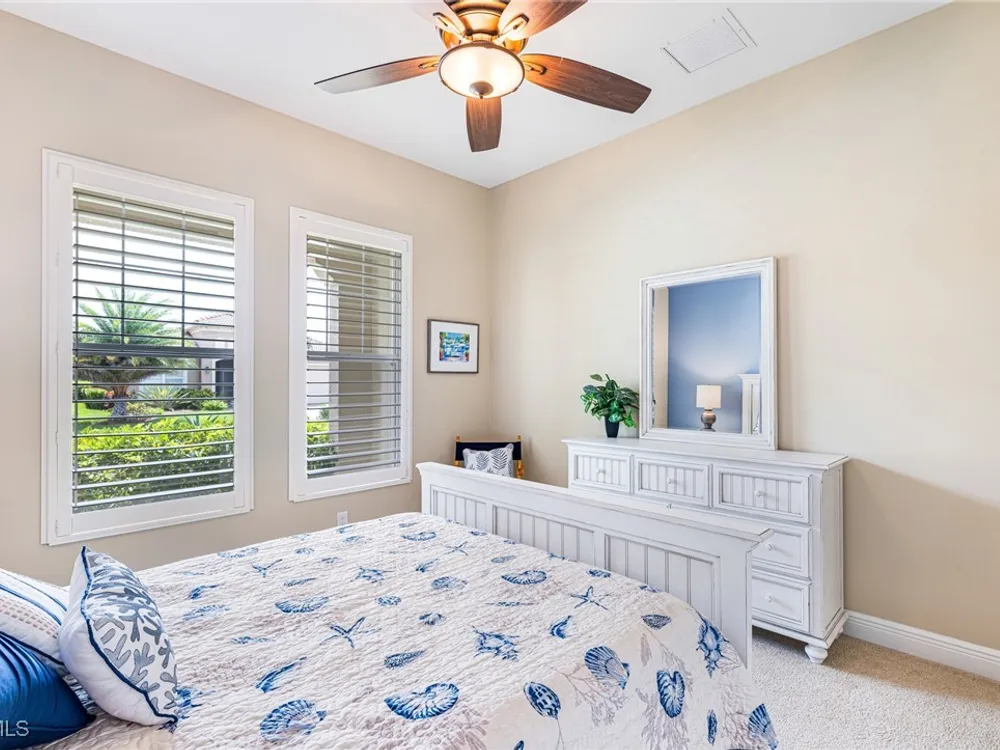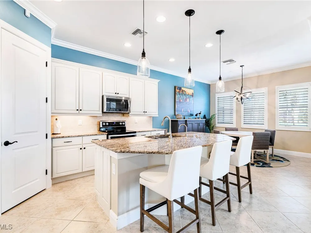 Experience the perfect blend of style, comfort, and resort living in this immaculate WCI-built residence, offering nearly 2,000 square feet of thoughtfully designed space. Nestled in the prestigious Materita neighborhood of Pelican Preserve, this light-filled 2-bedroom plus den home with private pool and lake views is truly exceptional. The open-concept floor plan is ideal for both everyday living and entertaining. The chef’s kitchen showcases a spacious counter-height island, granite countertops, stainless steel appliances, 42” soft-close cabinetry with pull-out shelving, a large pantry, and elegant crown molding. Plantation shutters, upgraded lighting and fans, and diagonally laid tile flooring add a refined touch throughout. Step outside to your private retreat, where a heated pool, screened lanai, summer kitchen, and expansive pool deck create the perfect setting for gatherings with family and friends. Enjoy serene long-lake views by day and relaxed evenings of outdoor dining. Beautifully landscaped and designed with convenience in mind, the home also features accordion shutters and electric Storm Smart lanai shutters for added peace of mind. At Pelican Preserve, every day feels like a getaway. Residents enjoy a world-class Town Center with a staffed fitness and movement center, indoor, resort-style, and lap pools, plus eight tennis and twelve Pickleball courts. Dining is a delight with two on-site restaurants offering inviting outdoor seating. A vibrant calendar of social events, live entertainment, and a concert pavilion ensures there’s always something to enjoy. Optional golf memberships provide access to pristine fairways and a private clubhouse. Pelican Preserve isn’t just a community—it’s a lifestyle of elegance, activity, and connection.