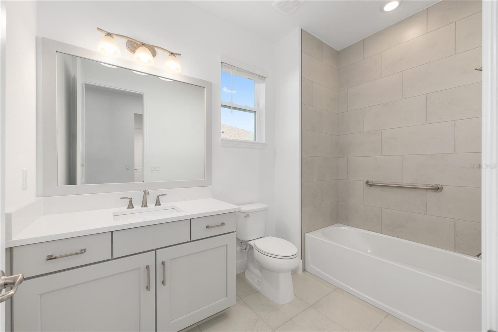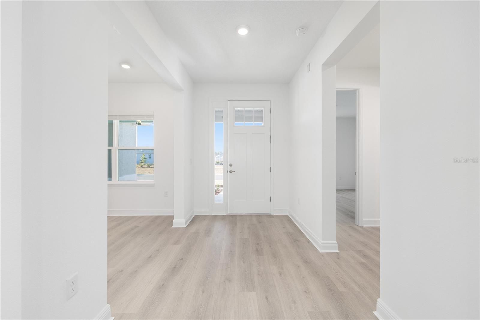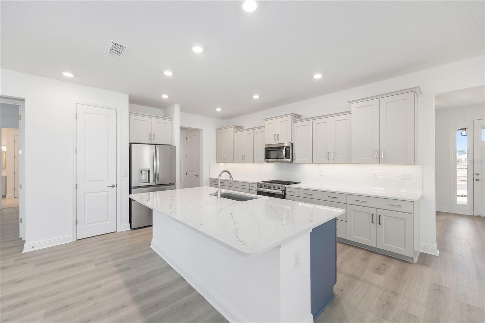Experience refined Florida living in the beautifully designed Beatrix, a thoughtfully crafted new construction home that blends elegance, comfort, and functionality. Offering two bedrooms, two baths, and a two-car garage with dedicated golf cart space, this residence delivers a sophisticated yet inviting lifestyle. The open living room is enhanced by expansive Luxury Vinyl, recessed lighting, and a seamless connection to the home’s stunning designer kitchen. At the center of the space, an oversized quartz island anchors the kitchen, complemented by sleek cabinetry, a classic subway tile backsplash, and stainless-steel appliances—perfectly suited for both everyday living and effortless entertaining. A versatile flex room provides an ideal setting for a home office, private den, or creative retreat, while the dedicated laundry suite adds convenience with ample storage and thoughtful design. The primary suite offers a serene escape, featuring generous proportions and a spa-inspired bath with dual vanities and refined finishes. A secondary bedroom and full bath ensure comfort and privacy for guests. Outdoor living is elevated with a covered and screened lanai, along with a welcoming covered front porch—ideal for enjoying Florida’s year-round sunshine. With 2,142 square feet of climate-controlled living space and a total of 3,214 square feet under roof, the Beatrix combines architectural elegance with modern craftsmanship. Located in the desirable Longleaf Ridge neighborhood of On Top of the World, this exceptional home offers timeless style within a vibrant, amenity-rich community.