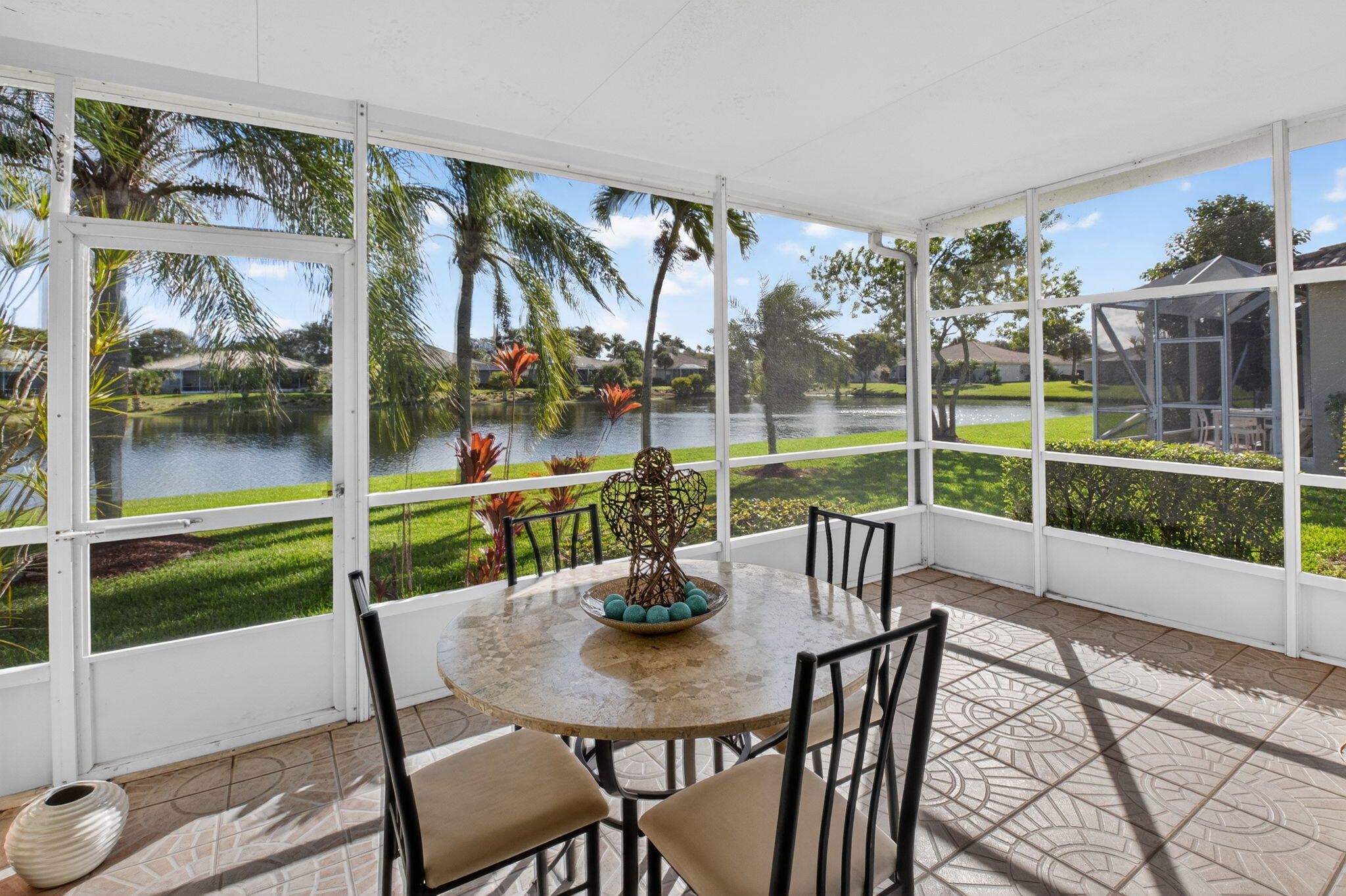 Immaculate 3 bedroom 2 bath villa in a gated community with gorgeous views of the lake. The kitchen has upgraded cabinets, stainless steel appliances and granite countertops. Enjoy nature from your private screened patio. Carefree living and fantastic amenities. Roof was installed in 2018 and air conditioner was installed in 2016. Unit is equipped with a security system. Furniture, pots and pans and wall paintings are included in the price. Clean and ready to move in!!