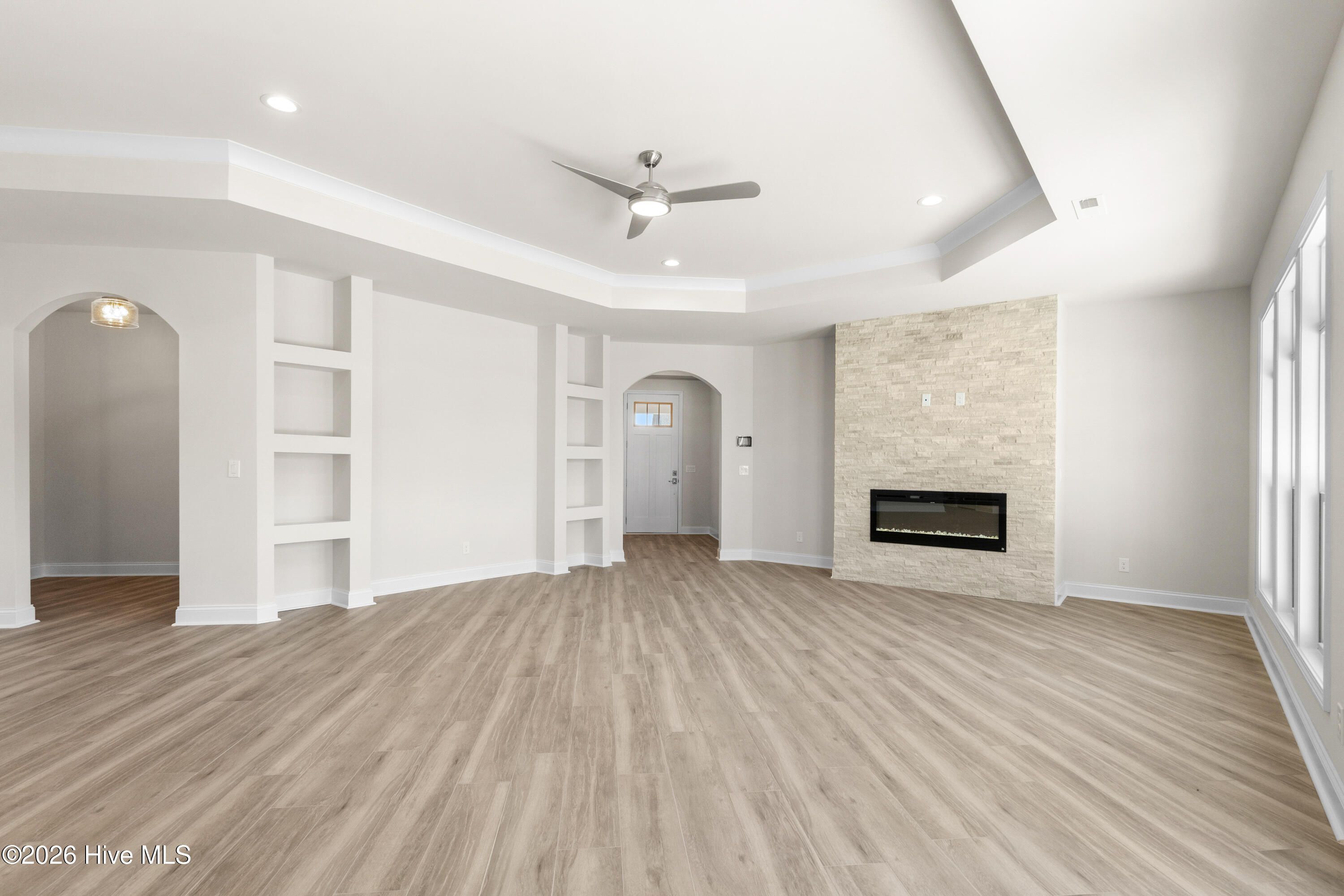 LOT 9 - Ranch living at its best in this Promenade III Plan with upgraded Elevation B. Your large Front Porch is so welcoming and inviting. The Foyer leads into your open concept Living Room, Dining Room and Kitchen. The Living Room features built-in shelving, a linear fireplace with stone surround and tons of natural lighting overlooking your Private Courtyard! The Kitchen has a big island, tons of cabinet space and large pantry. The Primary Bedroom is huge and features a trey ceiling . Off of the Primary Bedroom is a beautiful sitting room with lots of windows. Primary Bath has a large Zero Entry Walk-in Tiled Shower. Come relax on your large front porch or on your private courtyard. Low maintenance living. HOA maintains your grass with irrigation on each homesite. Amenities include pool, pond with fountain, fitness center, 2 pickle ballcourts, bocce ball and walking trail. Close to world class golf, shopping and great dining on the water! Just minutes from beautiful beaches!