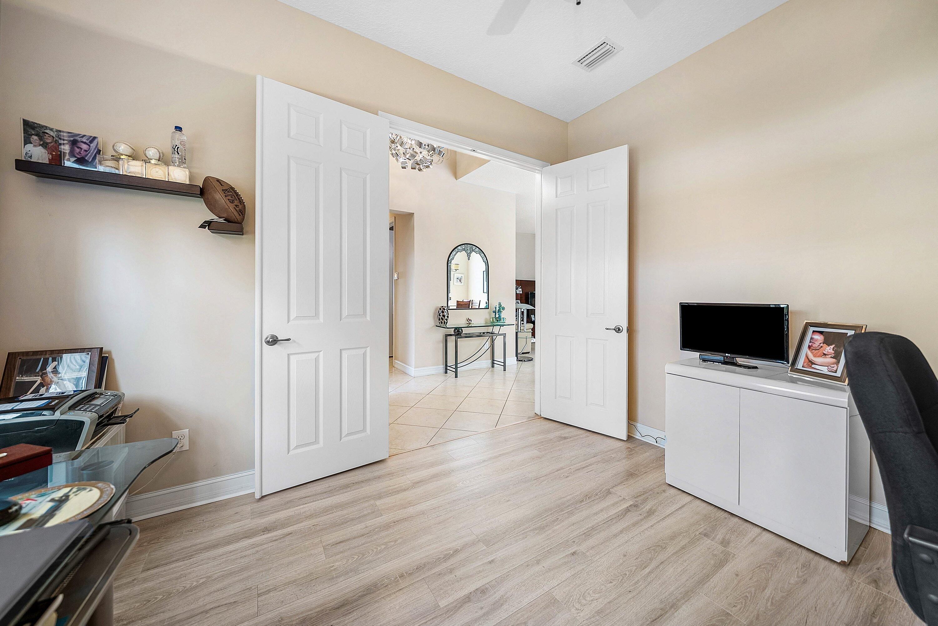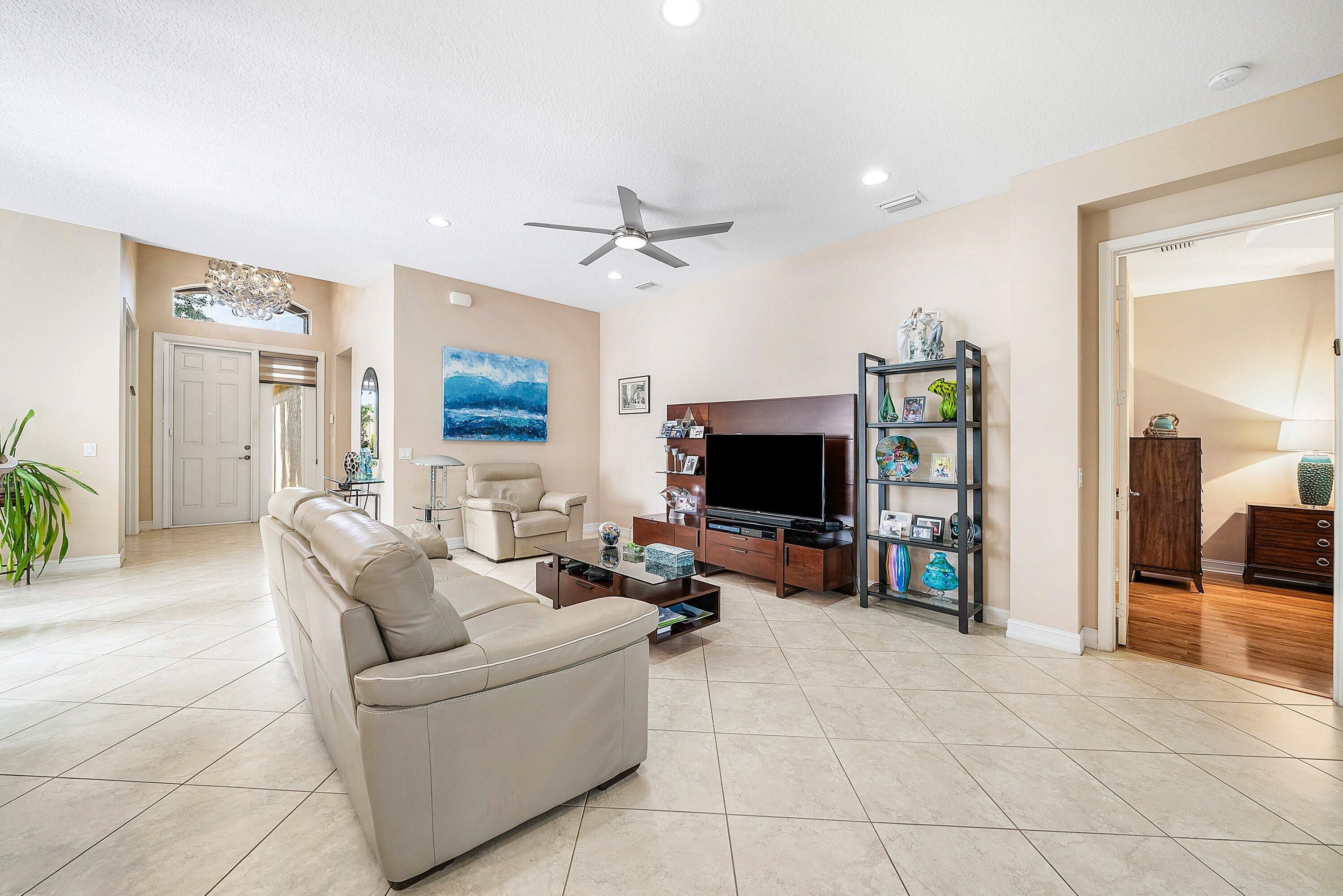 Immaculate 3 Bedroom Home in Valencia Reserve. There are Accordion Shutters for the Whole Home for Peace of Mind. The Open Great Room Floor Plan will Delight the Most Discriminating Buyer. The Home Includes Smooth Walls Throughout. Entering the Home, The Large 3rd Bedroom Currently Used as a Den has a Double Door Entry . The Gorgeous Kitchen Boasts Many Upgrades Including 42'' Wood Cabinets Including a Set of Glass Doors and a GE Profile Stainless Steel Appliance Package. There's a Massive Cabinet Pantry as Well. Out Back is a Private and Secluded Paradise with Custom Travertine Pavers and Extended Screened Patio Overlooking Lush Landscaping. The Large Primary Suite has 2 Walk In Closets and a Luxurious Bath with Marble Counters and Upgraded Tile. Beautiful Fixtures Throughout as Well. Valencia Reserve has a Stunning and VERY ACTIVE Brand New Clubhouse with Every Activity You can Think of! Whether you want a Pickleball Game or Enjoying Lunch By the Pool You will Fill Your Day with Activities from Morning Until Night. Come See what The Valencia Reserve Lifestyle is all About.